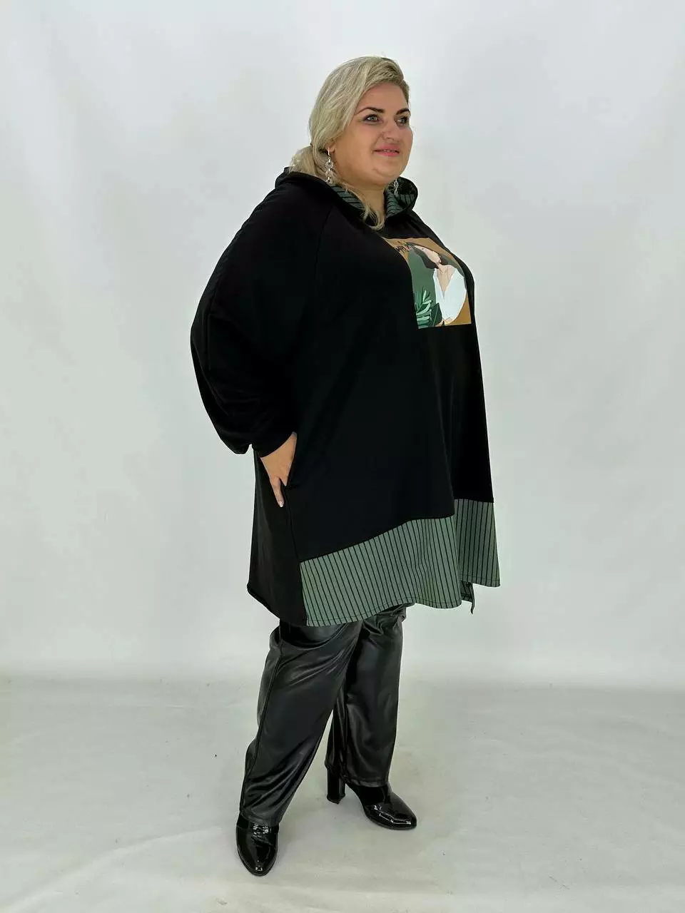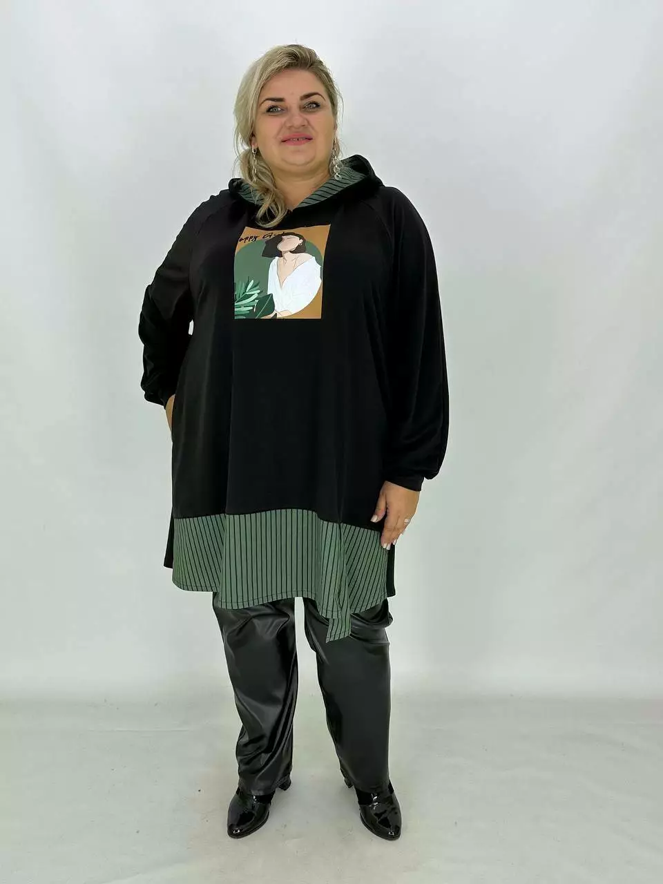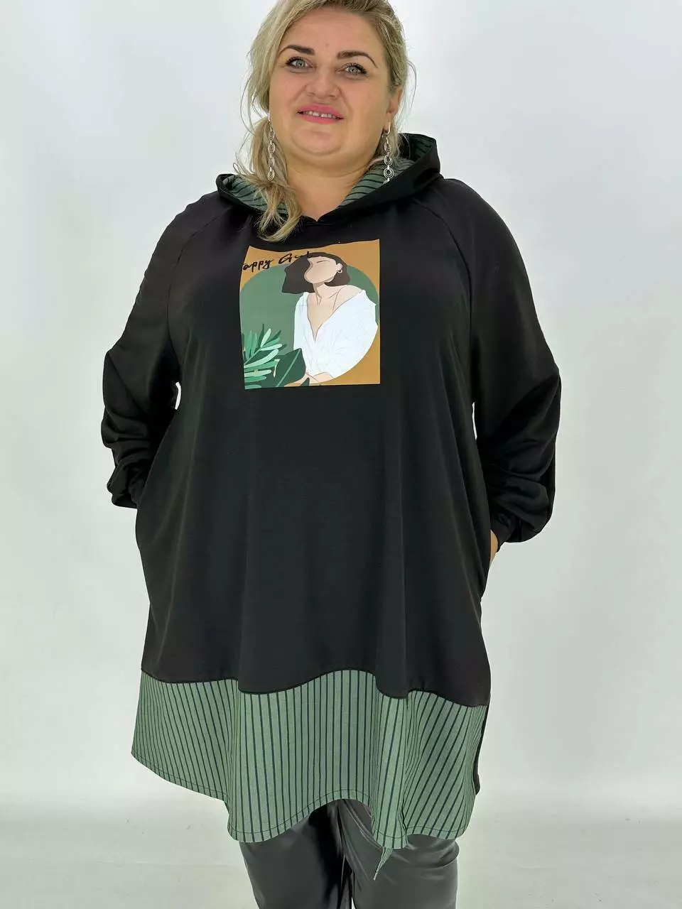 Довжина туніка-трапеція з капюшоном та трикотажу двонитка з гарною розтяжністю