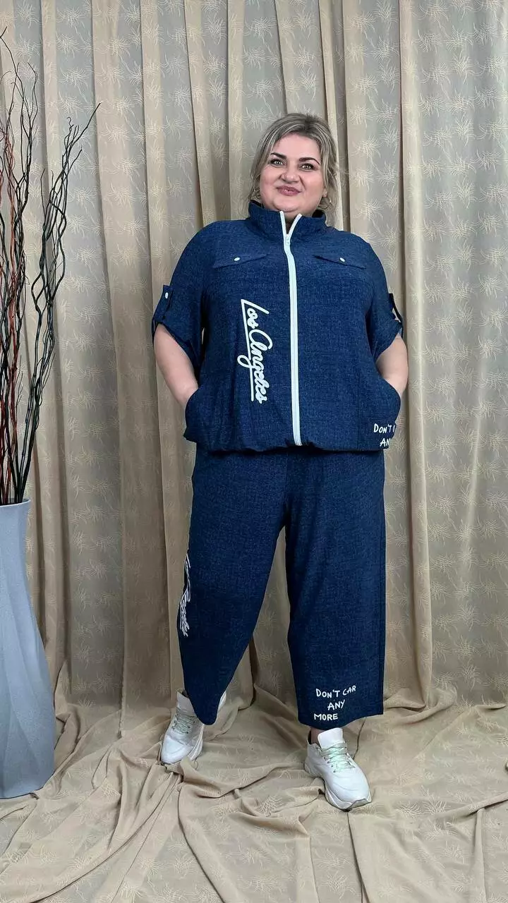 Прогулянковий костюм (кофта на блискавці + капрі) "Дизель" Батал 62-64 66-68 70-72 74-76