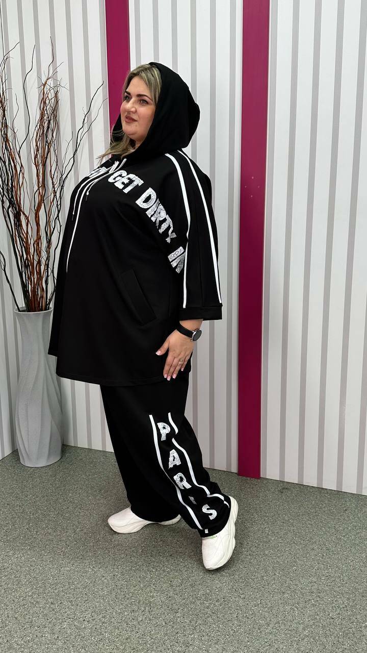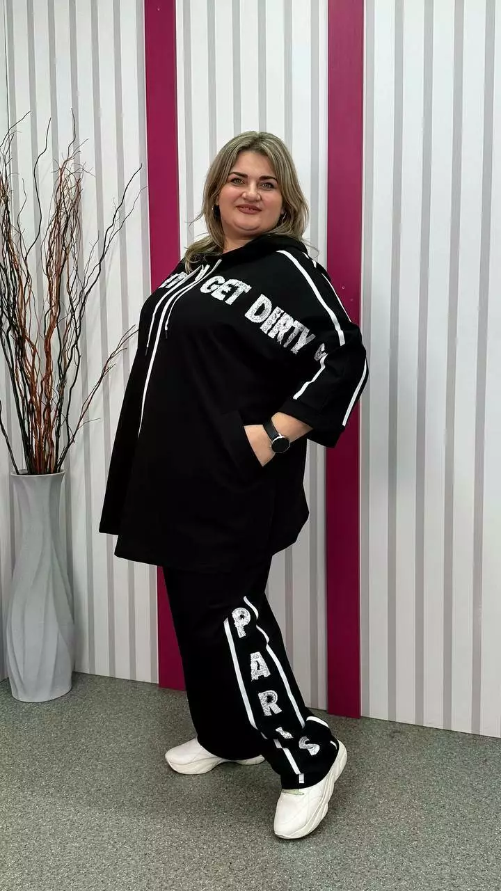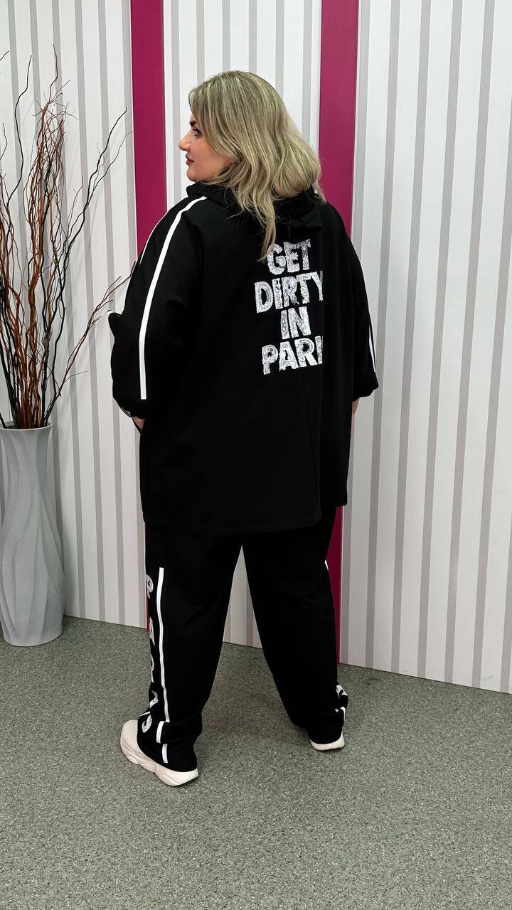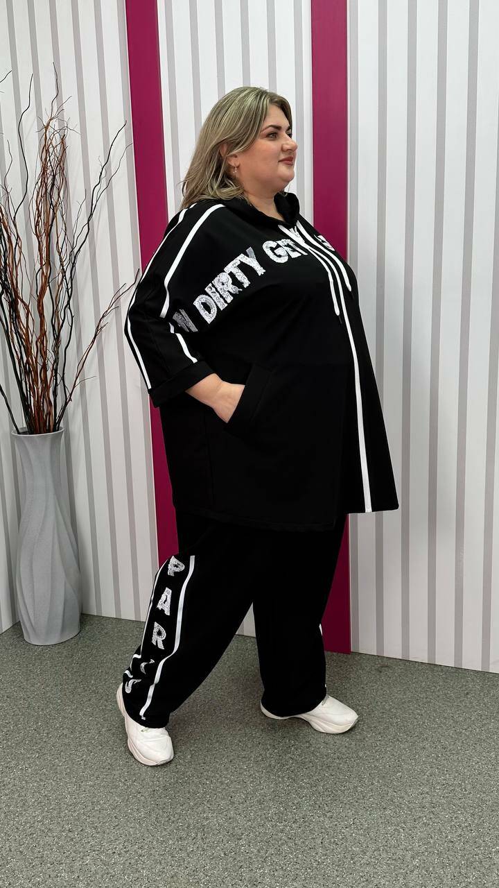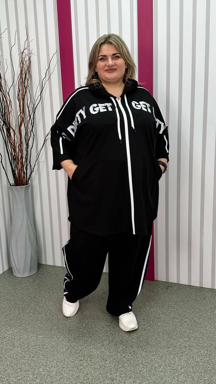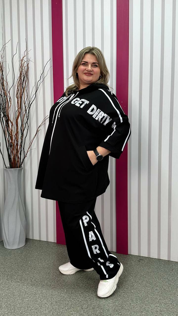 Прогулянковий костюм (кофта+штани) "Париж" вільного крою чорний великого розміру 62-64 66-68 70-72 74-76