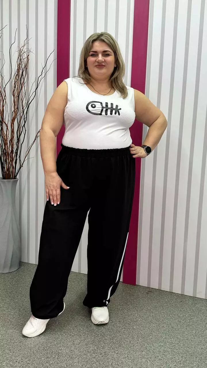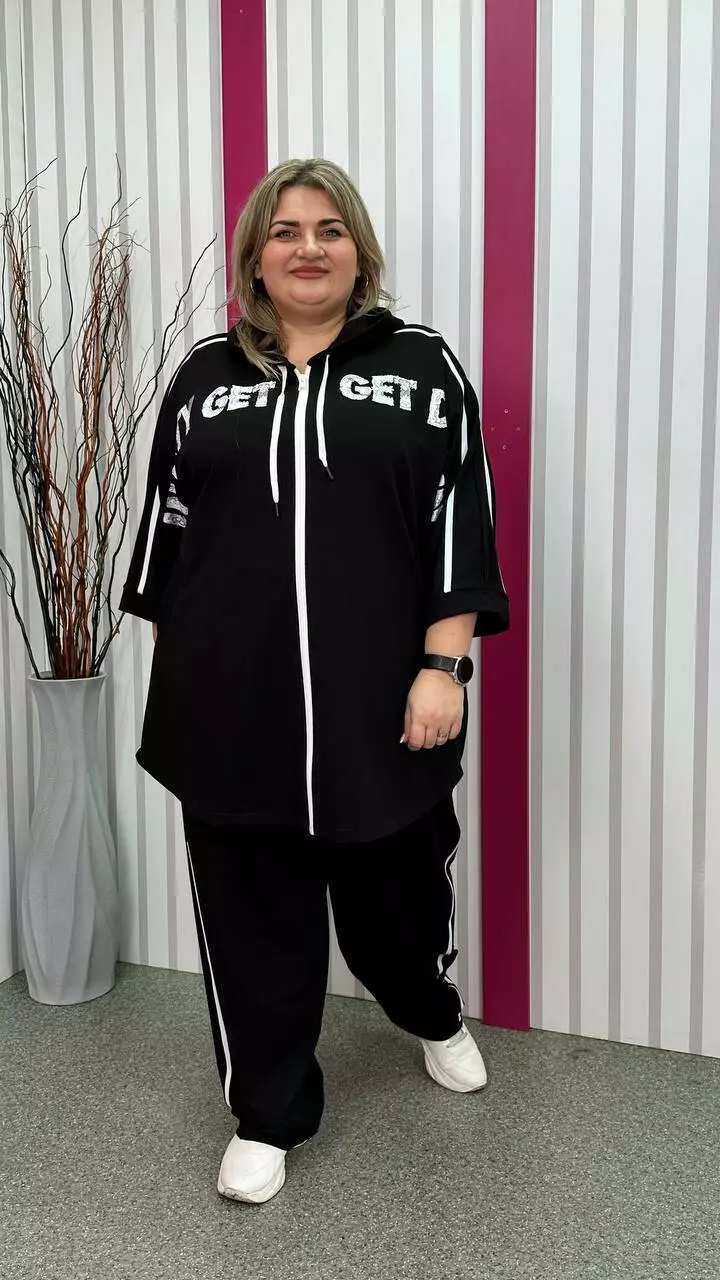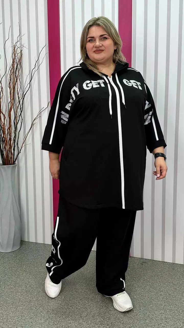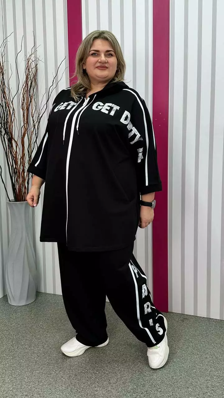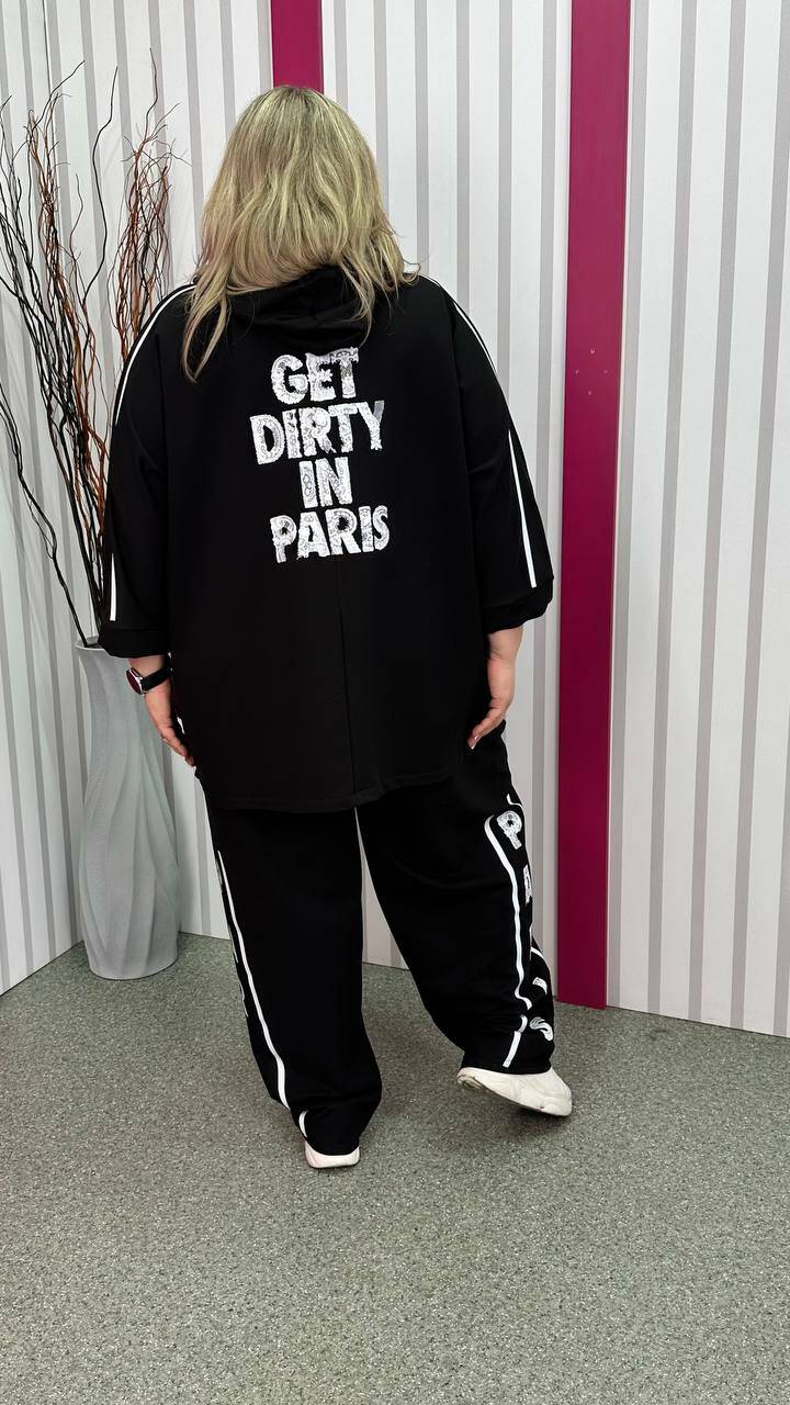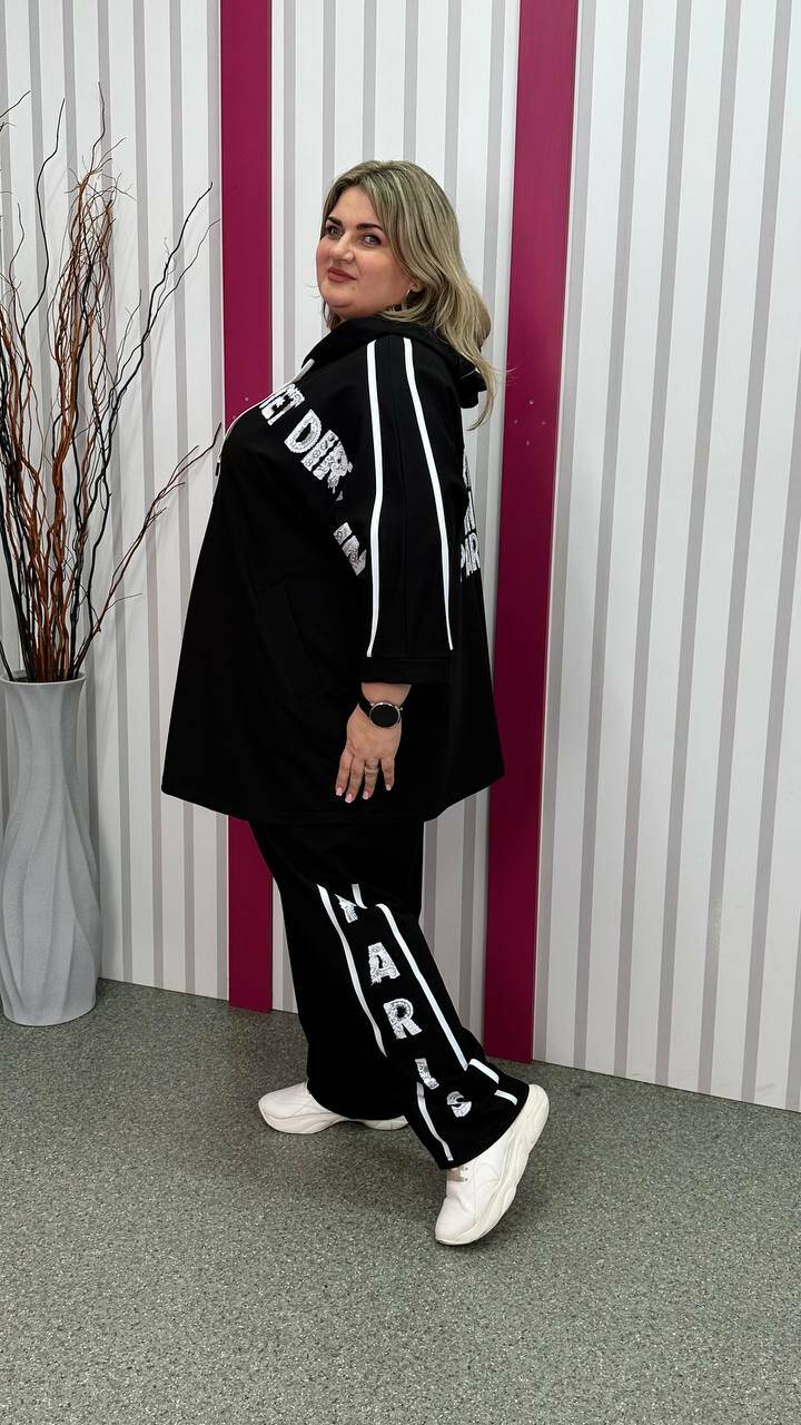 Прогулянковий костюм (кофта+штани) "Париж" вільного крою чорний великого розміру 62-64 66-68 70-72 74-76