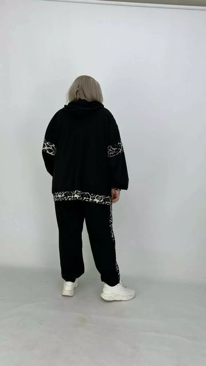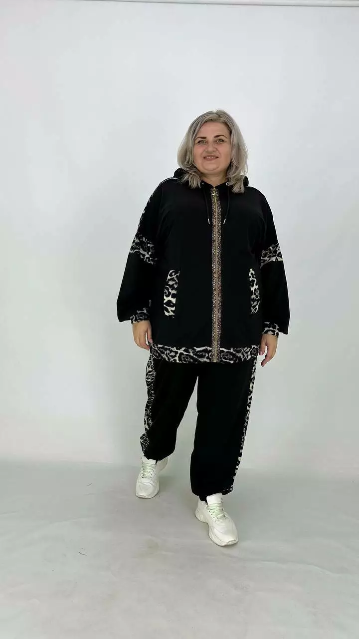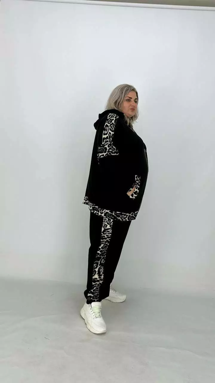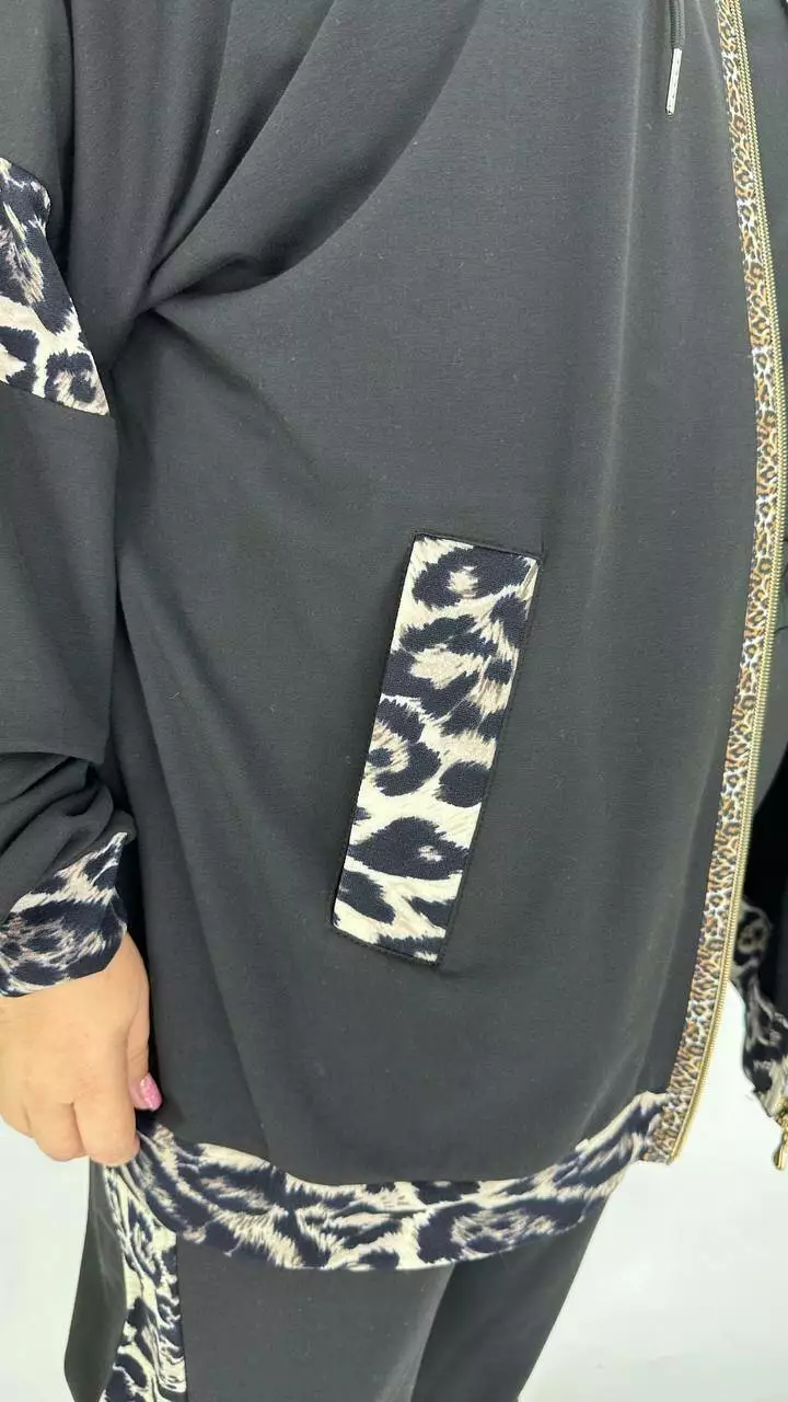 Костюм із Двонитки з гарною розтяжністю, комбінований з анімалістичним принтом.