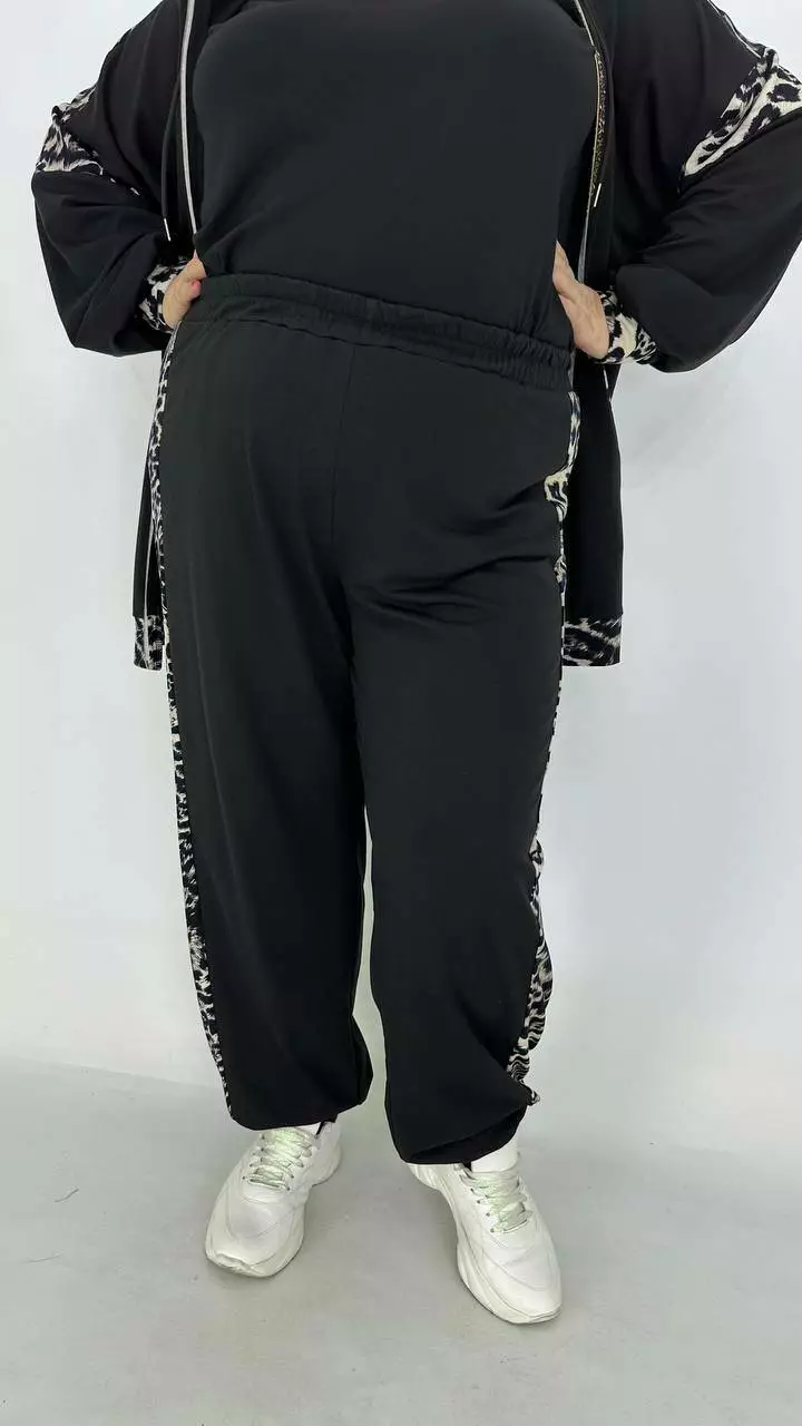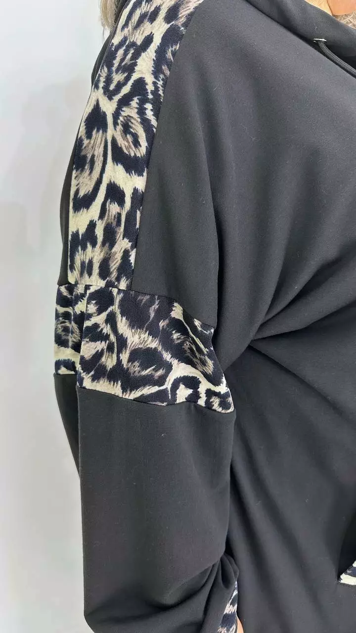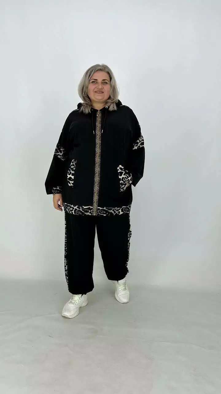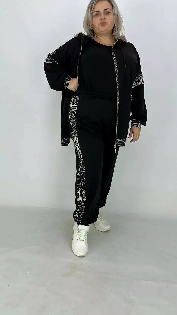 Костюм із Двонитки з гарною розтяжністю, комбінований з анімалістичним принтом.