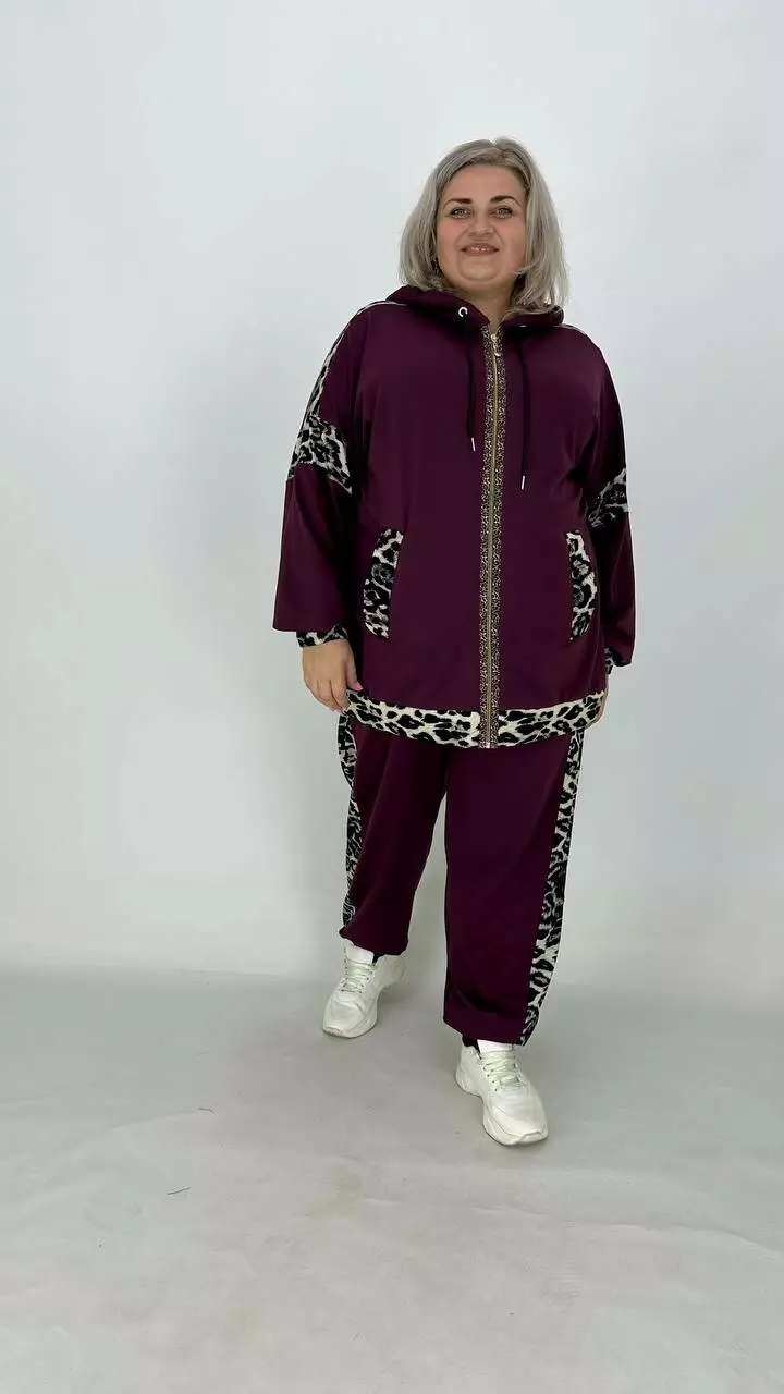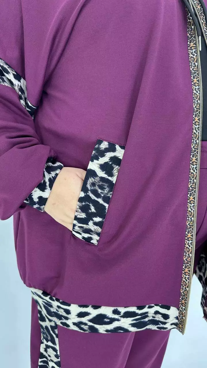 Костюм із Двонитки з гарною розтяжністю, комбінований з анімалістичним принтом.