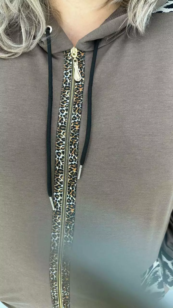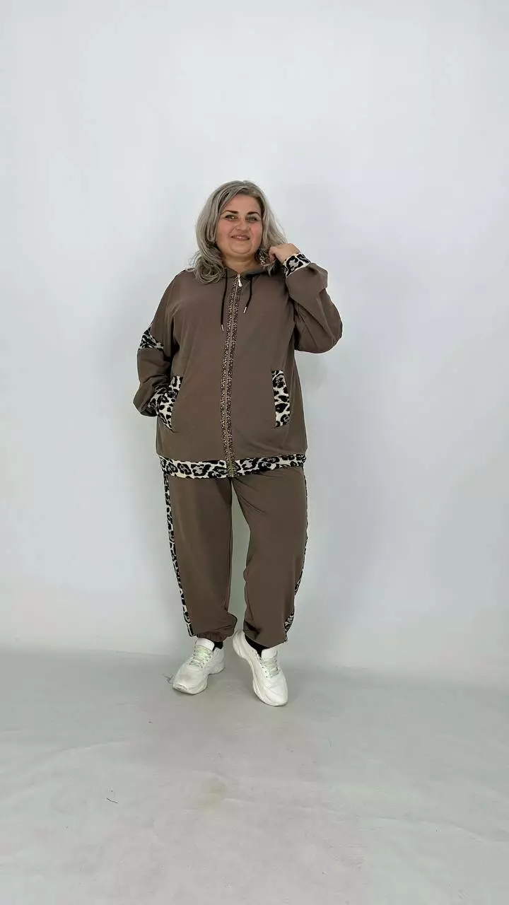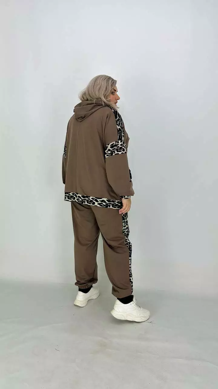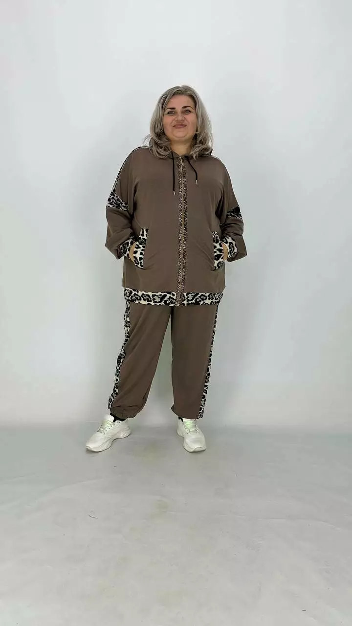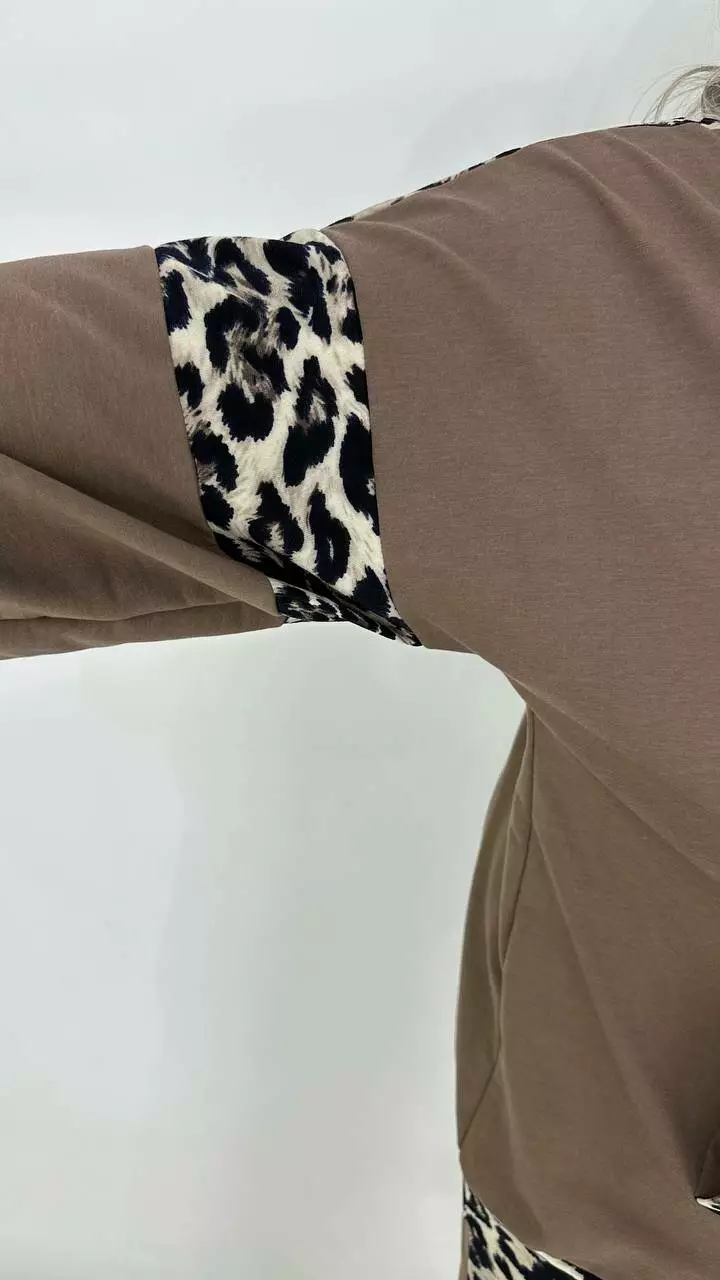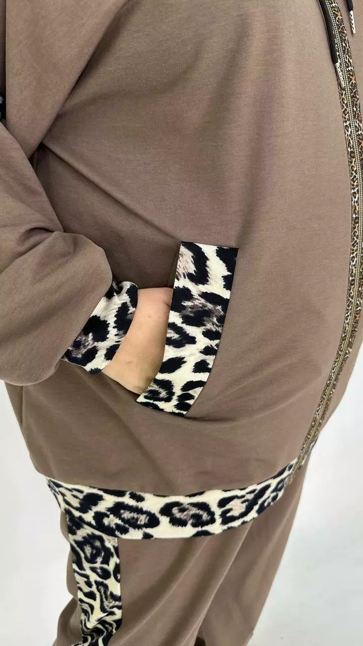 Костюм із Двонитки з гарною розтяжністю, комбінований з анімалістичним принтом.