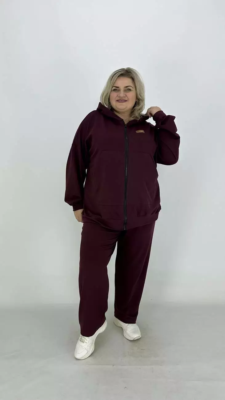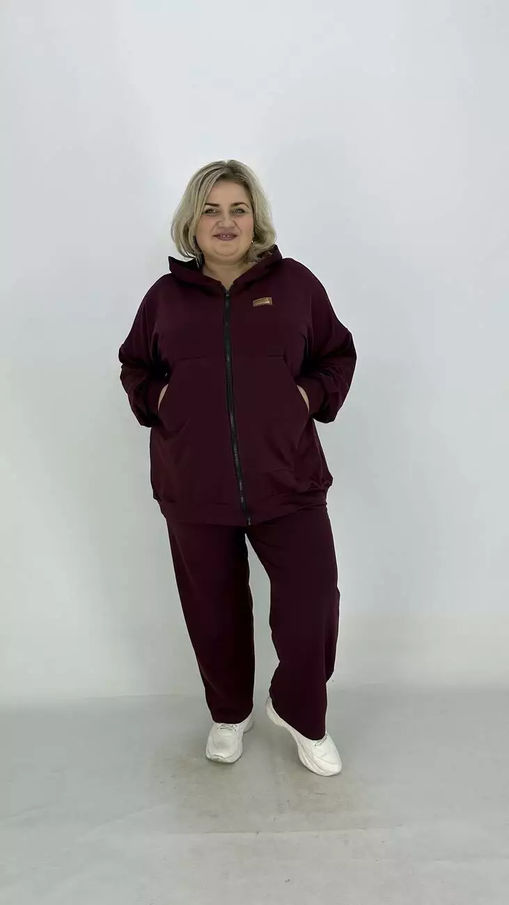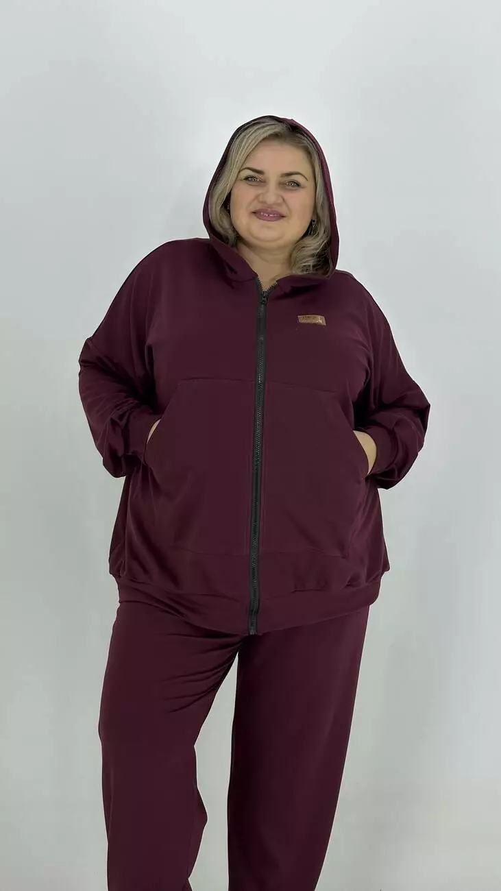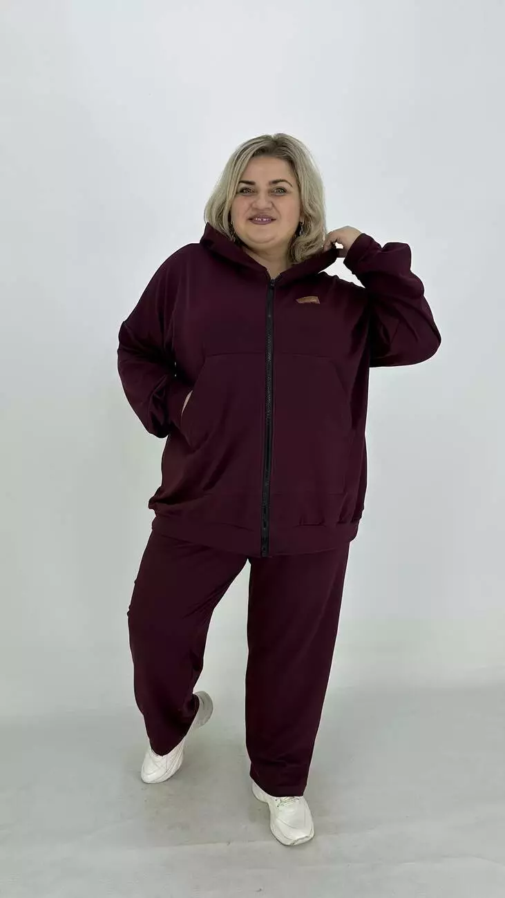 Зручний костюм із двунитки для фігури з широкими стегнами.