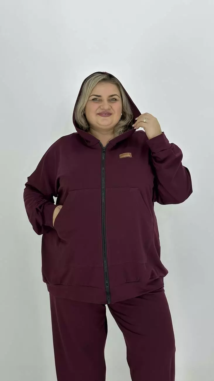 Кофта на поясі, кишені-кенгурі, застібається на блискавку.