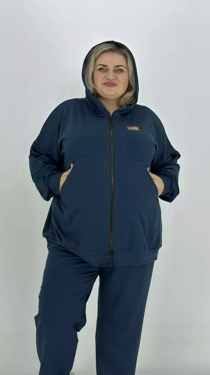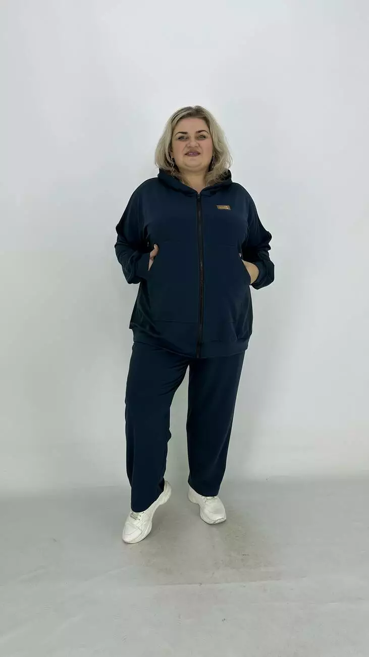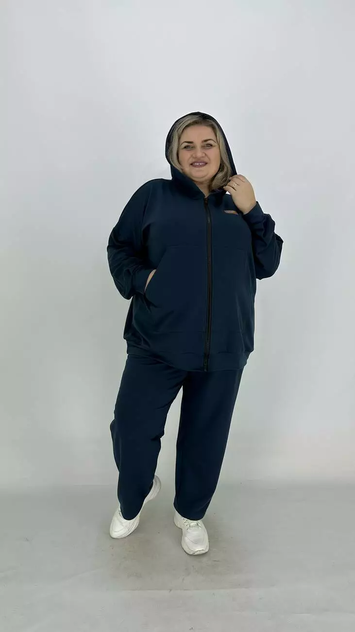 Зручний костюм із двунитки для фігури з широкими стегнами.