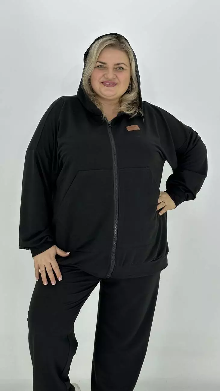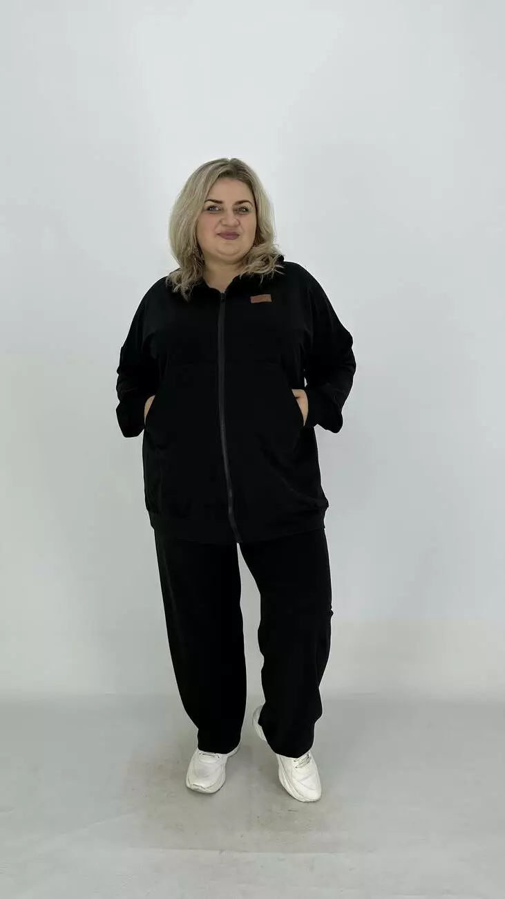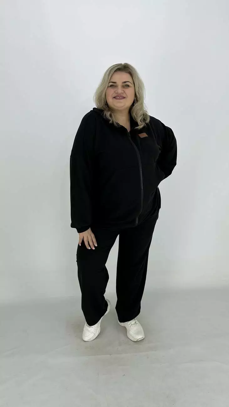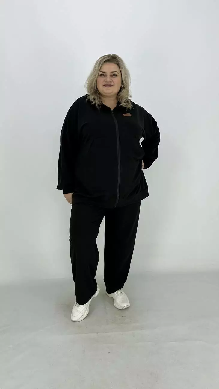 Зручний костюм із двунитки для фігури з широкими стегнами.
