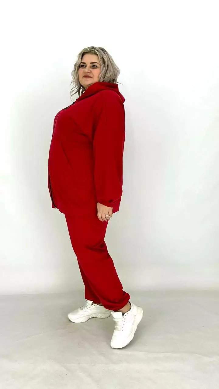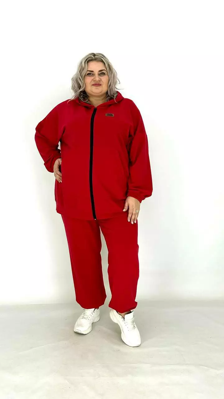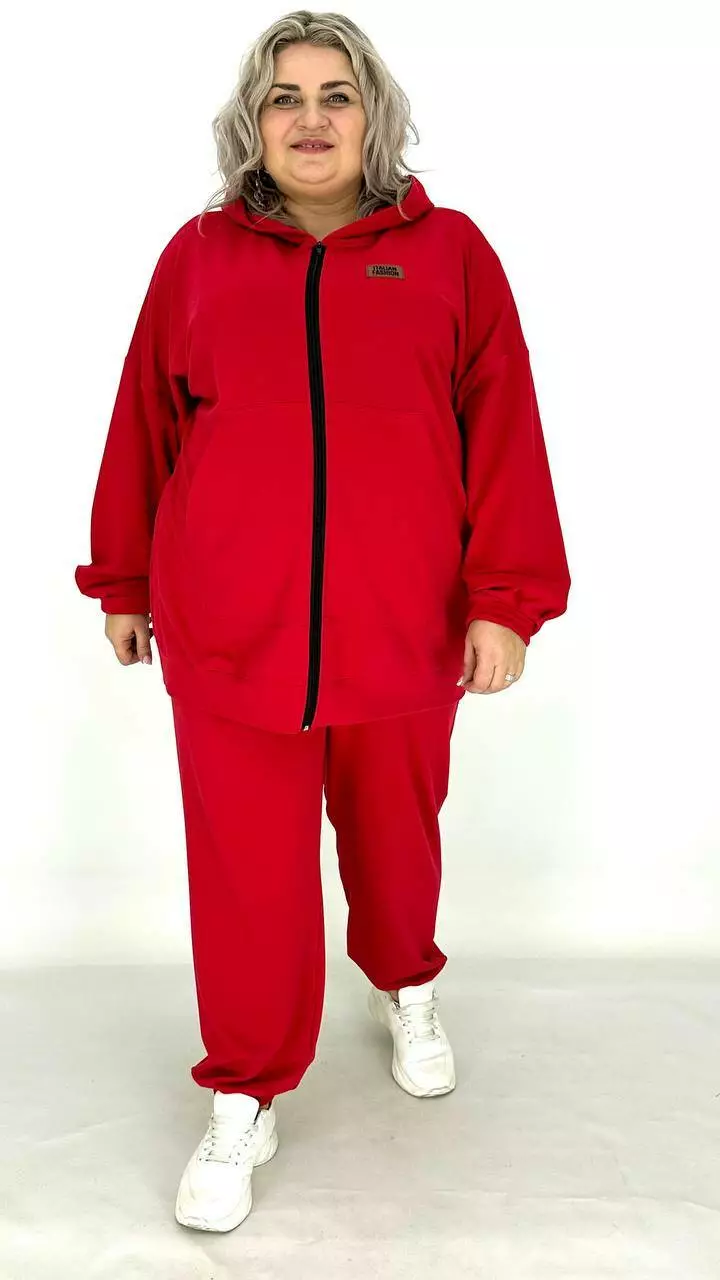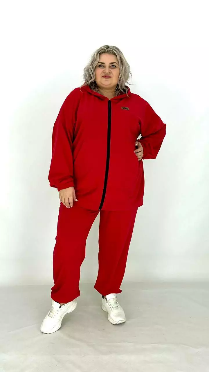 Зручний костюм із двонитки для фігури з широкими стегнами.