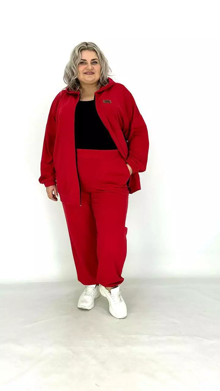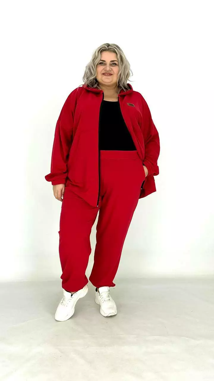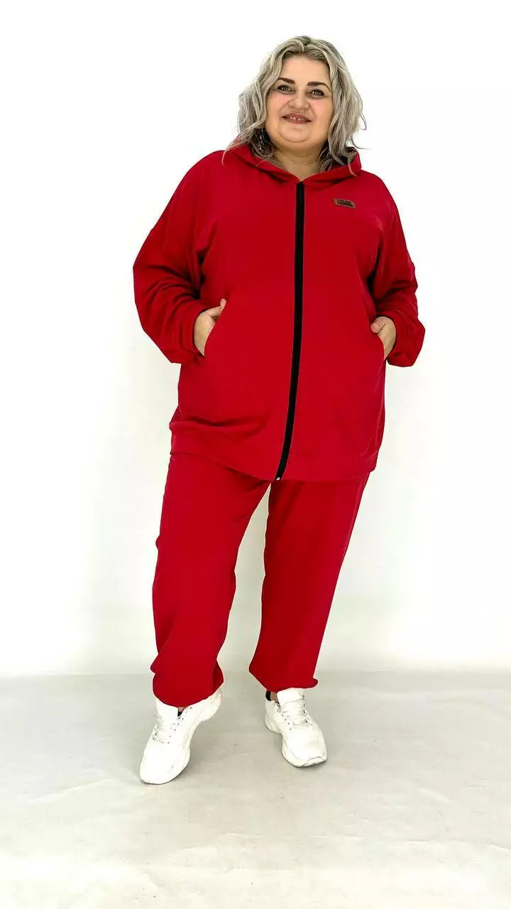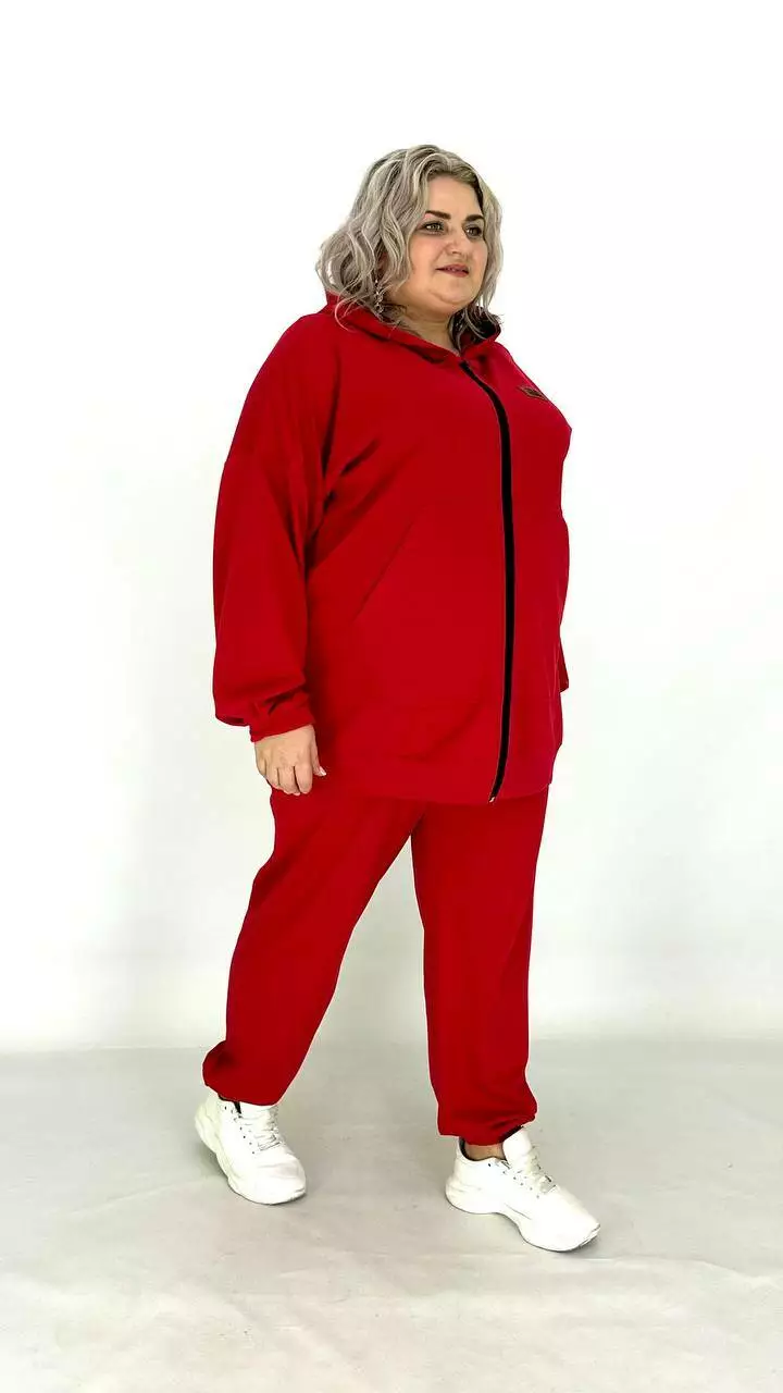 Зручний костюм із двонитки для фігури з широкими стегнами.