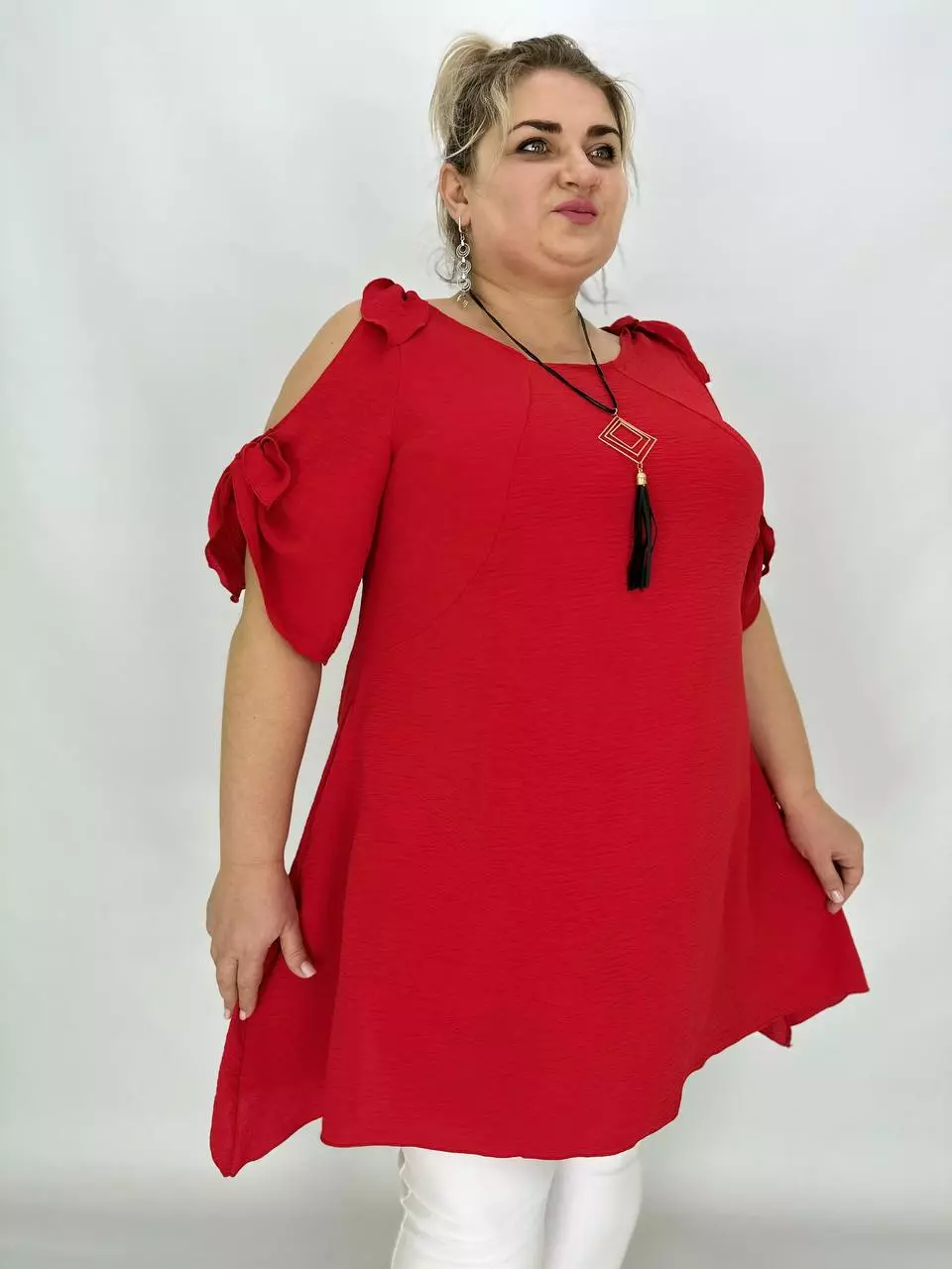 Туніка розкльошена з подовженими кутами, рукави з гумками,