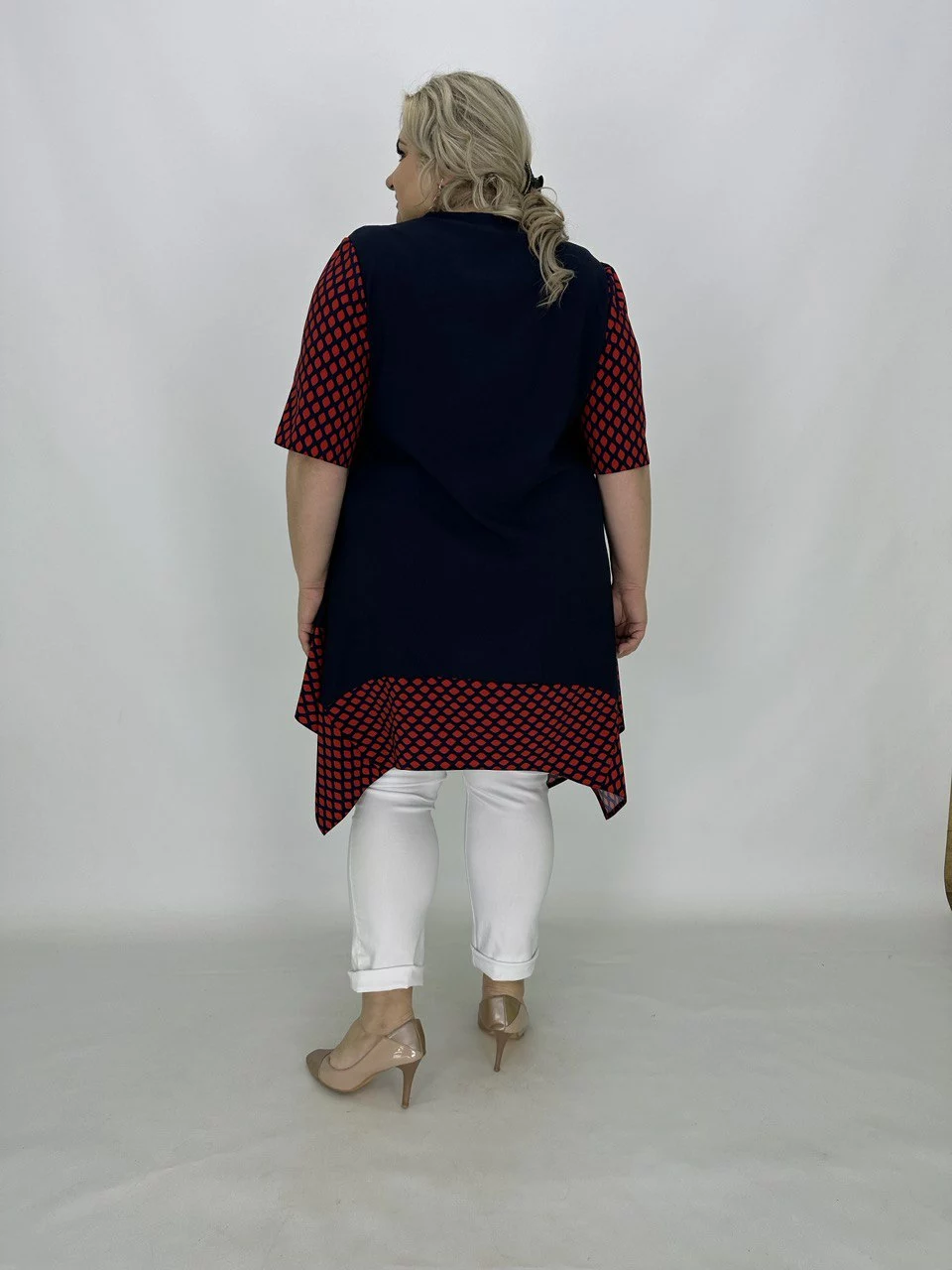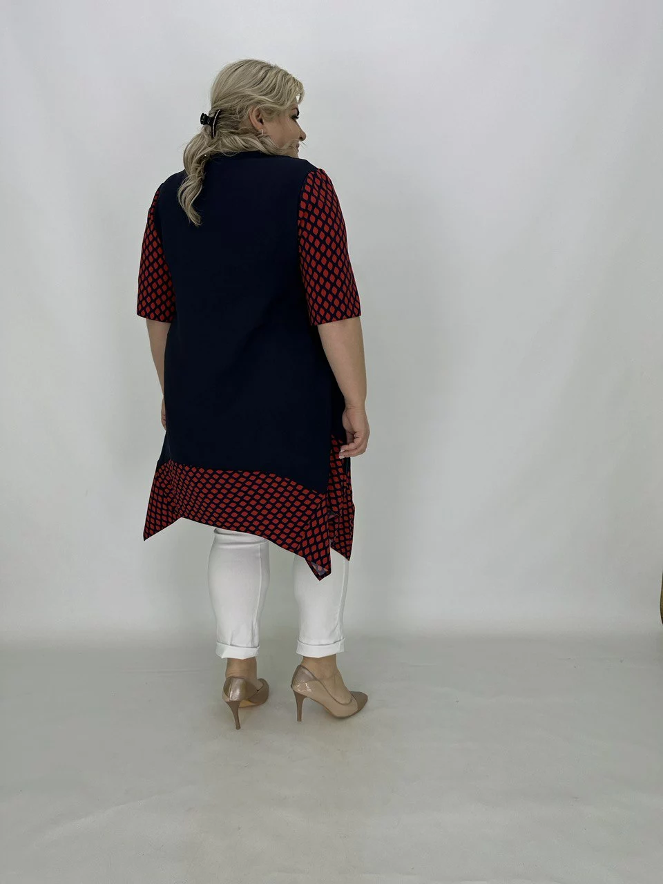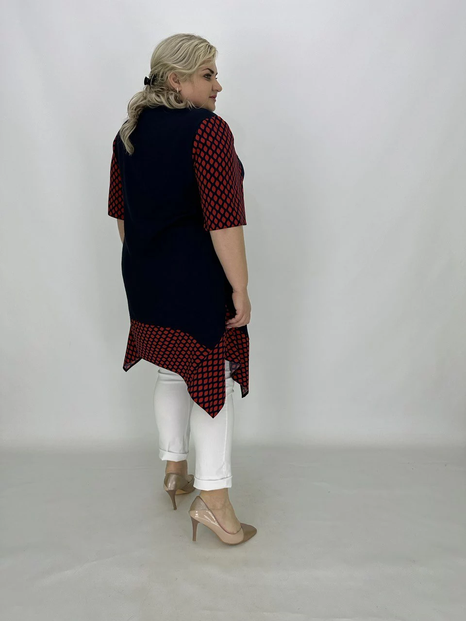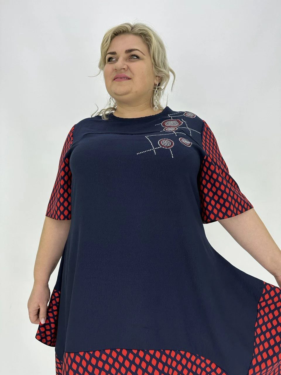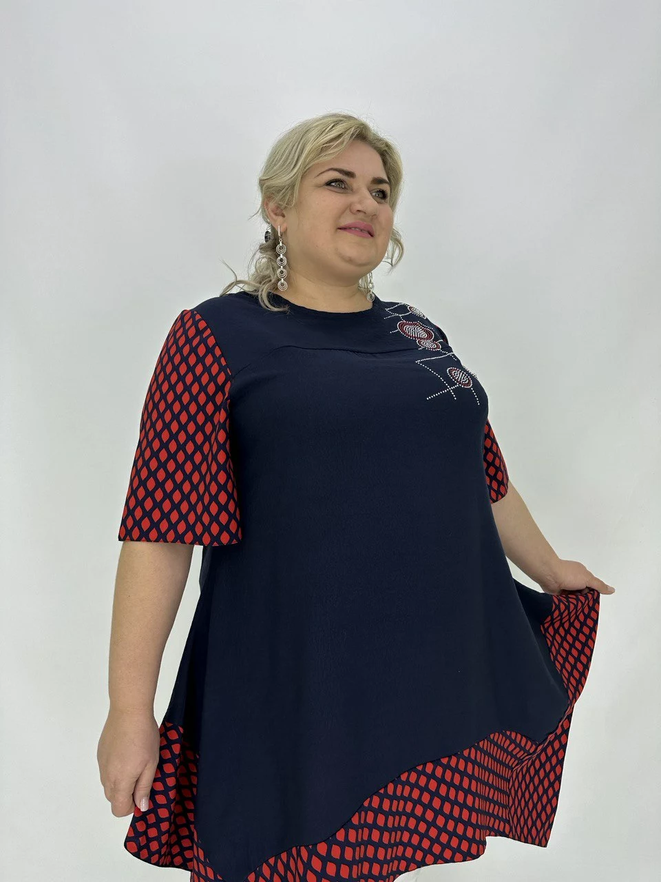 Розкльошена туніка з подовженими кутами "Перлина" з аплікацією з каменів