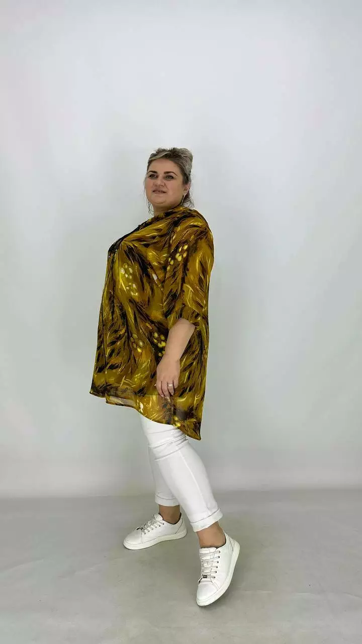 Легкий пильовик із шифону вільного силуету зі спущеним проймом