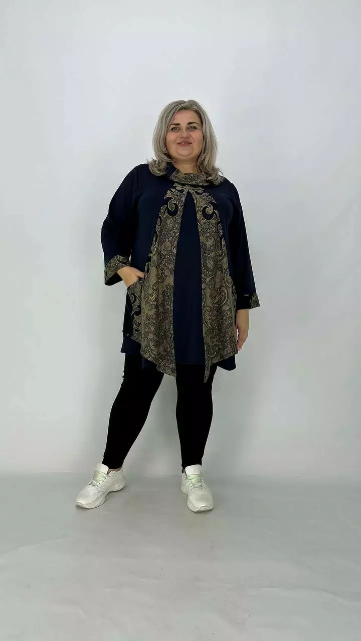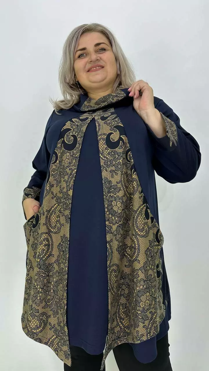 Шикарна туніка-імітація двійки "Каррі-3" із французького трикотажу 66-68 70-72