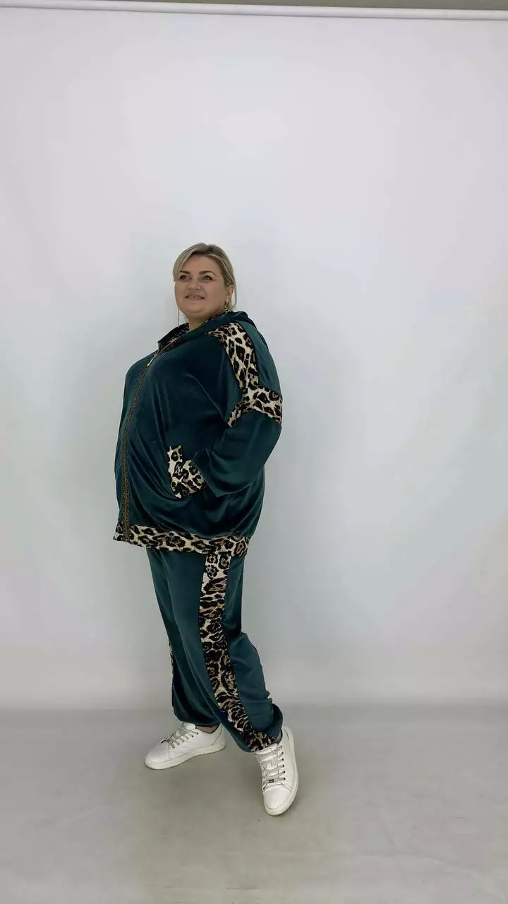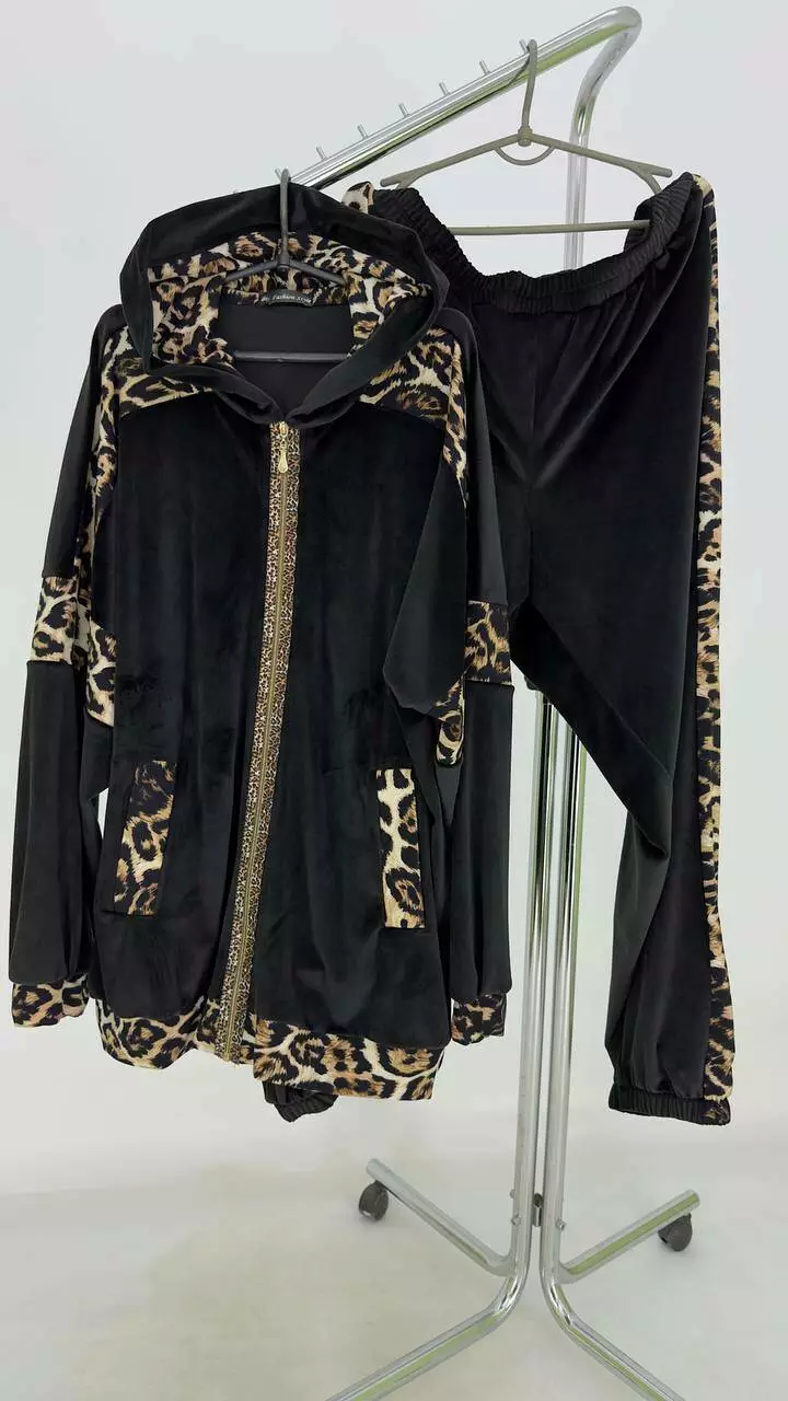 Шикарний велюровий костюм "Минор" (кофта + штани) з принтом леопард 62-64