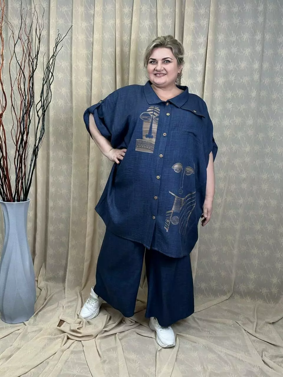 Дуже широкі штани-спідниця з легкої тканини льон-бохо, без бокового