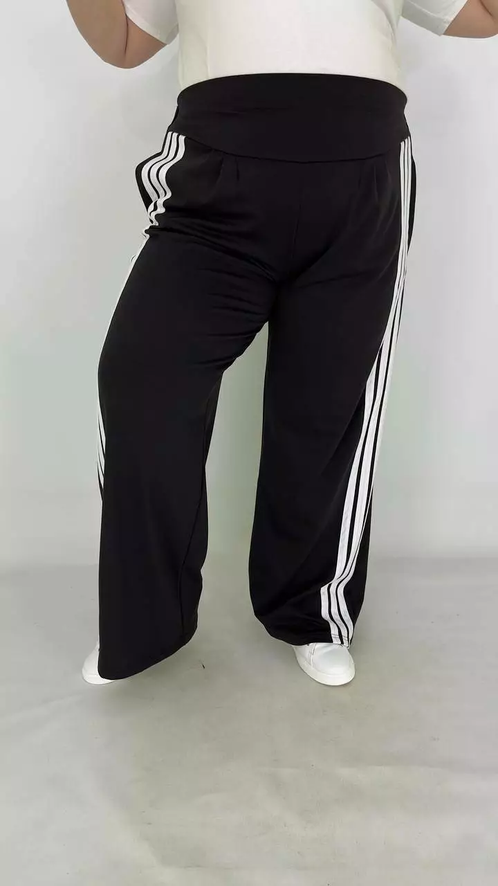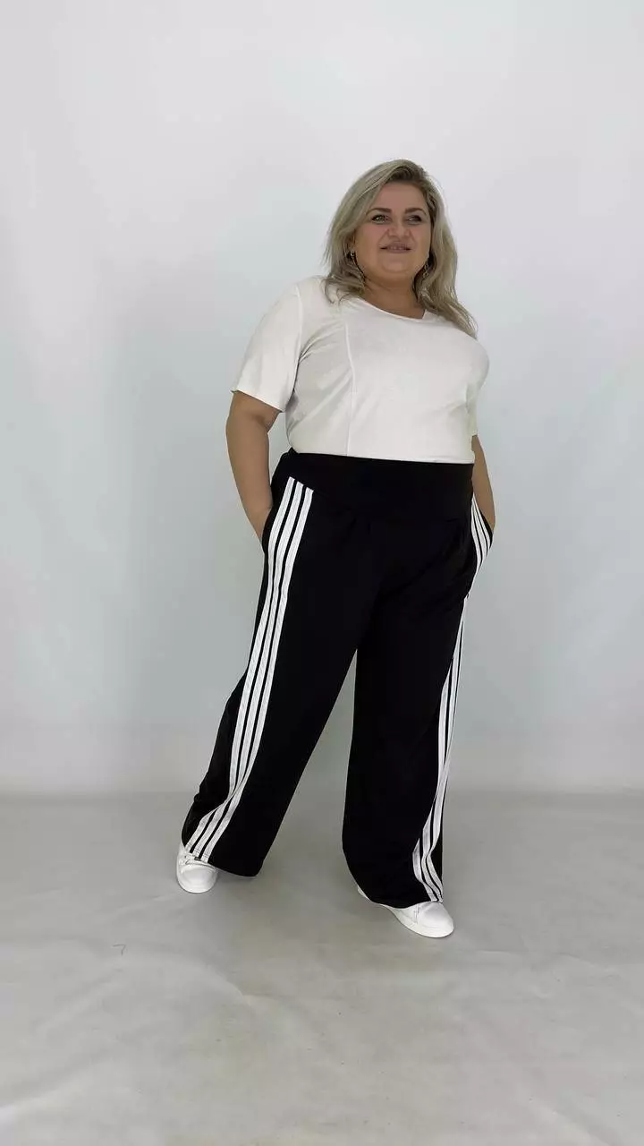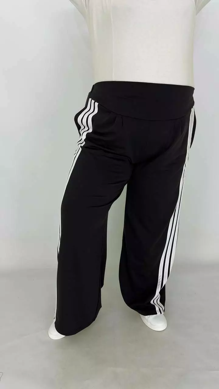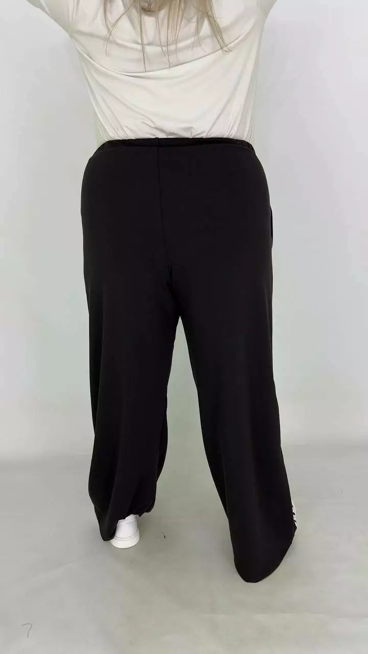 Широкі штани з трикотажу двонитка з гарною розтяжністю. Пояс спереду кокетка - без резинки, ззаду резинки , кишені в бічних швах.