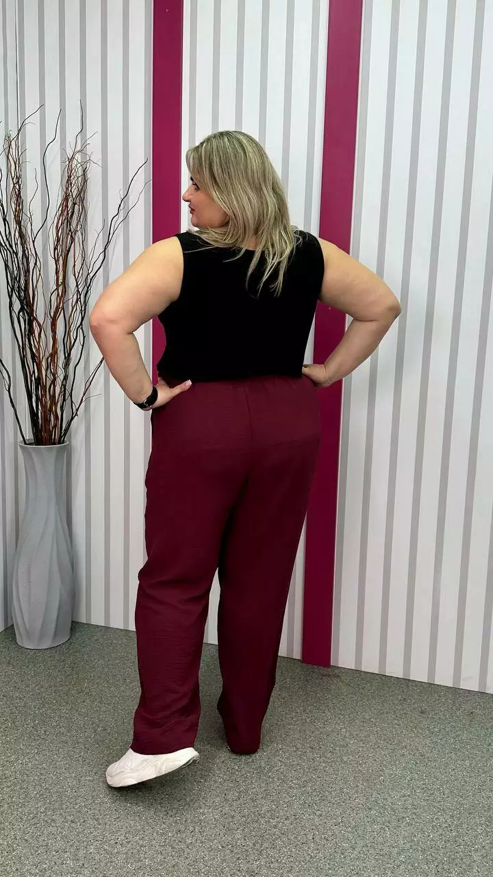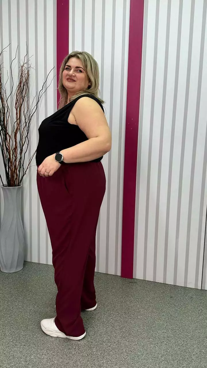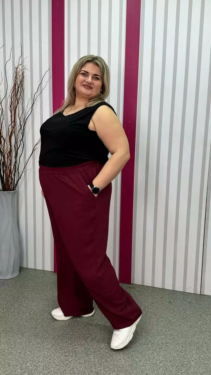 невеликою розтяжністю. Пояс на гумці, з кишенями, висока посадка.