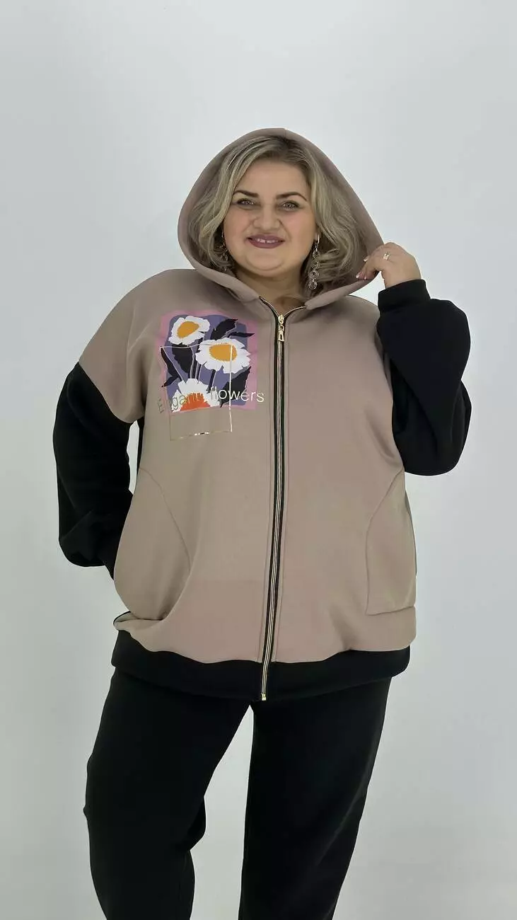 Стильна толстовка з трикотажу, тринитка з начосом з гарною розтяжністю, приємна до тіла.