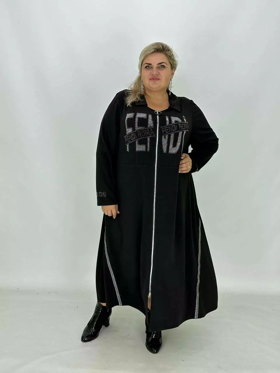 Стильное трикотажное клешеное платье "Фенді Рома" на змейке (Макси)