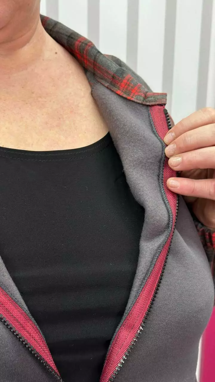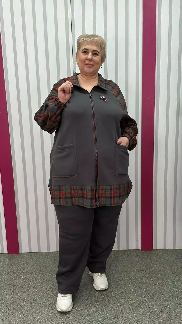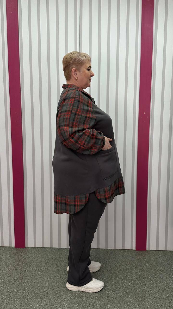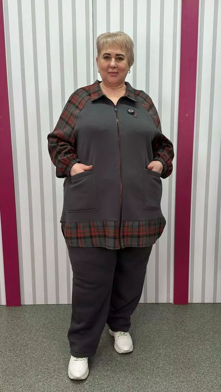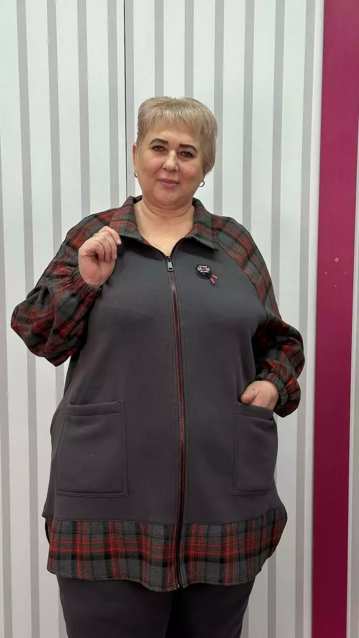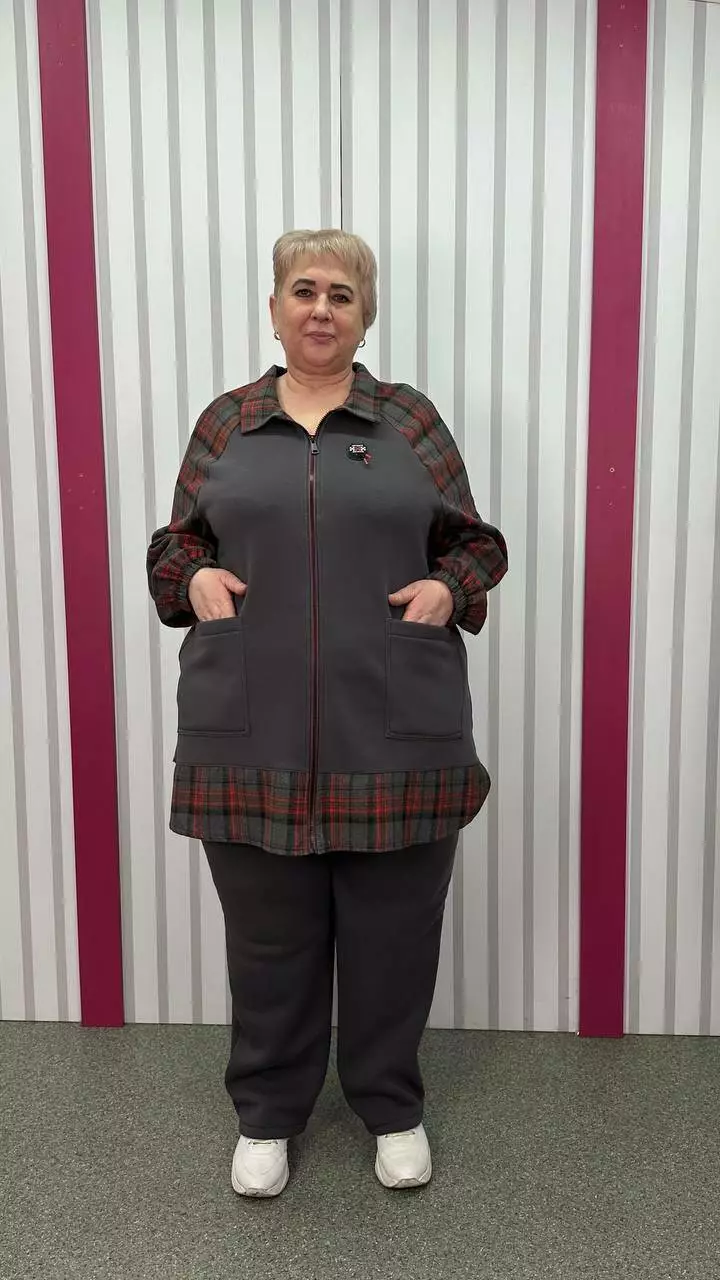Тепла трикотажна толстовка з тринитки з начосом комбінована з сорочковою тканиною Силует трапеція Дві накладні кишені Застібка блискавка Манжет рукава на резинці Тканина м'яка, приємна до тіла, тягнеться
