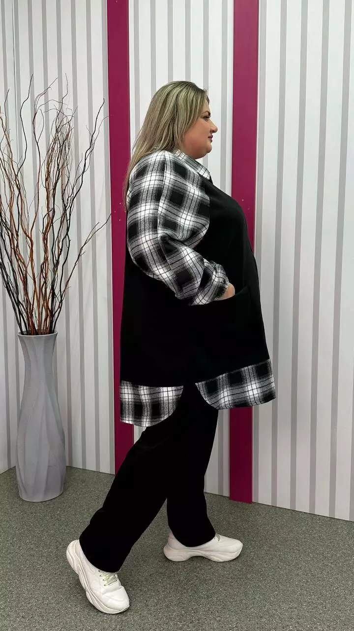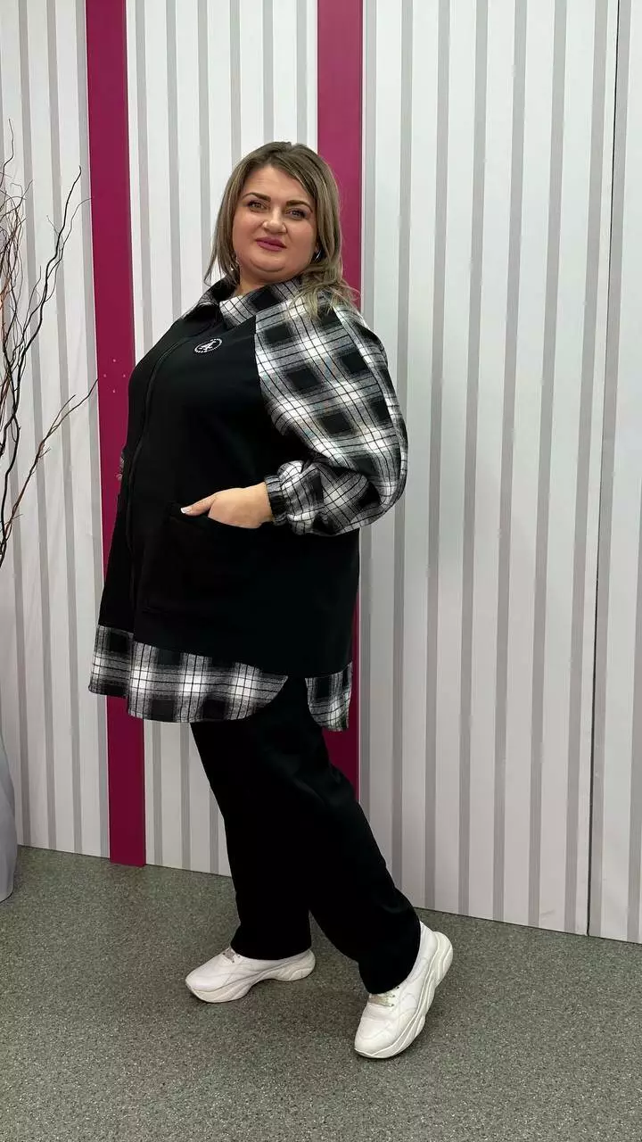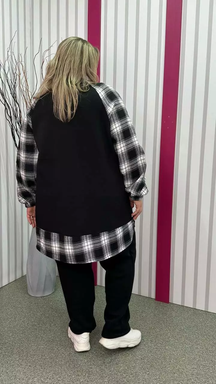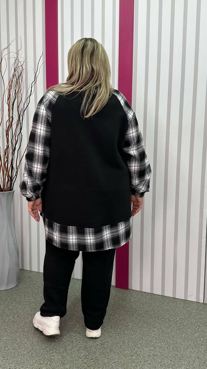Тепла трикотажна толстовка з тринитки з начосом комбінована з сорочковою тканиною Силует трапеція Дві накладні кишені Застібка блискавка Манжет рукава на резинці Тканина м'яка, приємна до тіла, тягнеться