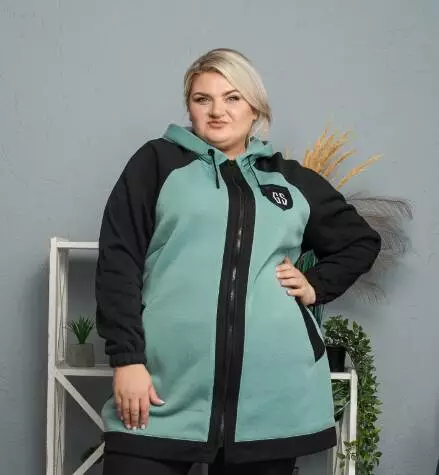 Тепла подовжена толстовка "Селеста" на змійці з капюшоном Батал 74-76