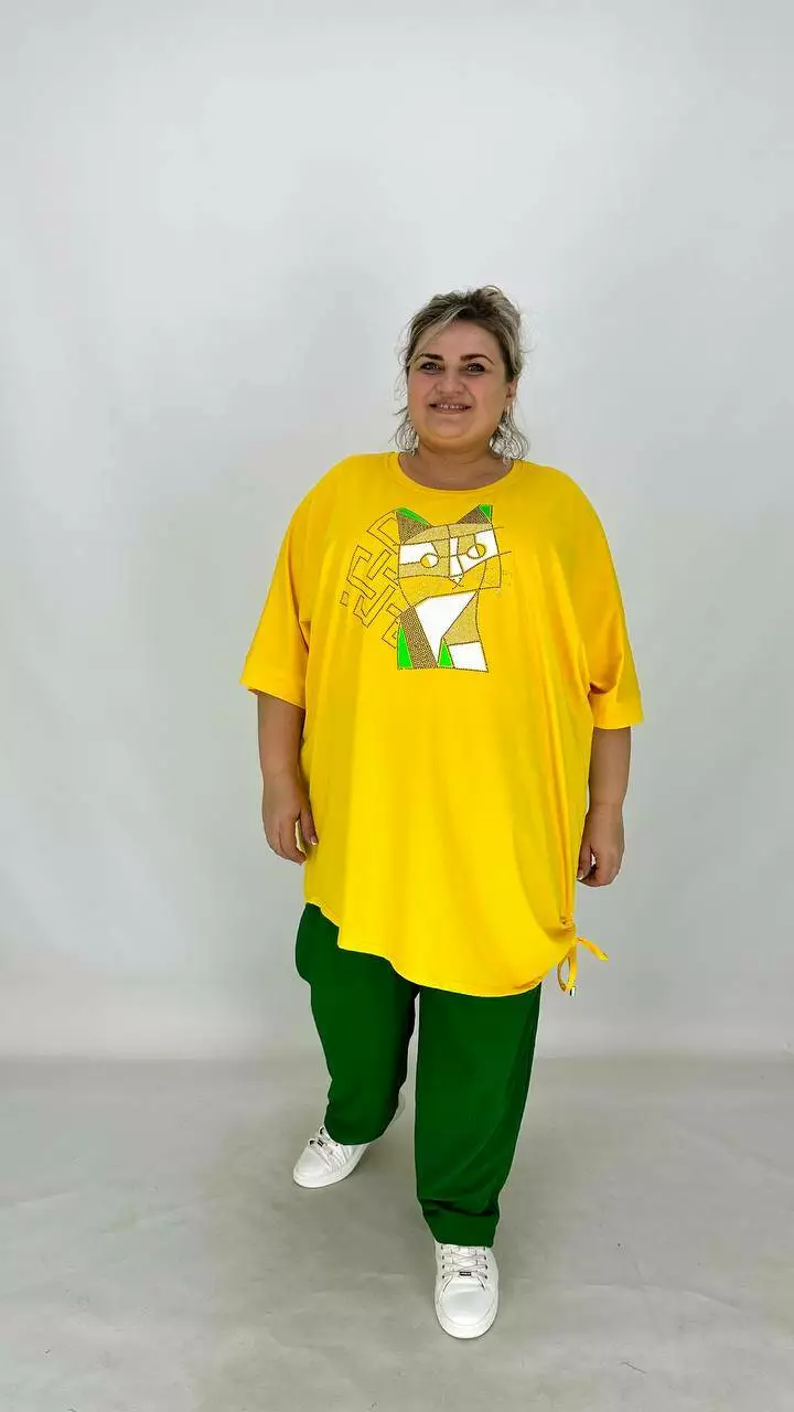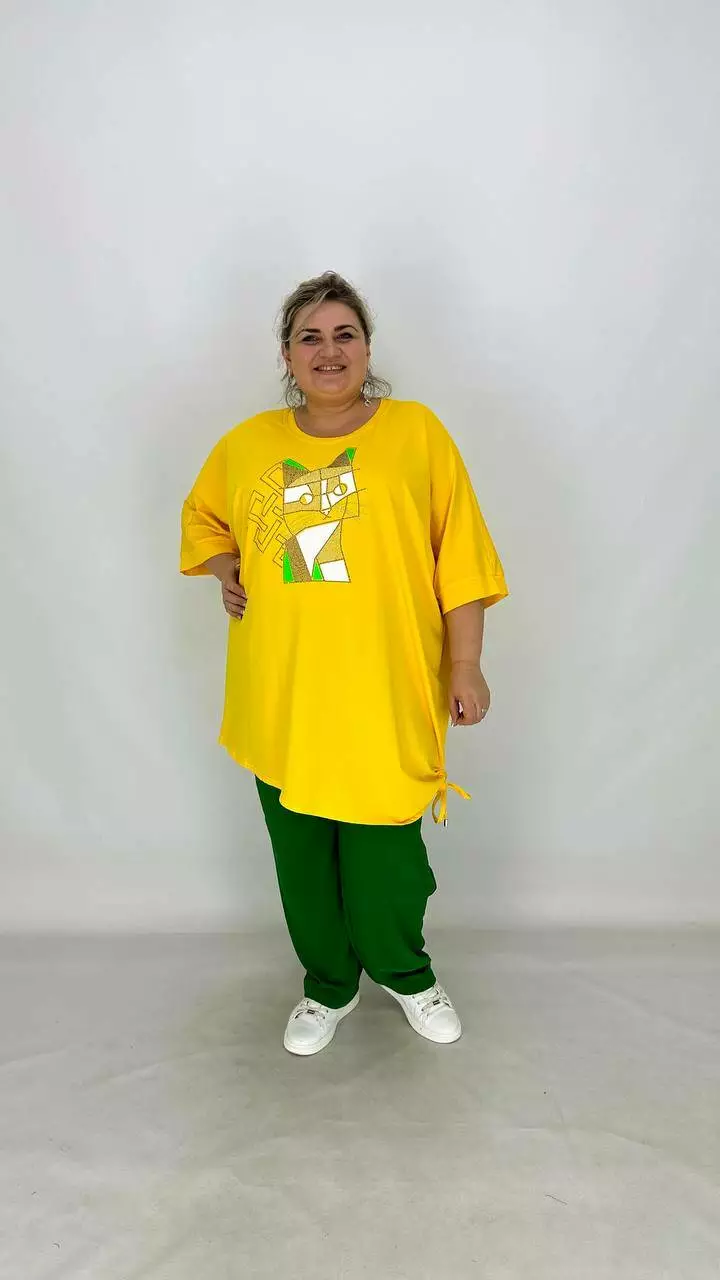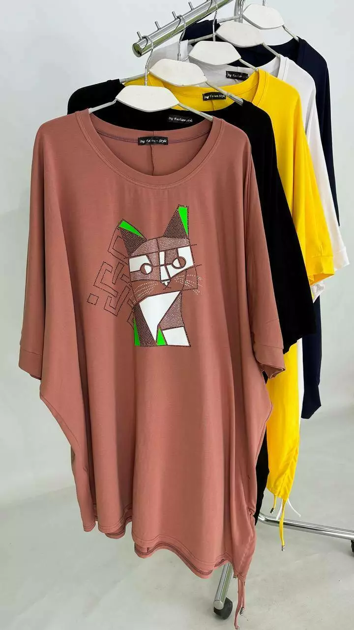 Трикотажна подовжена вільна туніка "Котик" з якісним накатом 70-74