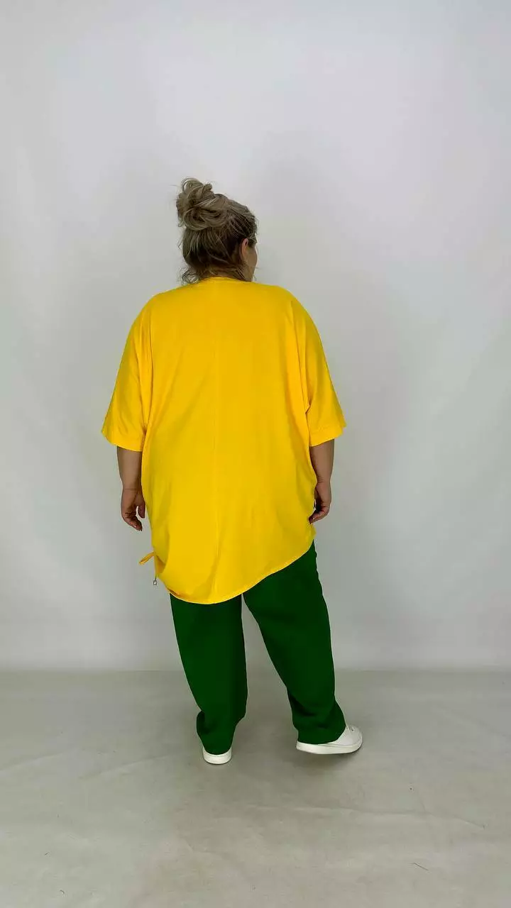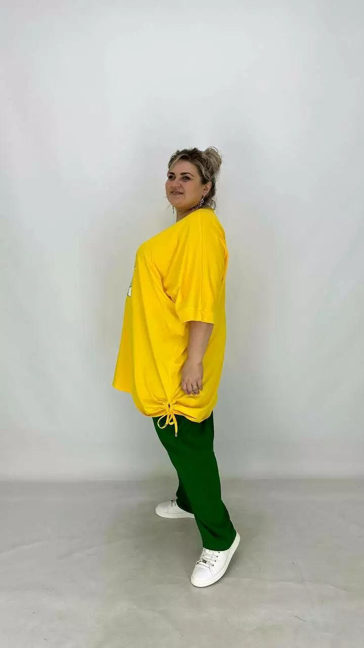 Вільний силует з асиметричним низом, з боку-стяжка, рукав на манжеті.