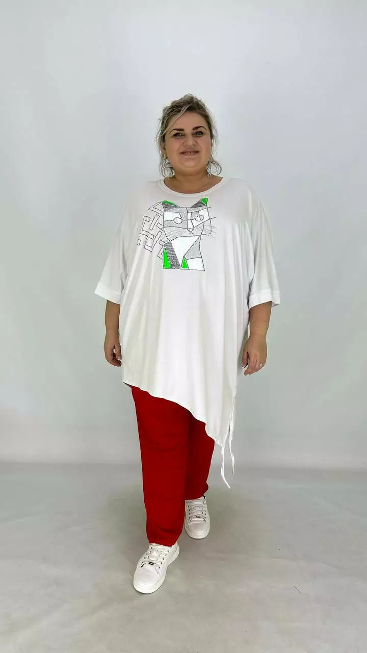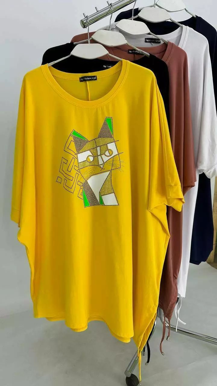 Трикотажна подовжена вільна туніка "Котик" з якісним накатом 62-68 70-74
