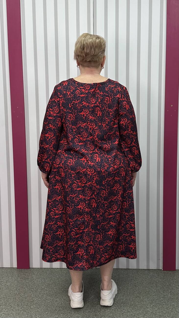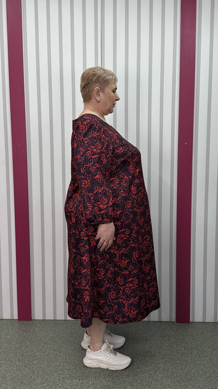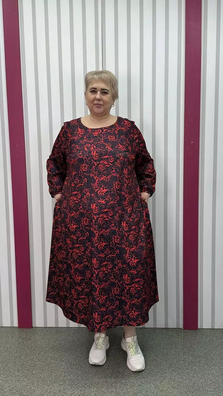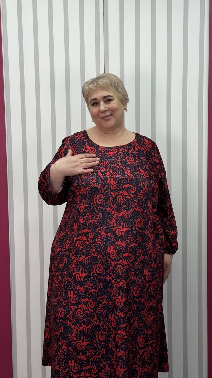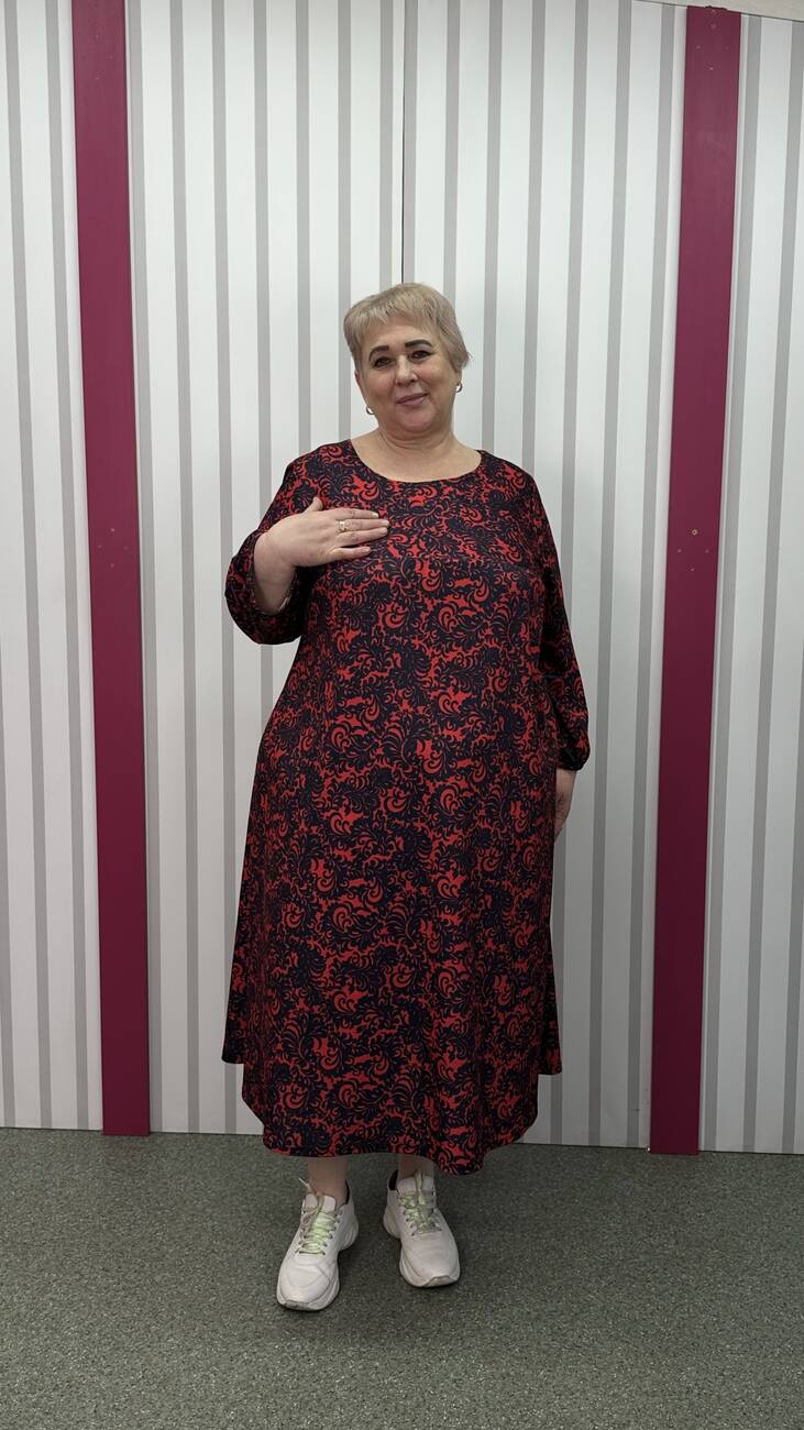Сукня із французького трикотажу виробництва Корея із середньою розтяжністю, гарної якості. М'яка, приємна до тіла. Силует трапеція, кишені у бокових швах, рукав 3/4 . Не потребує особливого догляду.