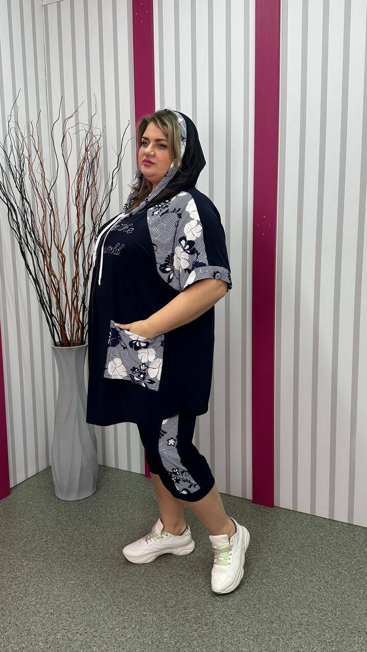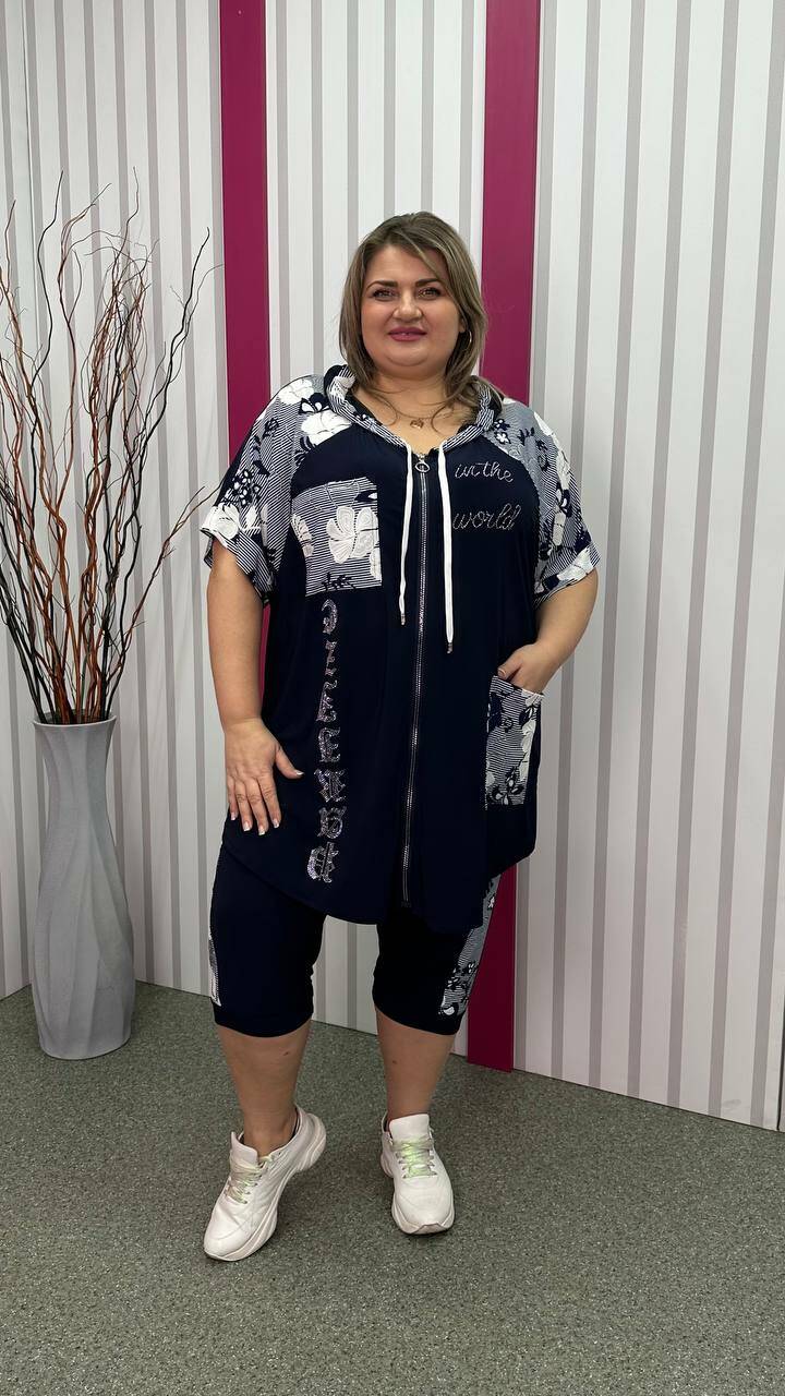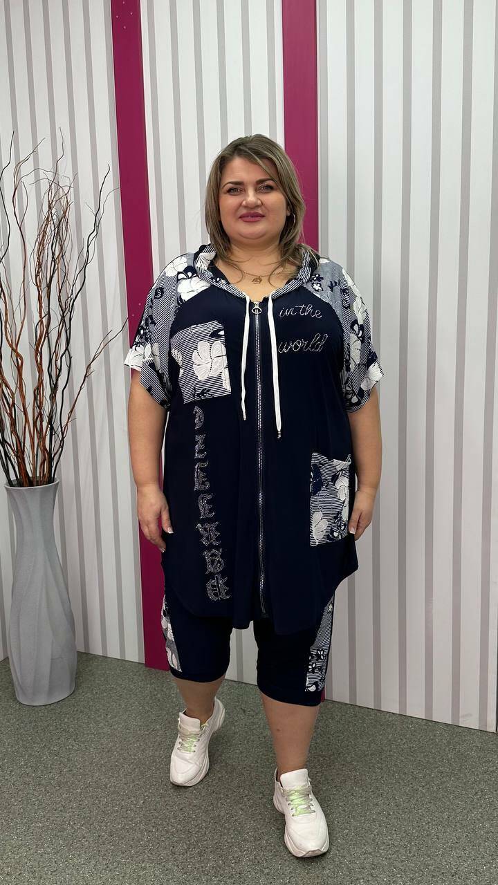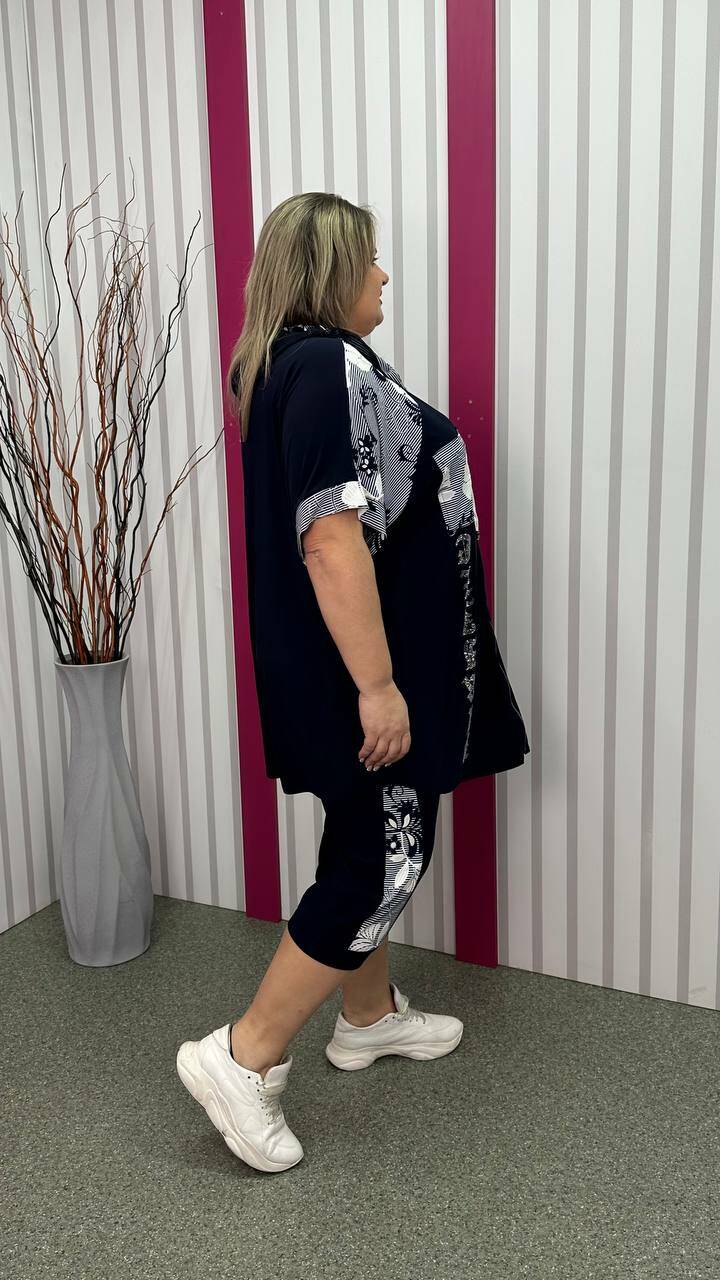 Трикотажний костюм туніка+капрі "Фокус 2" великого розміру 62-64 66-68 70-72 74-76