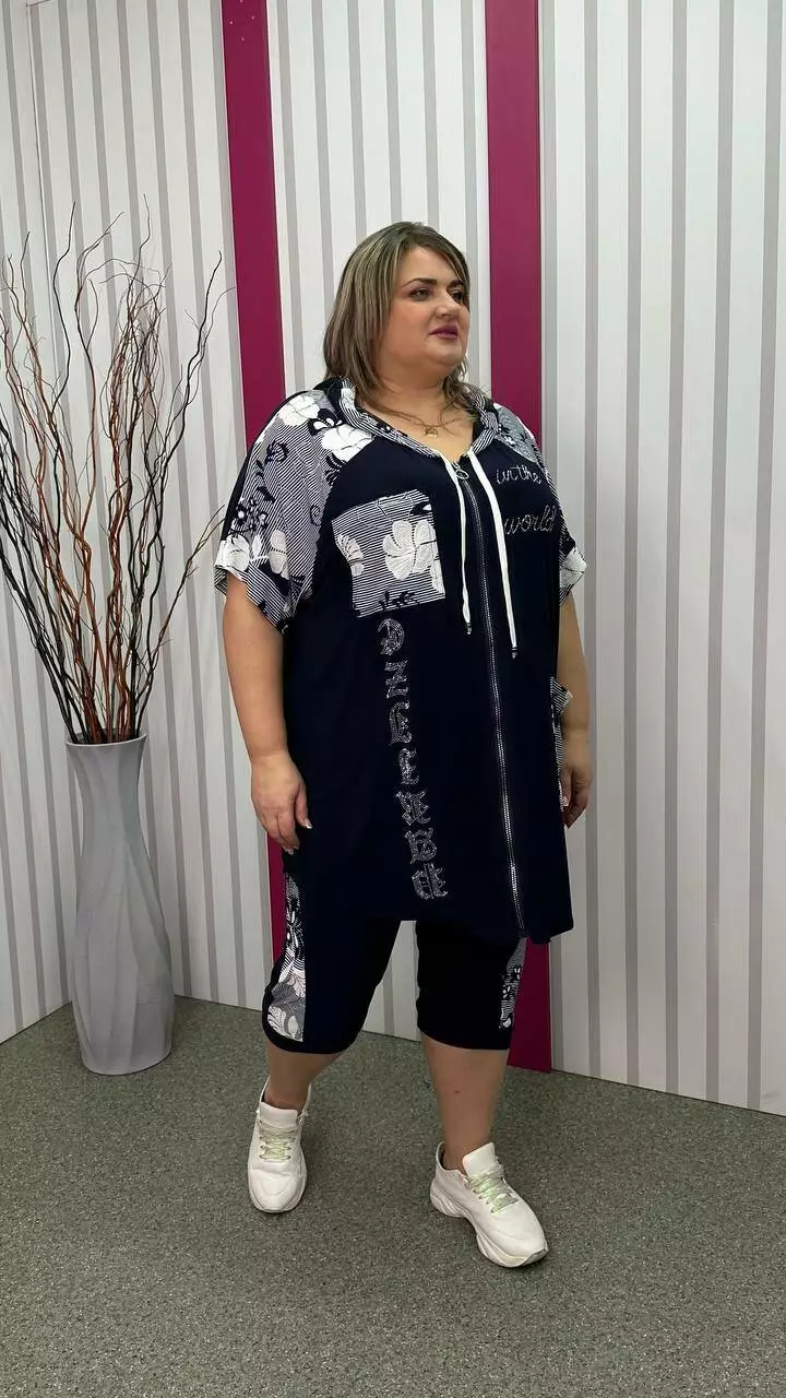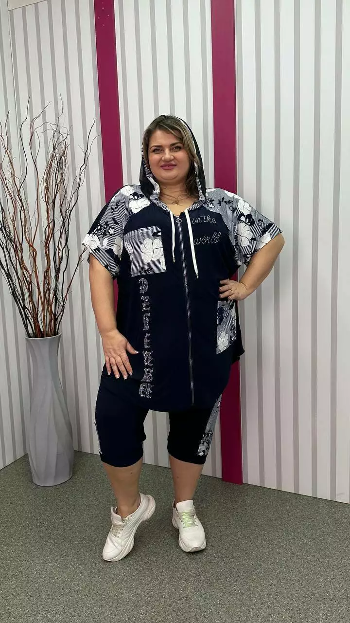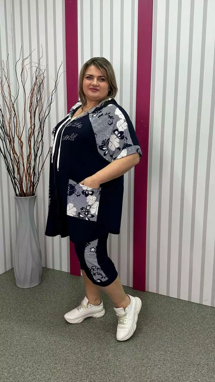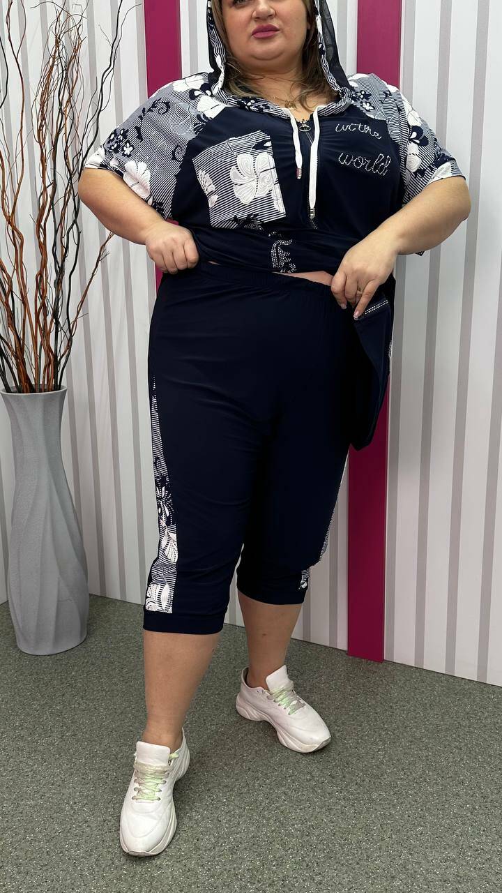 Трикотажний костюм туніка+капрі "Фокус 2" великого розміру 62-64 66-68 70-72 74-76