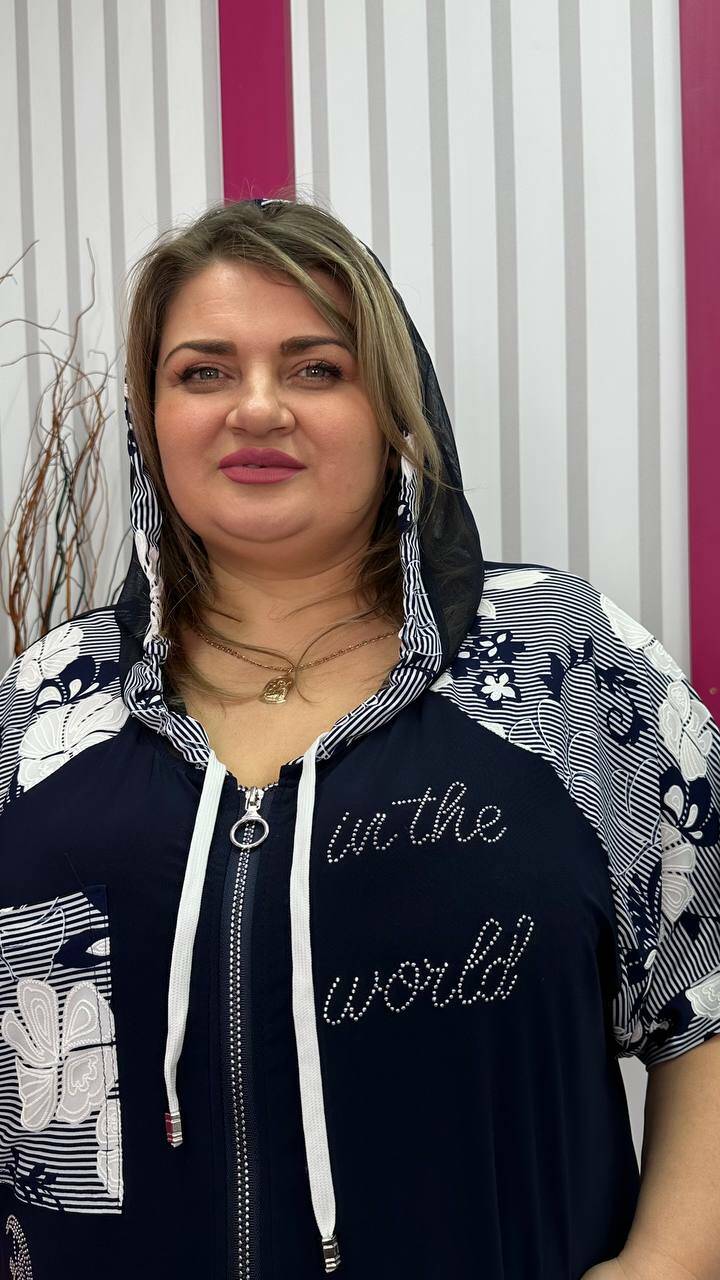 Кофта: Обсяг грудей до 160; Об'єм талії до 152; Об'єм стегон до 160; Довжина виробу 85; Довжина плеча 39; Ширина манжети 54-60.