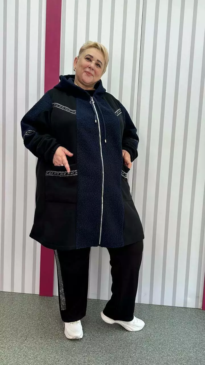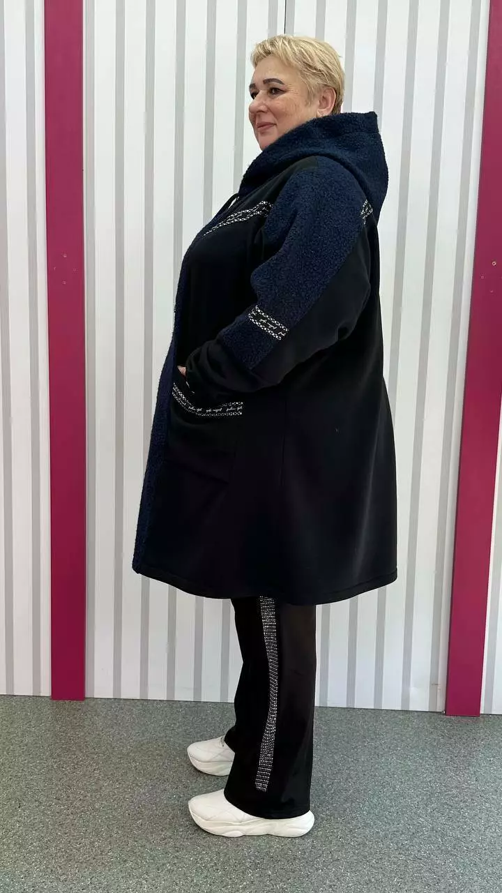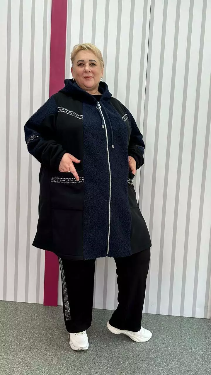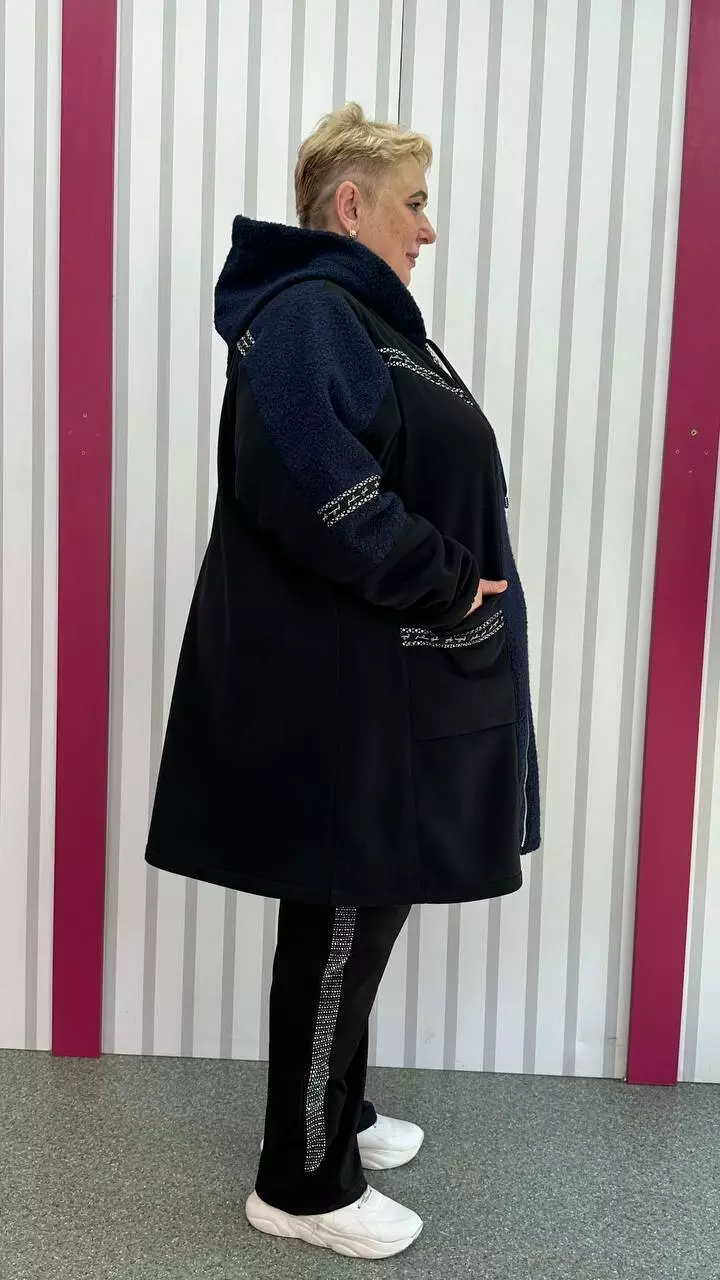 Трикотажний теплий комбінований стильний кардиган "Шаблі-2" на блискавці 66-68 70-72 74-76 78-80