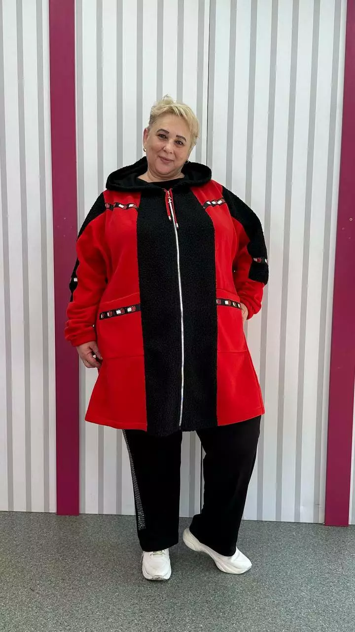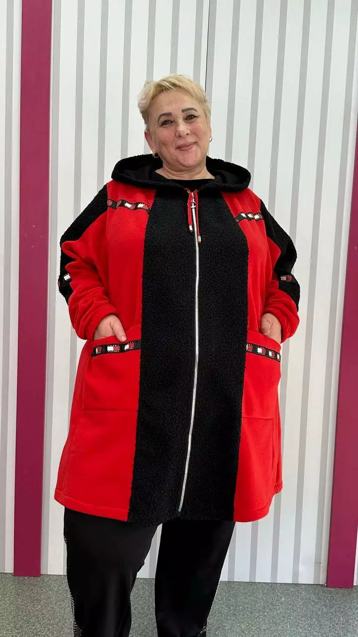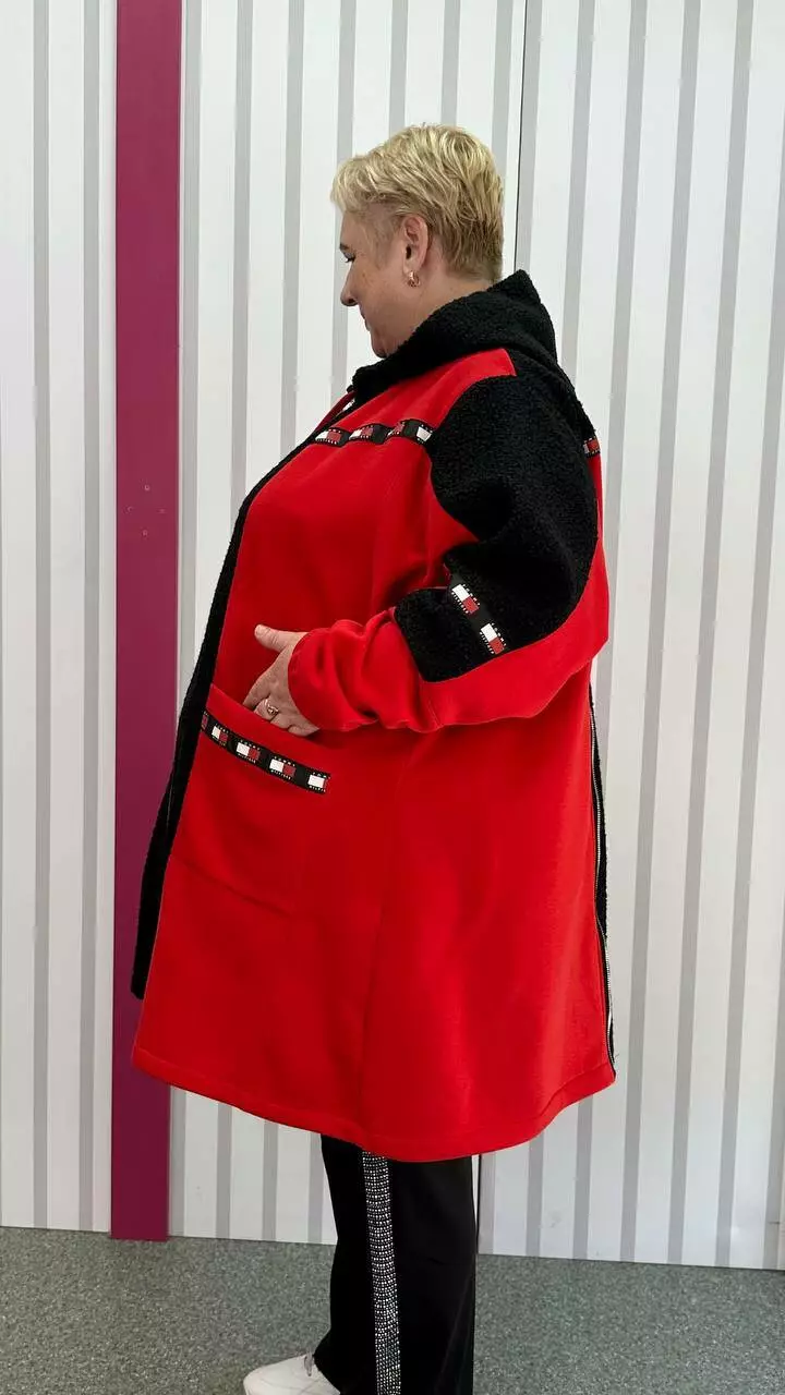Трикотажний теплий комбінований стильний кардиган "Шаблі-2" на блискавці 66-68 70-72 74-76 78-80