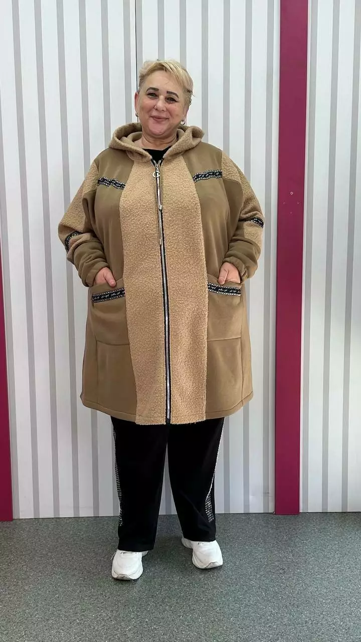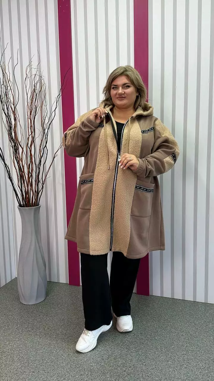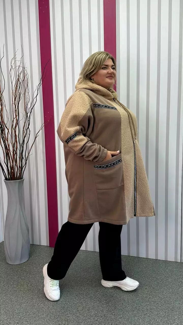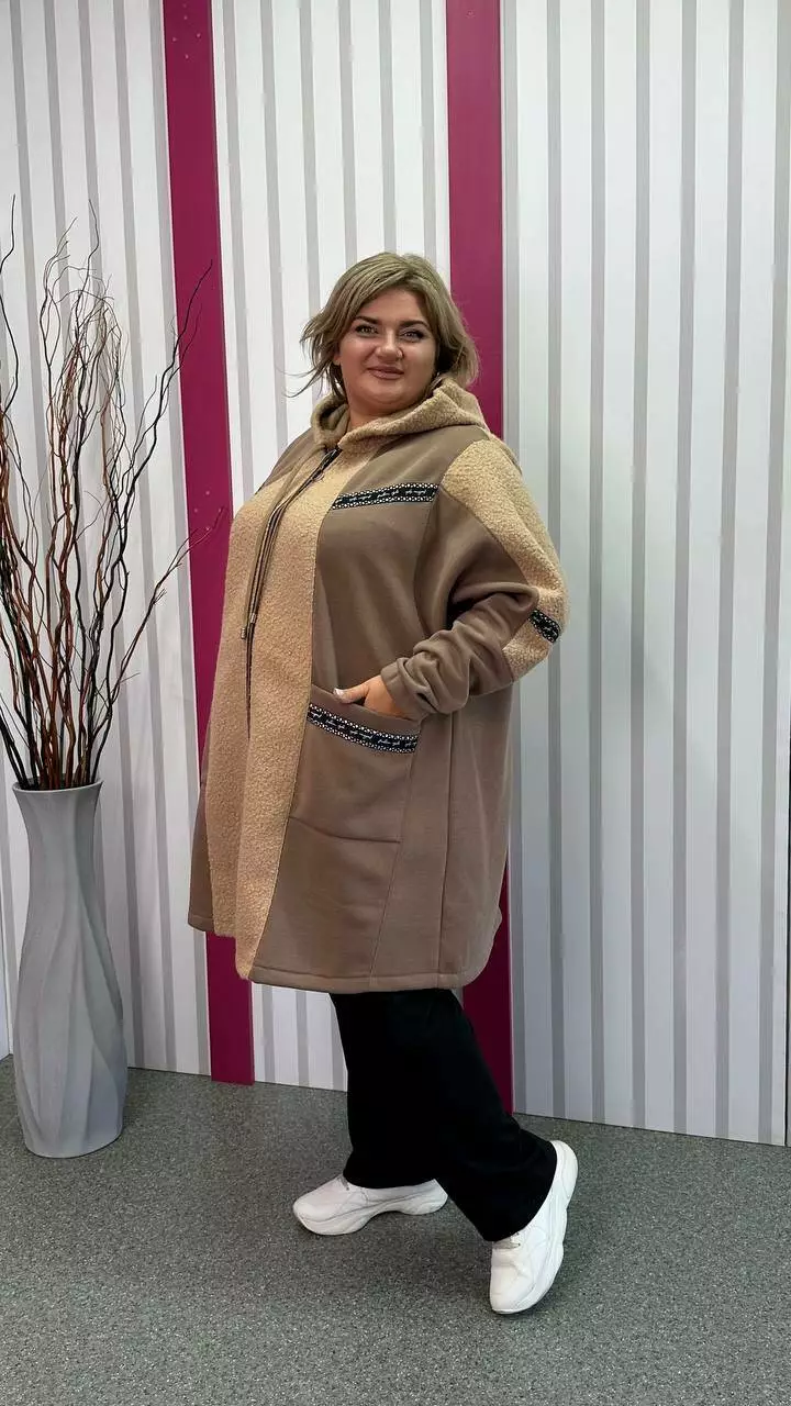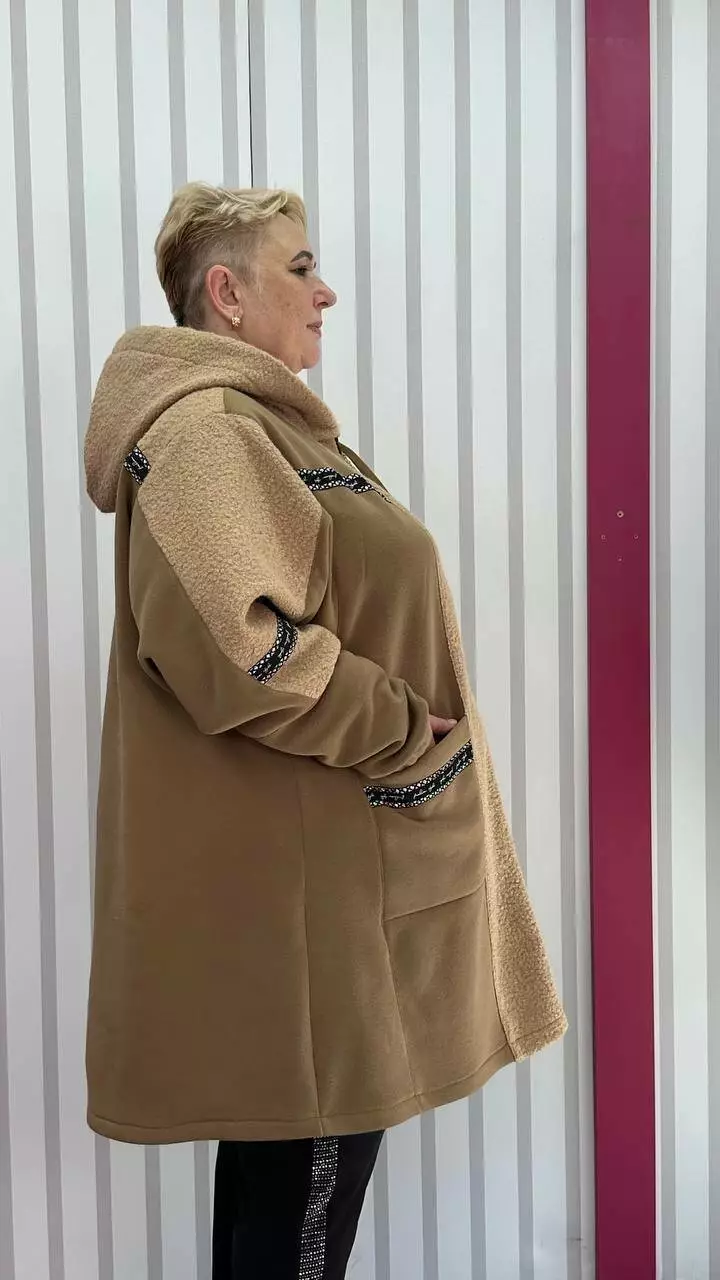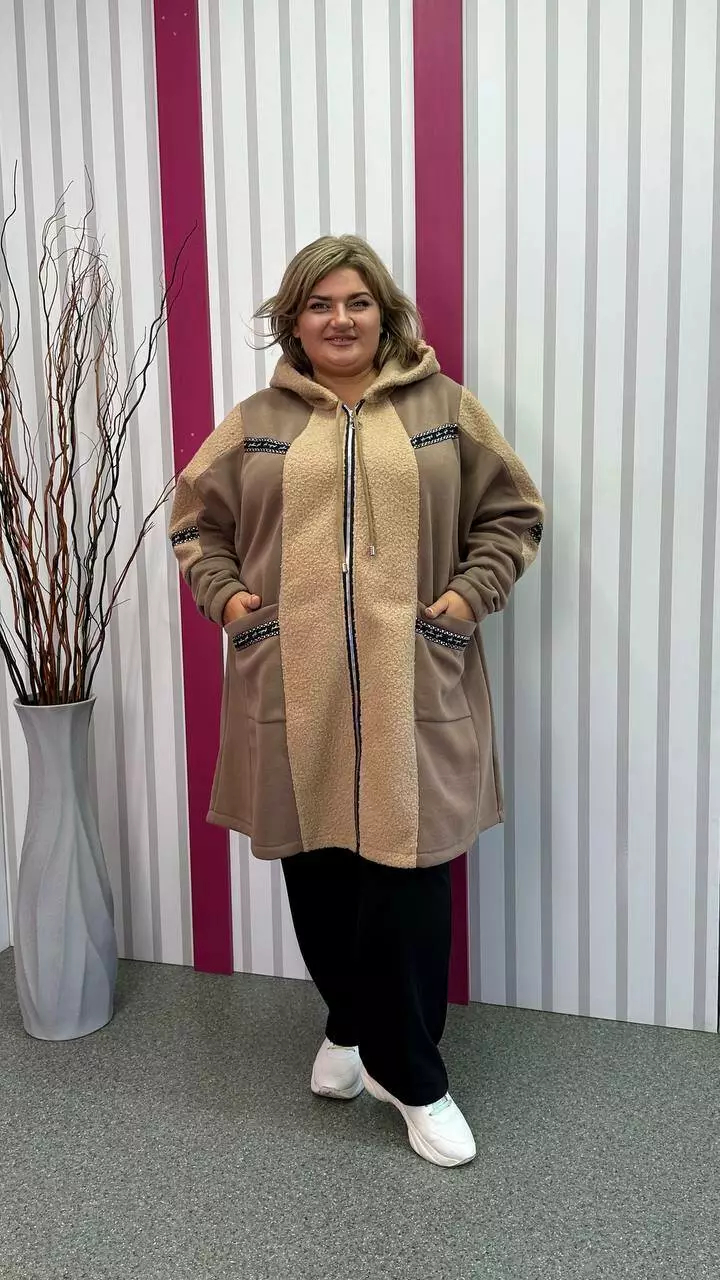Трикотажний теплий комбінований стильний кардиган "Шаблі-2" на блискавці 66-68 70-72 74-76 78-80