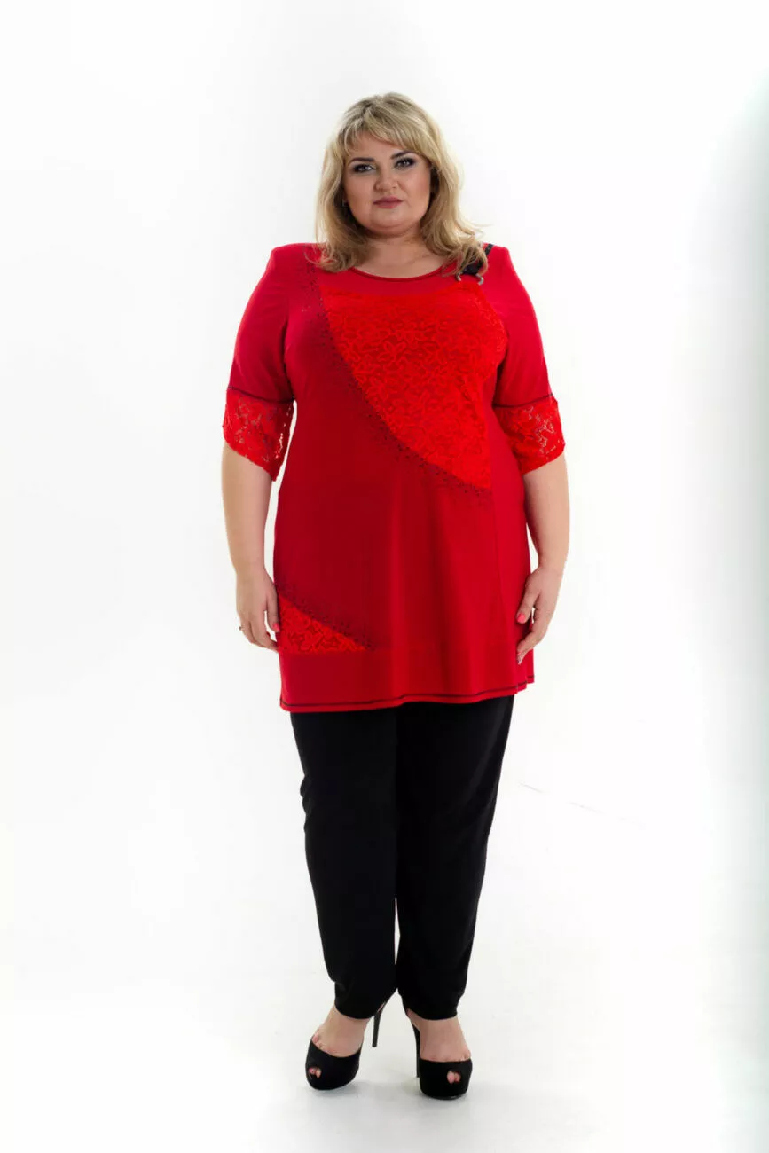 Тканина: олія 70% поліестер; 20% віскоза; 10% еластан. Красива туніка великих розмірів Джейн виконана з тканини масло, прикрашена вставками з дорогого гіпюру. Тканина якісна, міцна в носінні не вимагає особливого догляду.