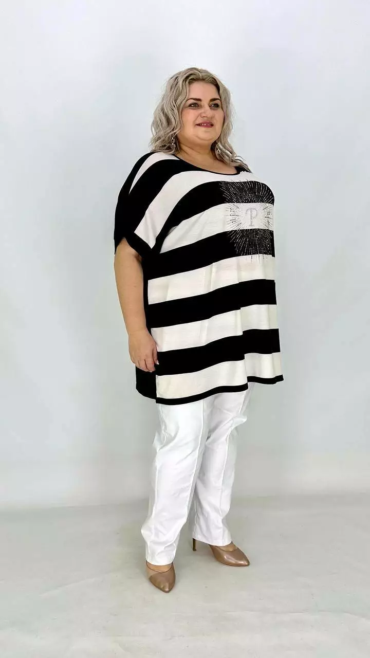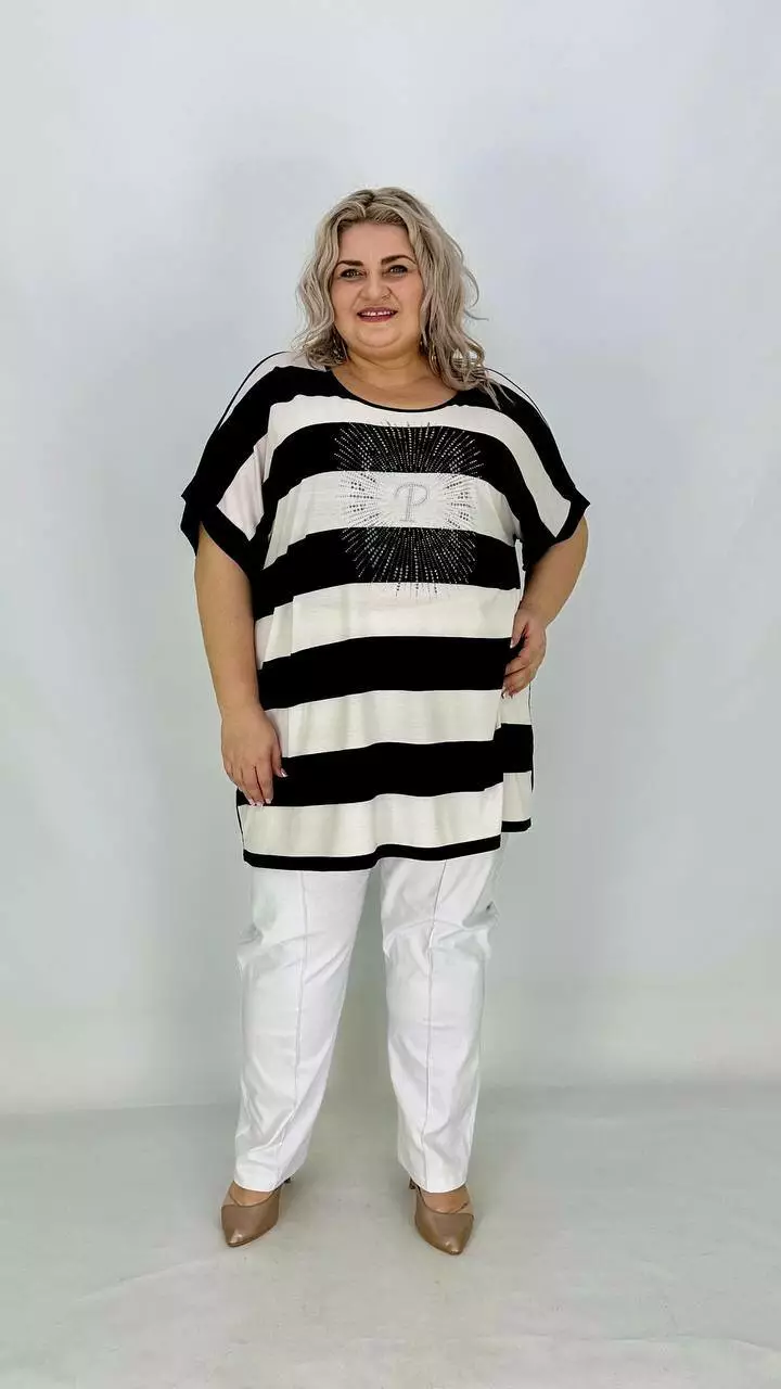 Туніка-футболка трикотажна літня "Смужка" з камінчиками 66-68 70-72