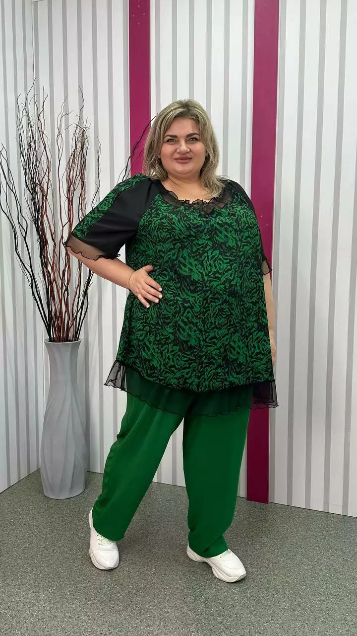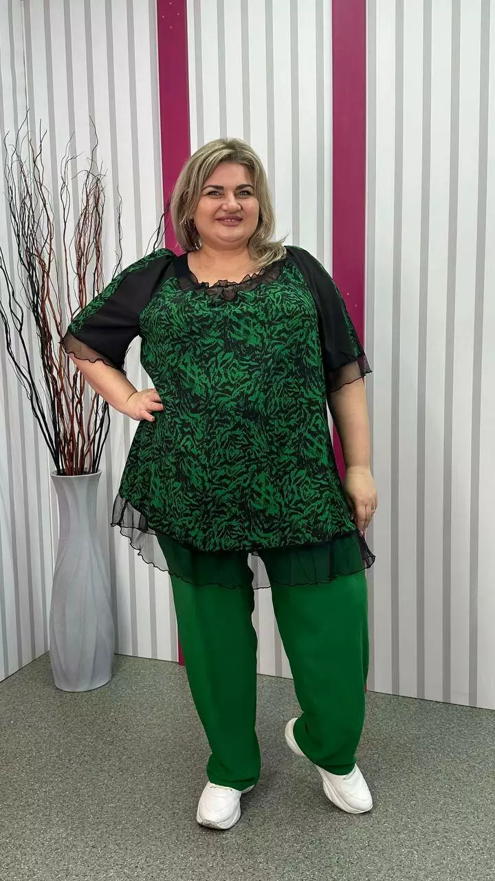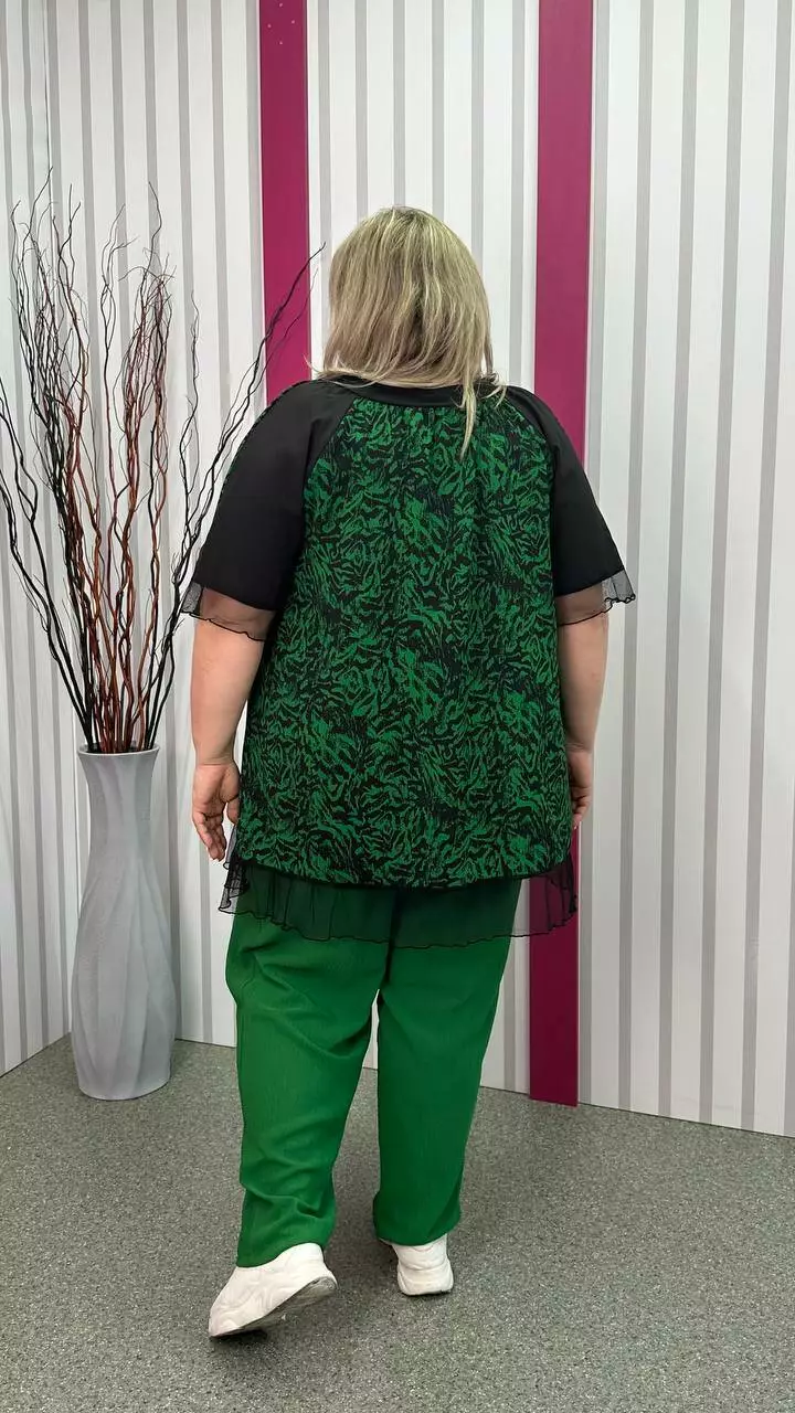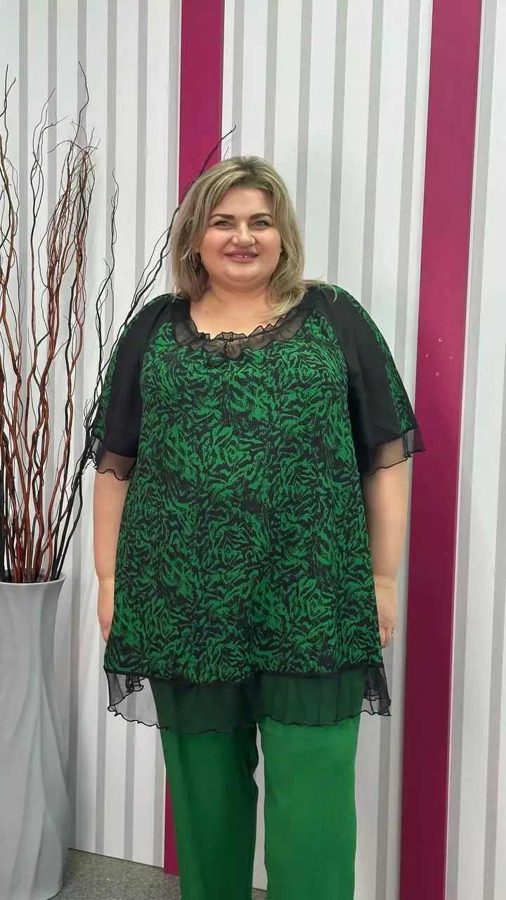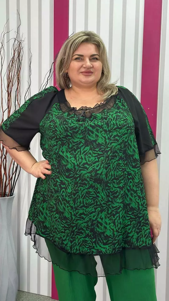 Туніка розлітайка із супер софту, комбінована зі стрейчевою сіткою. Тканина легка, м'яка, не меніться, не потребує особливого догляду. Силует трапеція рукав реглан, горловина регулюється стрічкою.