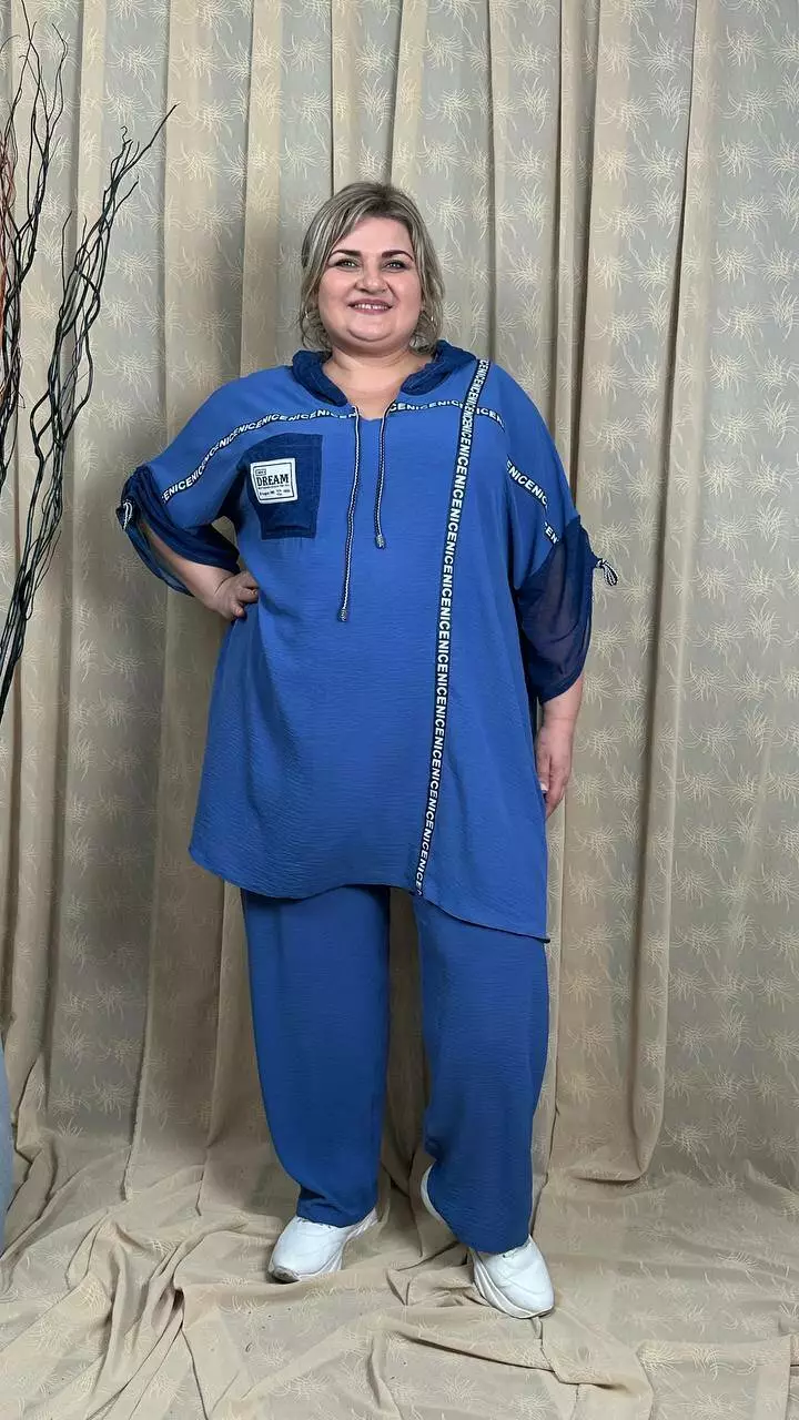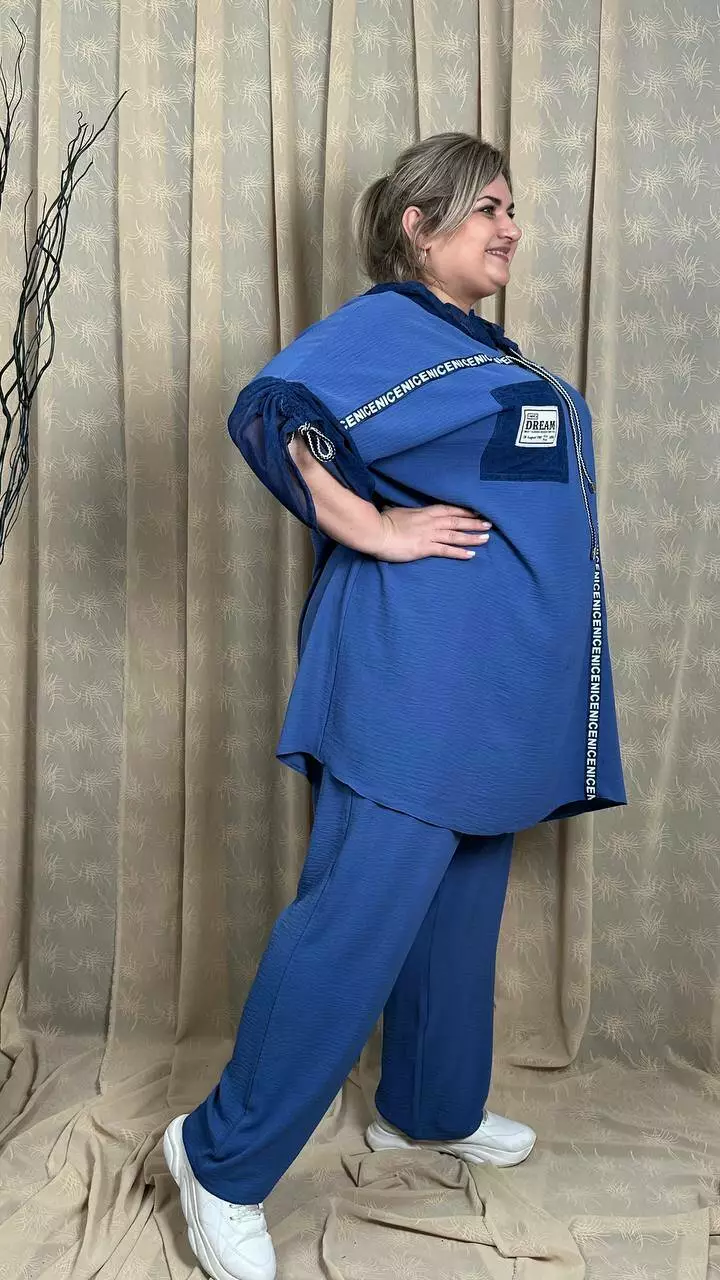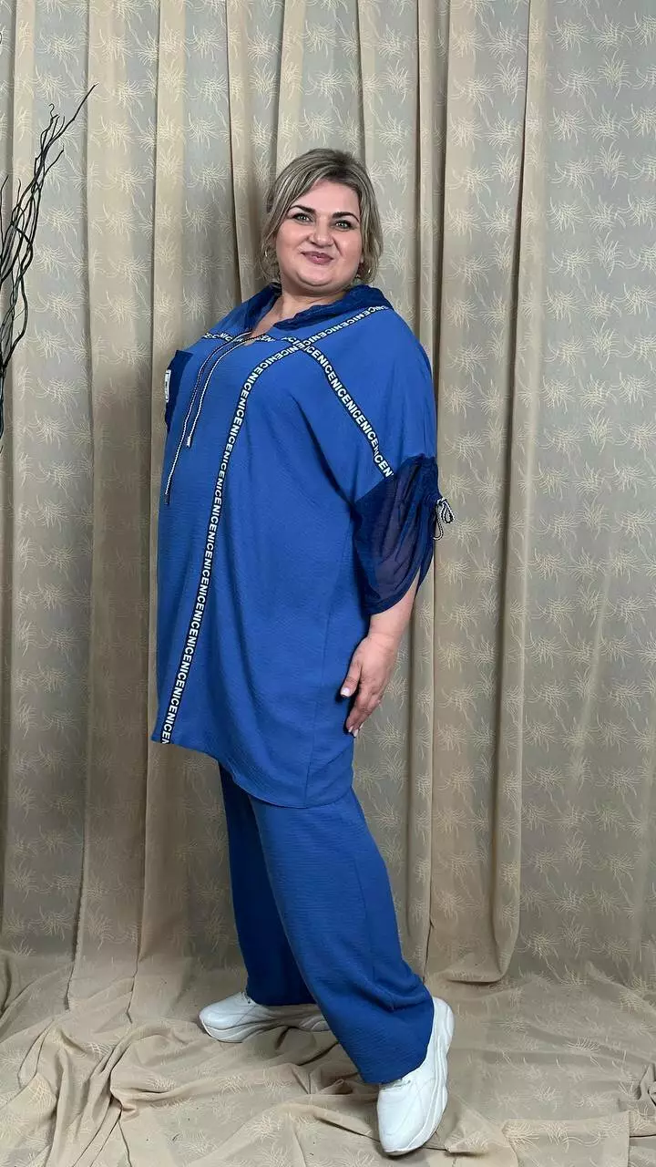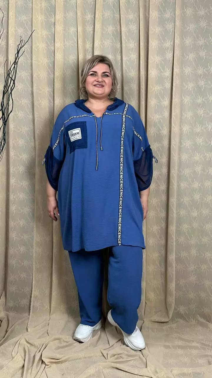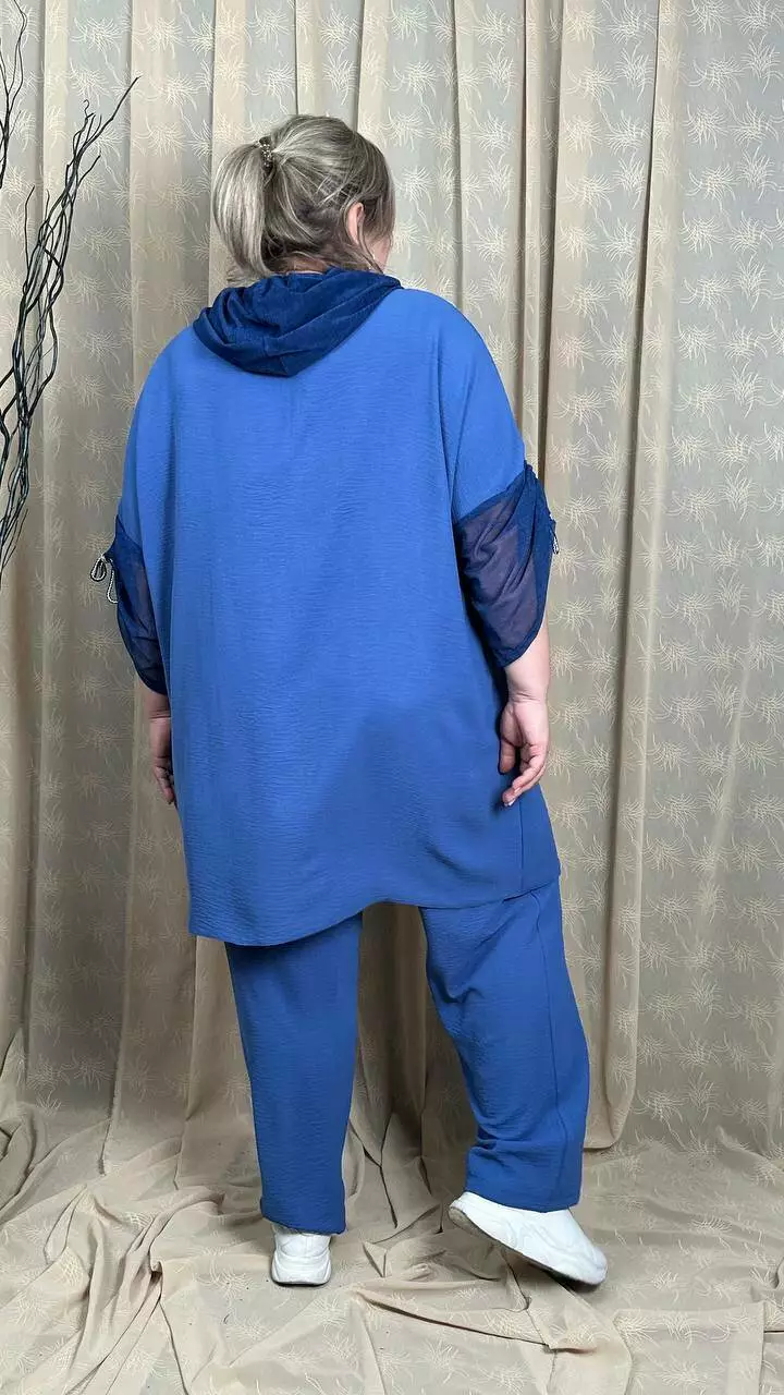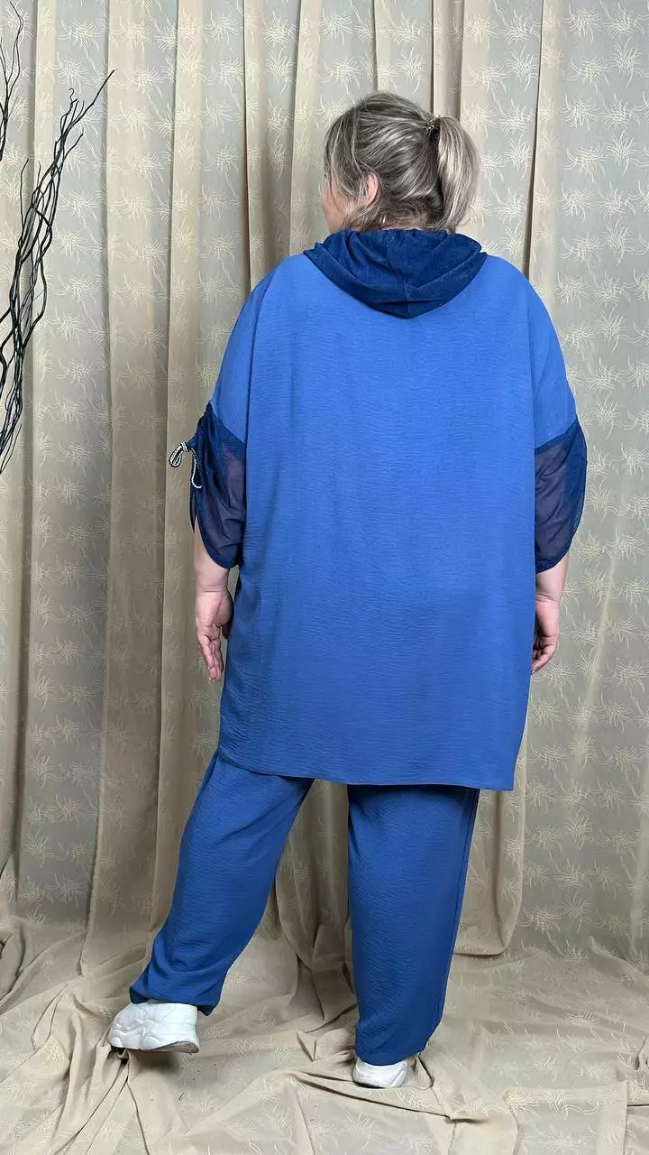 Туніка вільного крою з легкої тканини - американський креп з ефектом жатості, комбінована з м'якою сіткою трикотажної, довжина рукава регулюється затяжками.