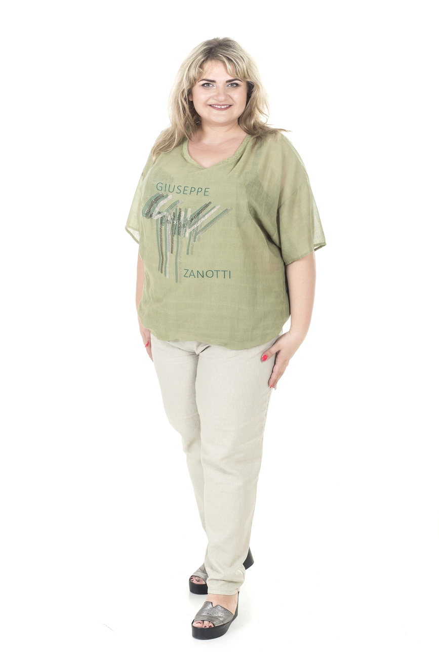 Тканина: марля -100% бавовна. Модна, легка туніка вільного силуету. Рукав короткий, спущений; горловина кругла. Тканина невагома, гігроскопічна та добре носиться.