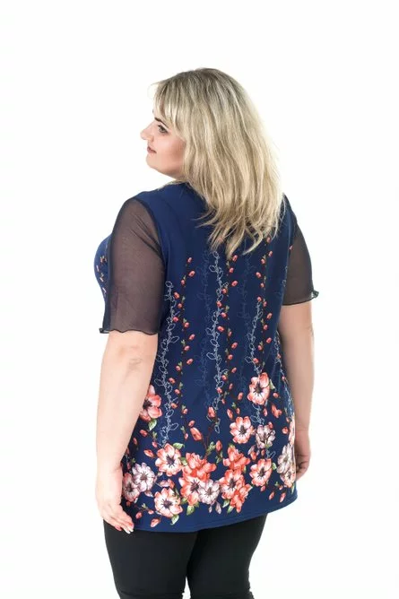 Тканина: масло - 70% поліестер; 20% віскоза; 10% еластан. Красива туніка напівприлеглий силует. Рукав, кишені та горловина вирощені із сітки. Кишені накладні, горловина кругла, рукав короткий. Розміри :