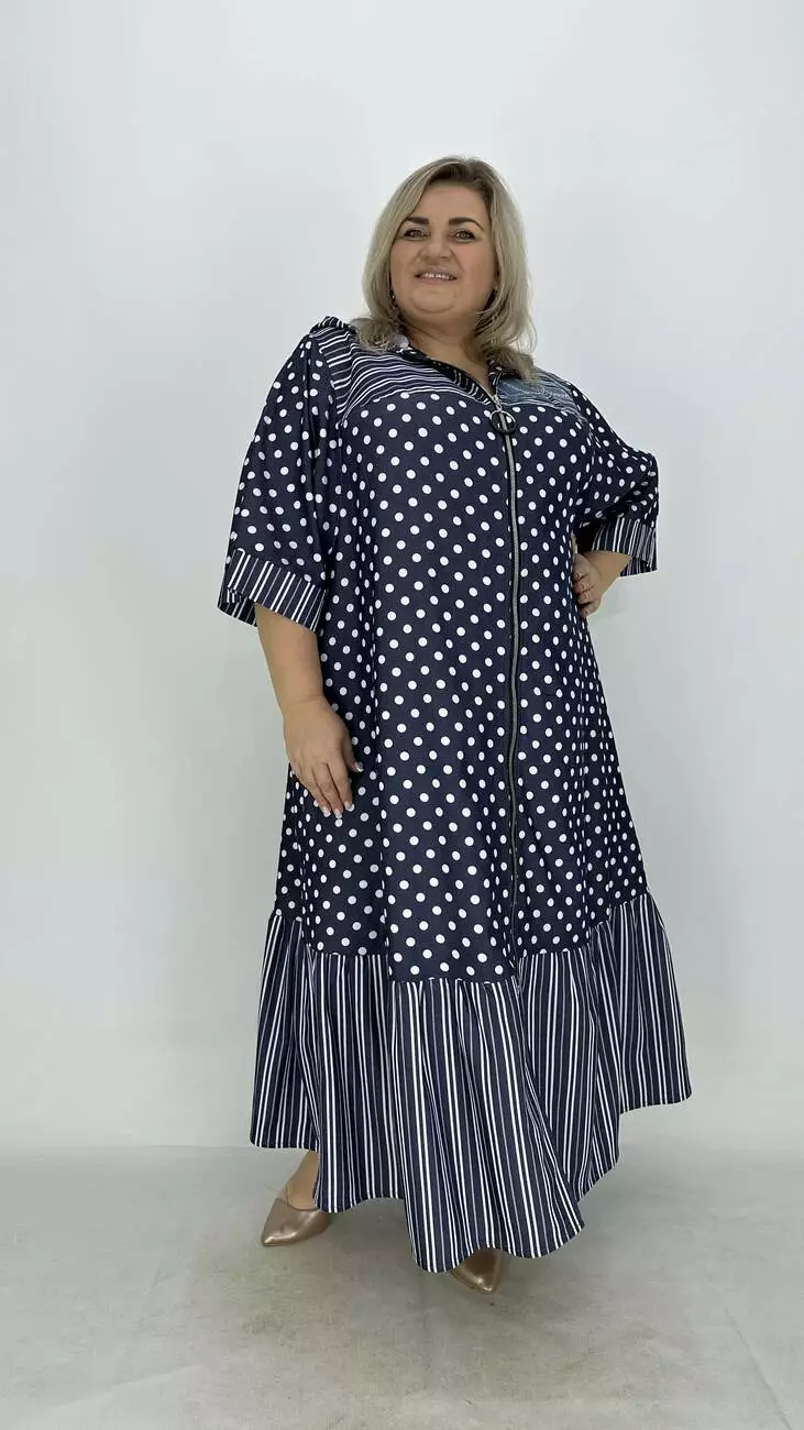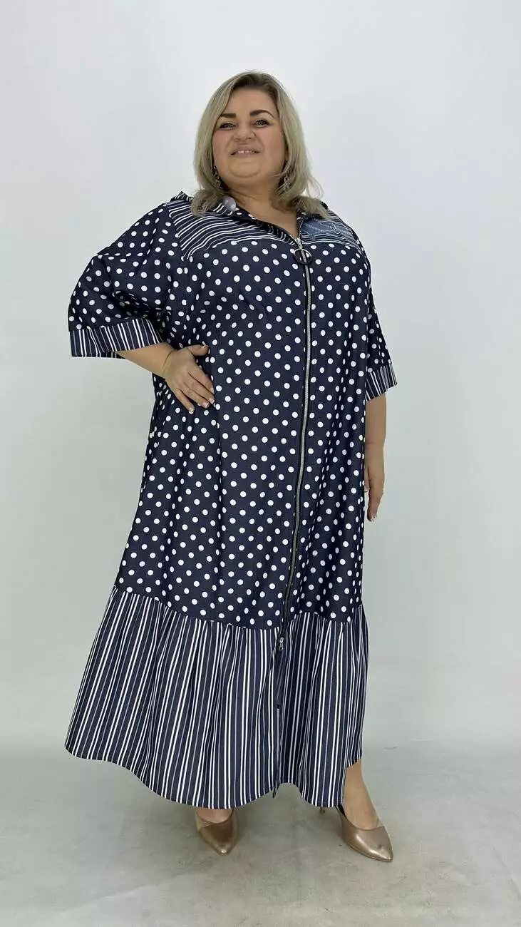 Великого розміру джинсова сукня-сорочка "Ліра" у горох 66-68 70-72 74-76