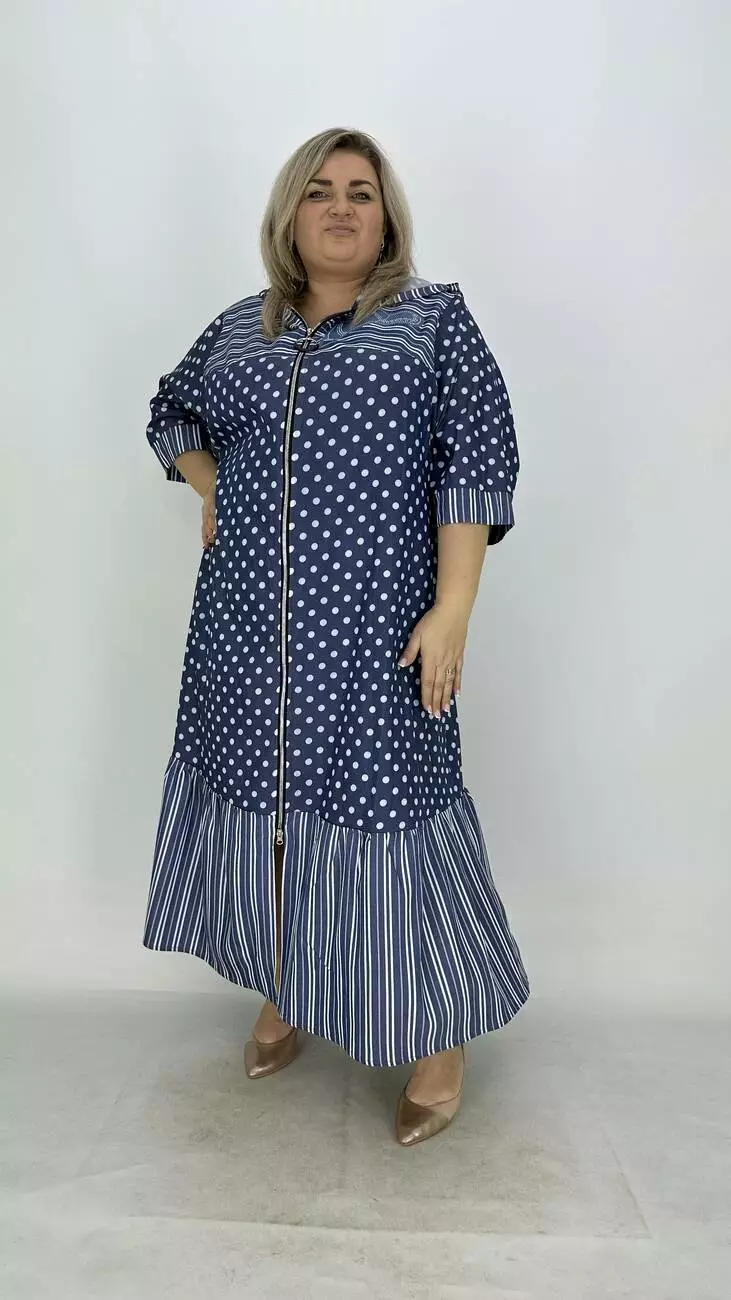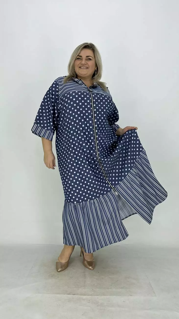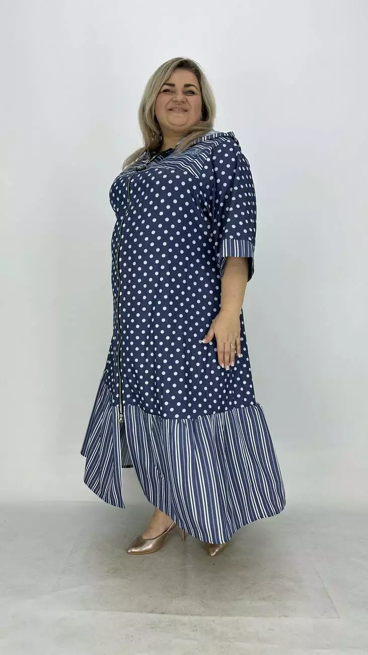 Великого розміру джинсова сукня-сорочка "Ліра" у горох 66-68 70-72 74-76