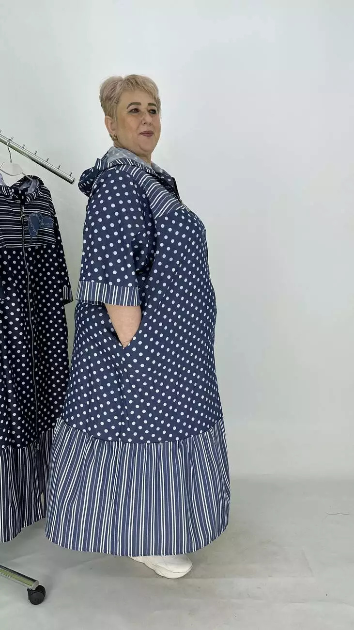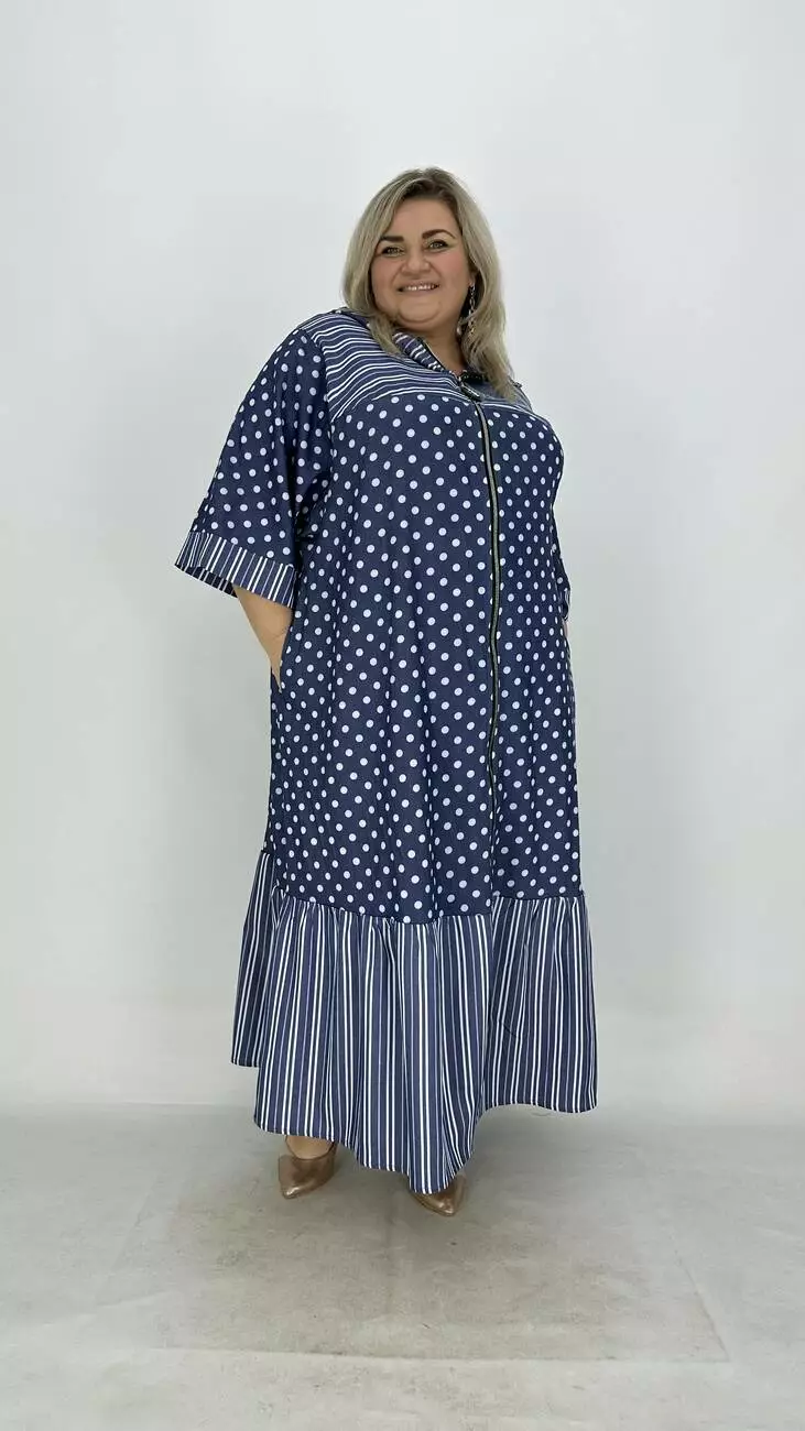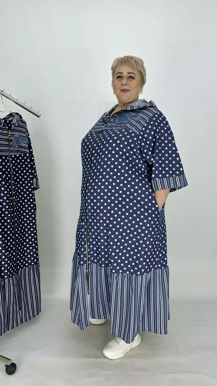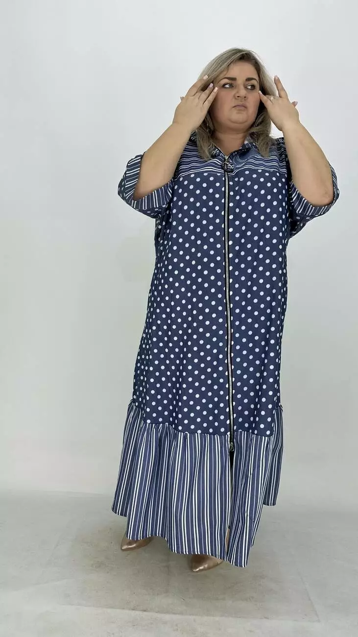 Великого розміру джинсова сукня-сорочка "Ліра" у горох 66-68 70-72 74-76