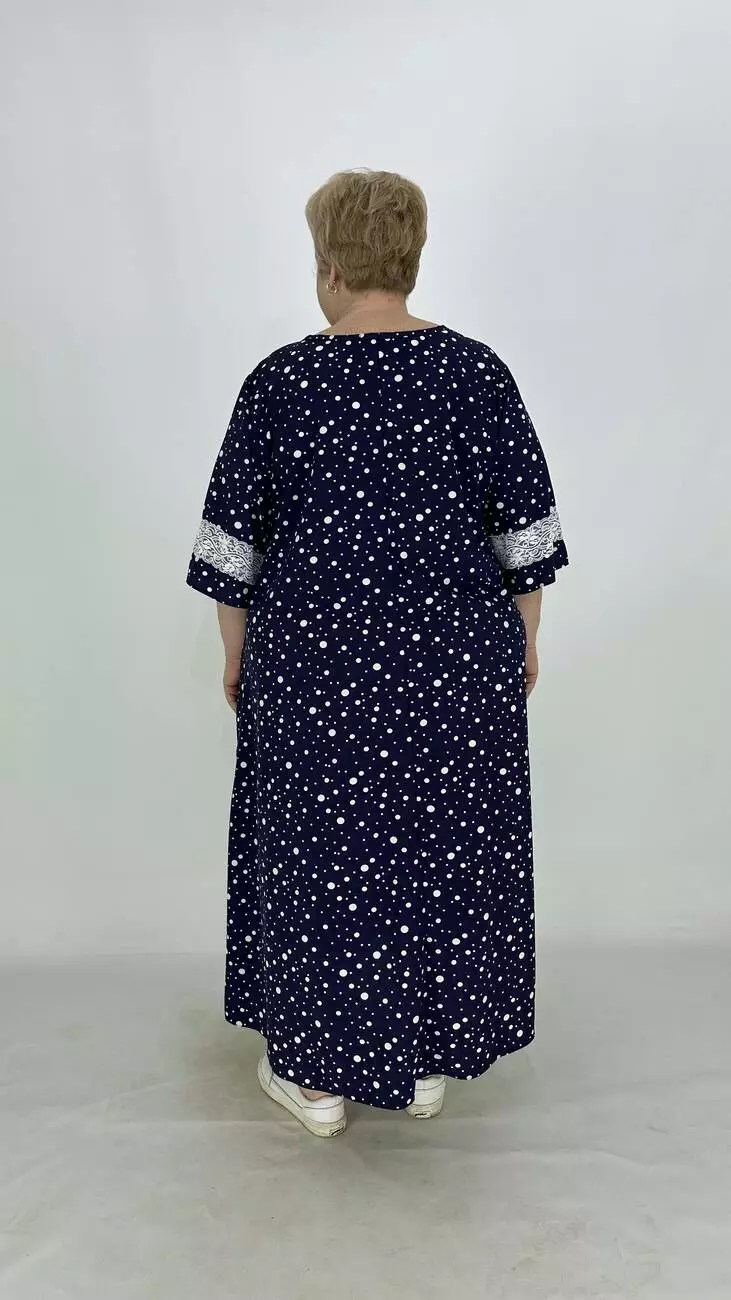 Свободное платье из супер софта, ткань лёгкая, мягкая, не мнется, растяжимости нет. А-образный силует, карманы в боковых швах. Платье украшено кружевом, рукав расширен.