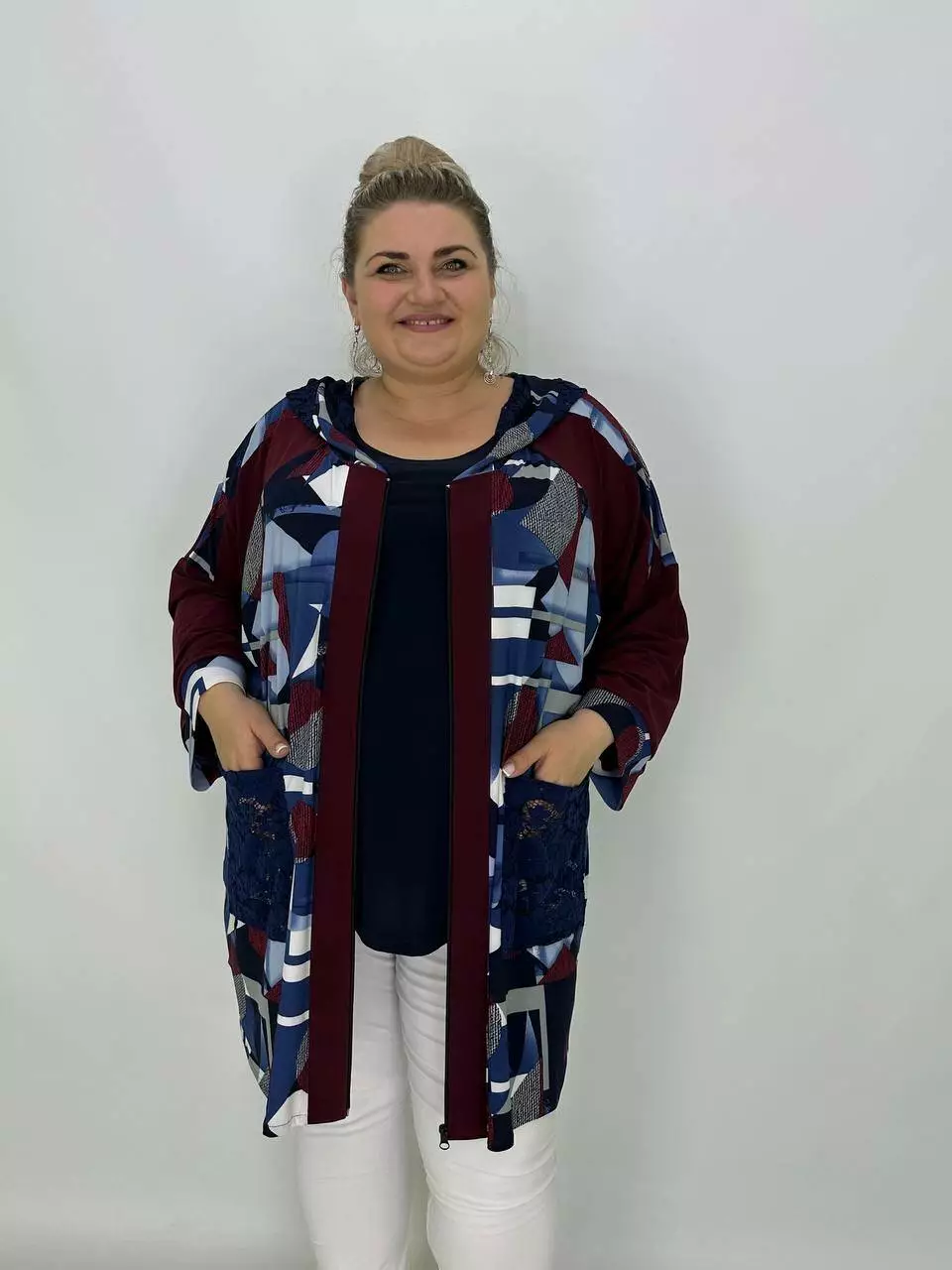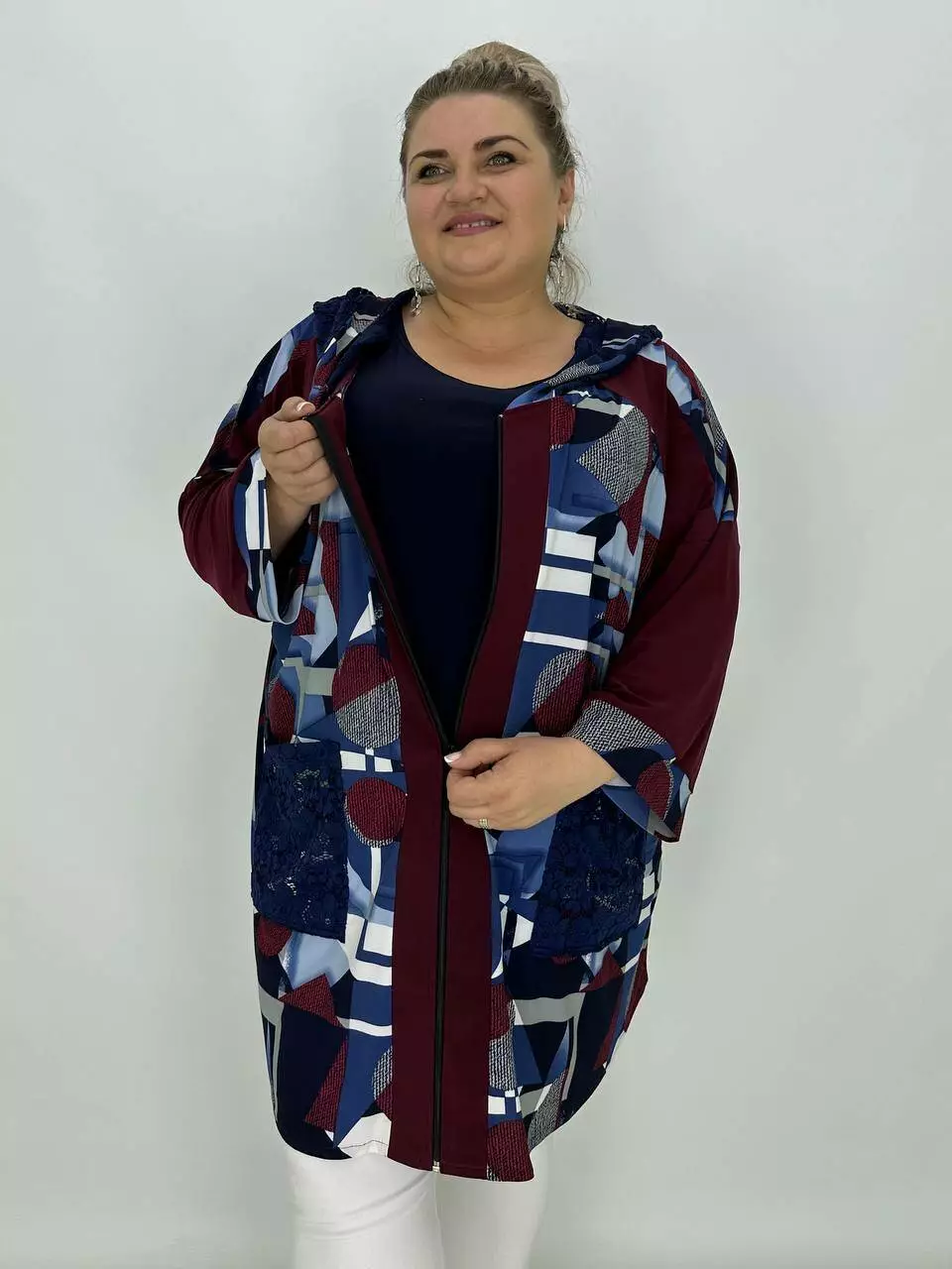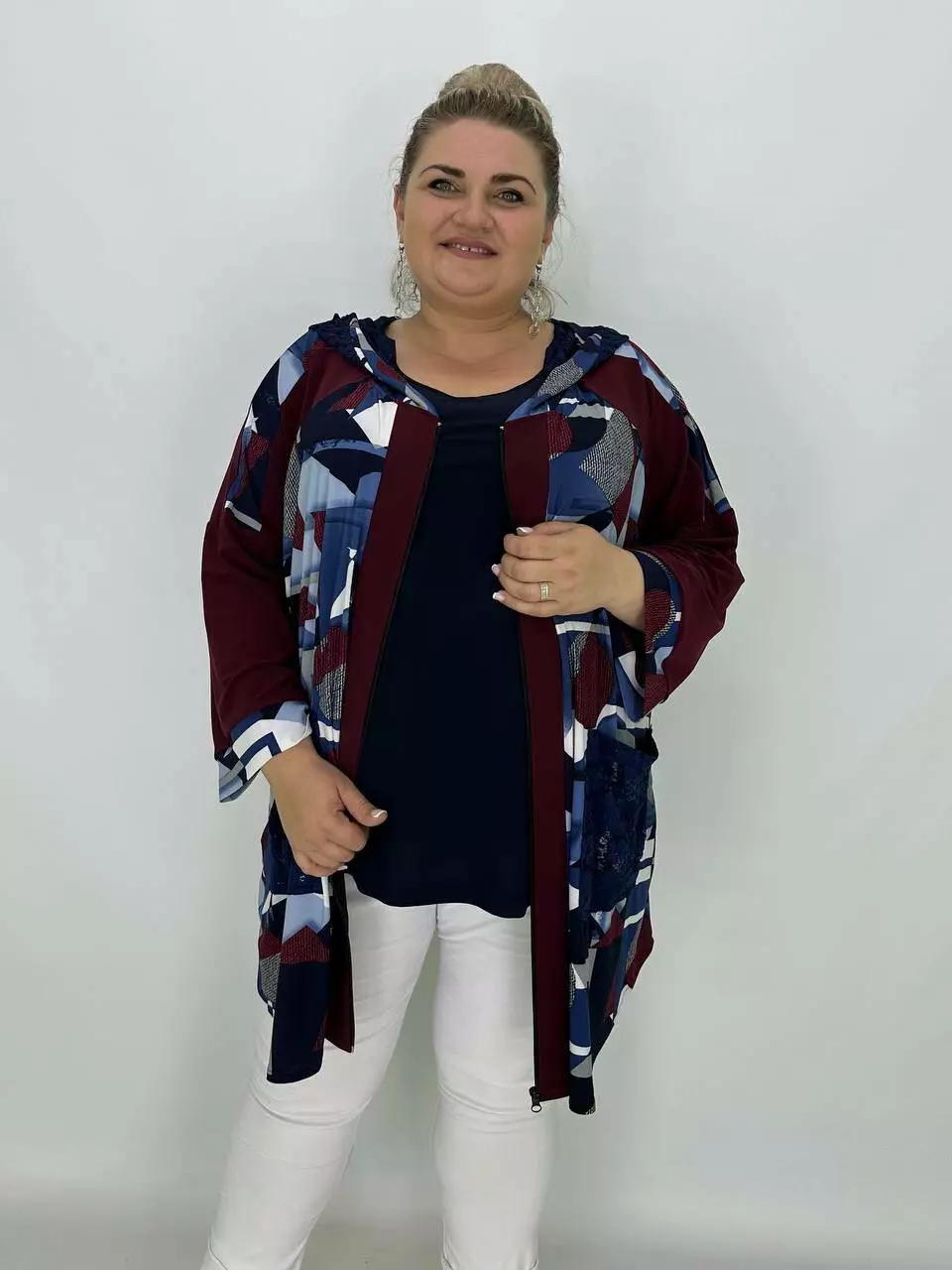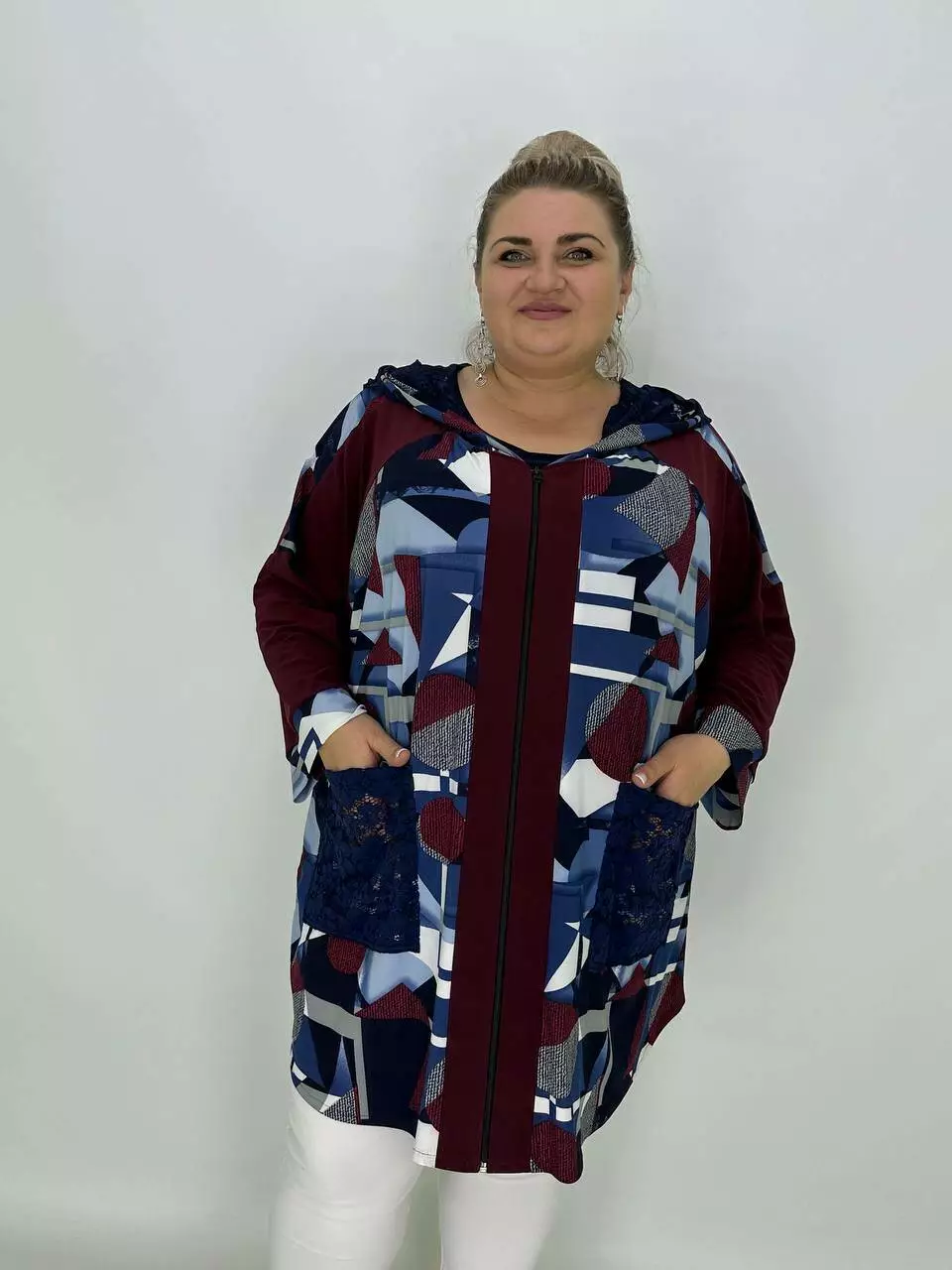 Вільна кофта-туніка "Жозефіна" на блискавці з капюшоном та кишенею