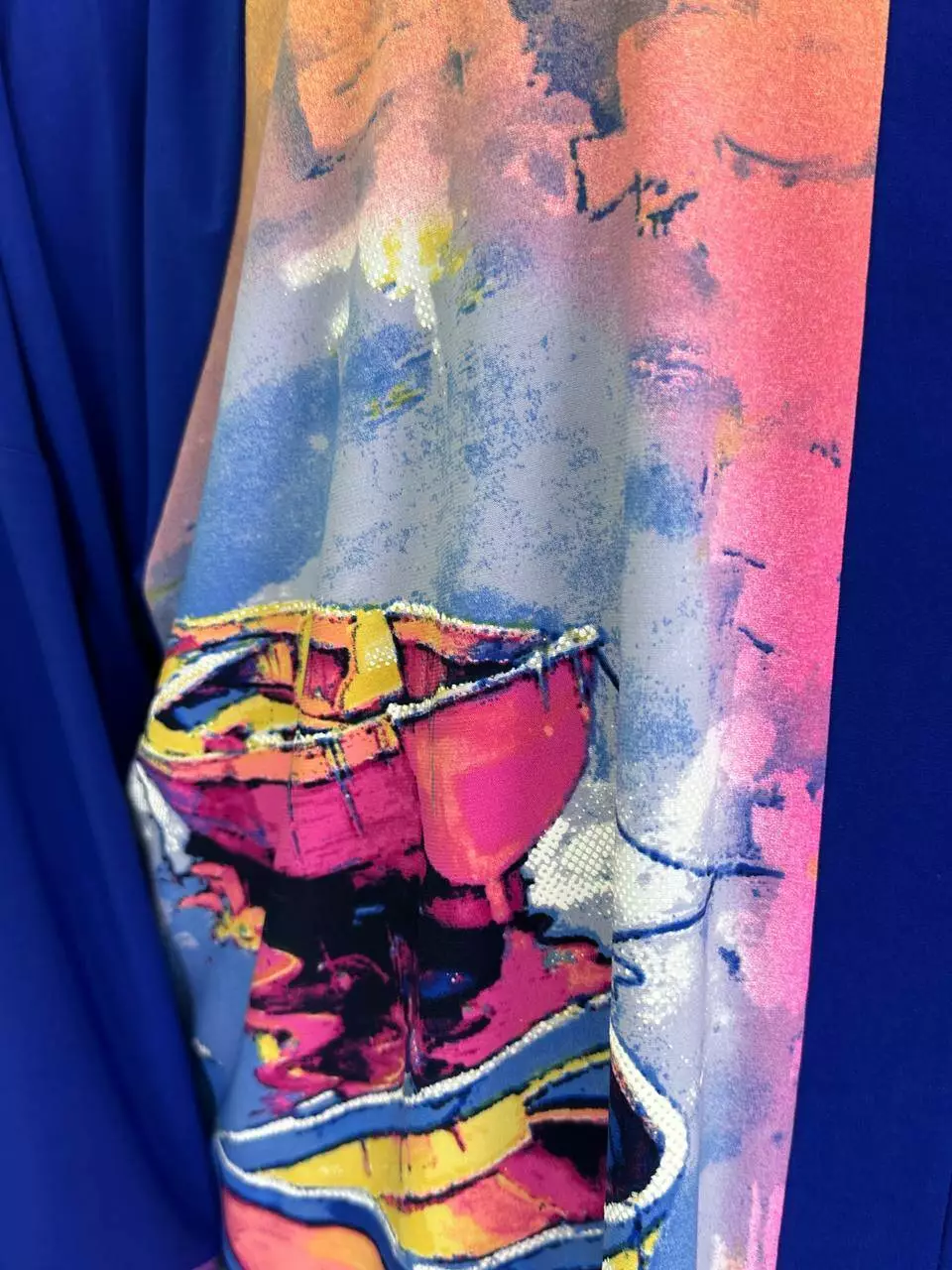 Тканина добре тягнеться, не мнеться, м'яка, приємна до тіла, не жарка, не потребує особливого догляду.