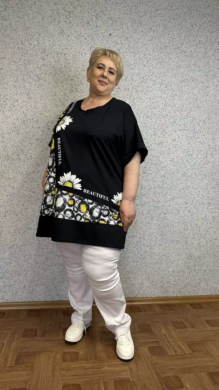 Вільна подовжена бавовняна туніка "Мара" великого розміру 62-64 66-68 70-72 74-76